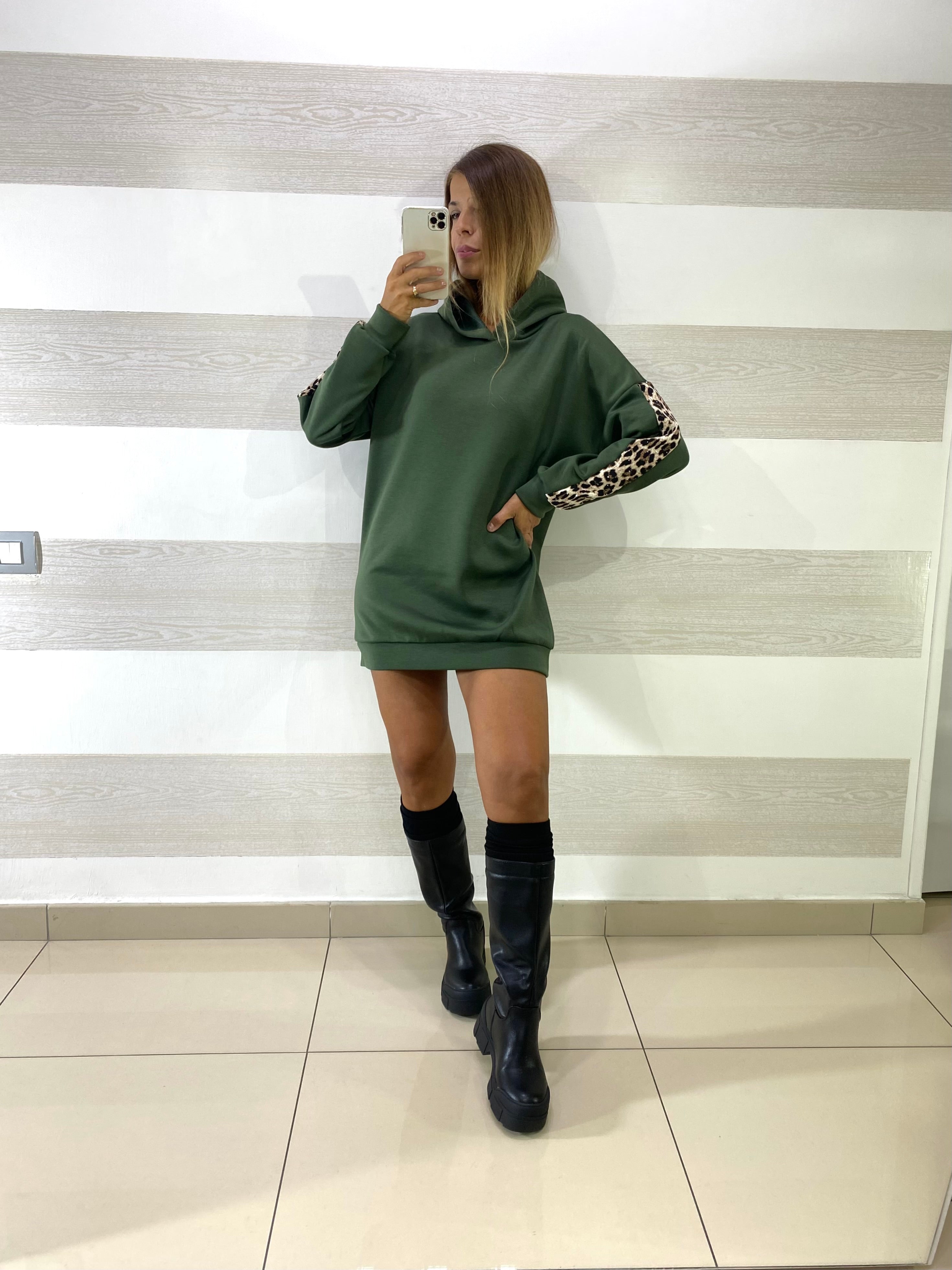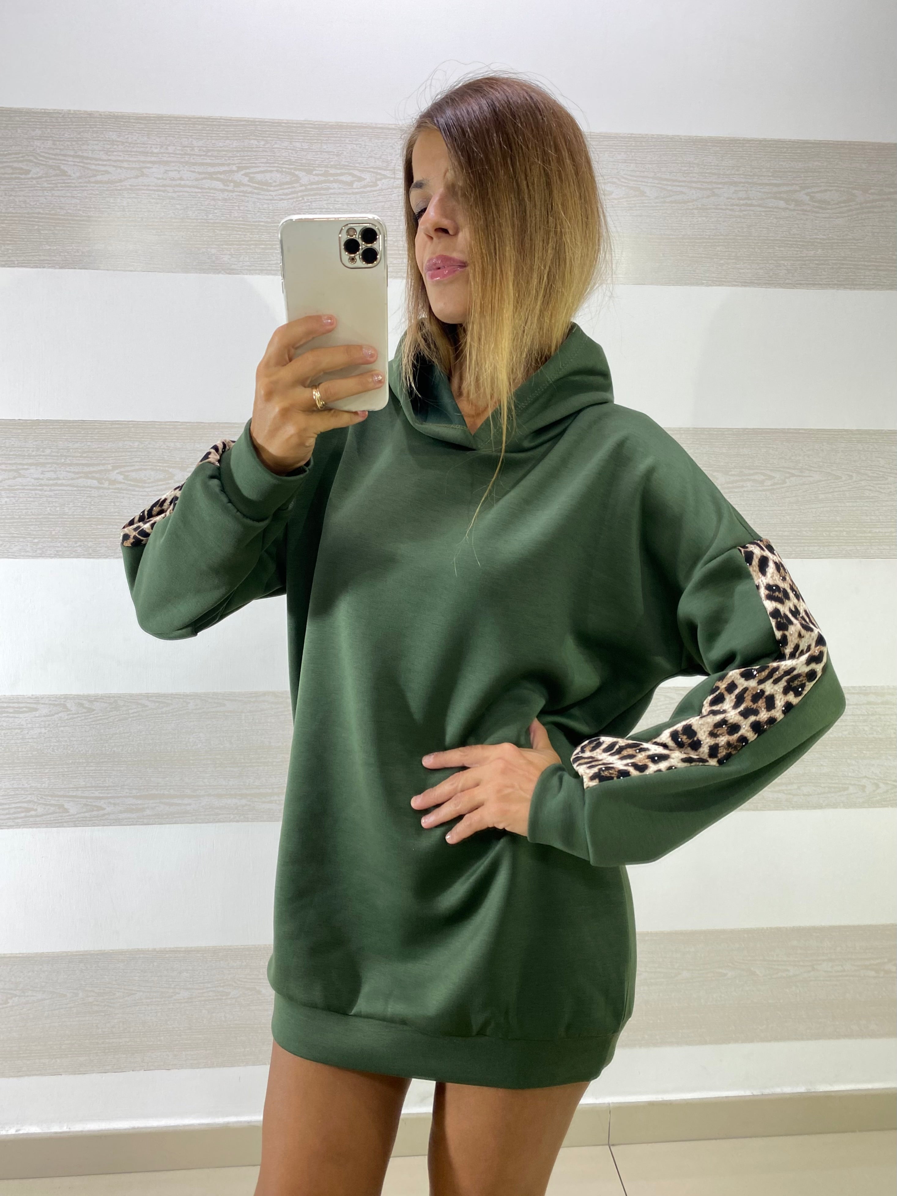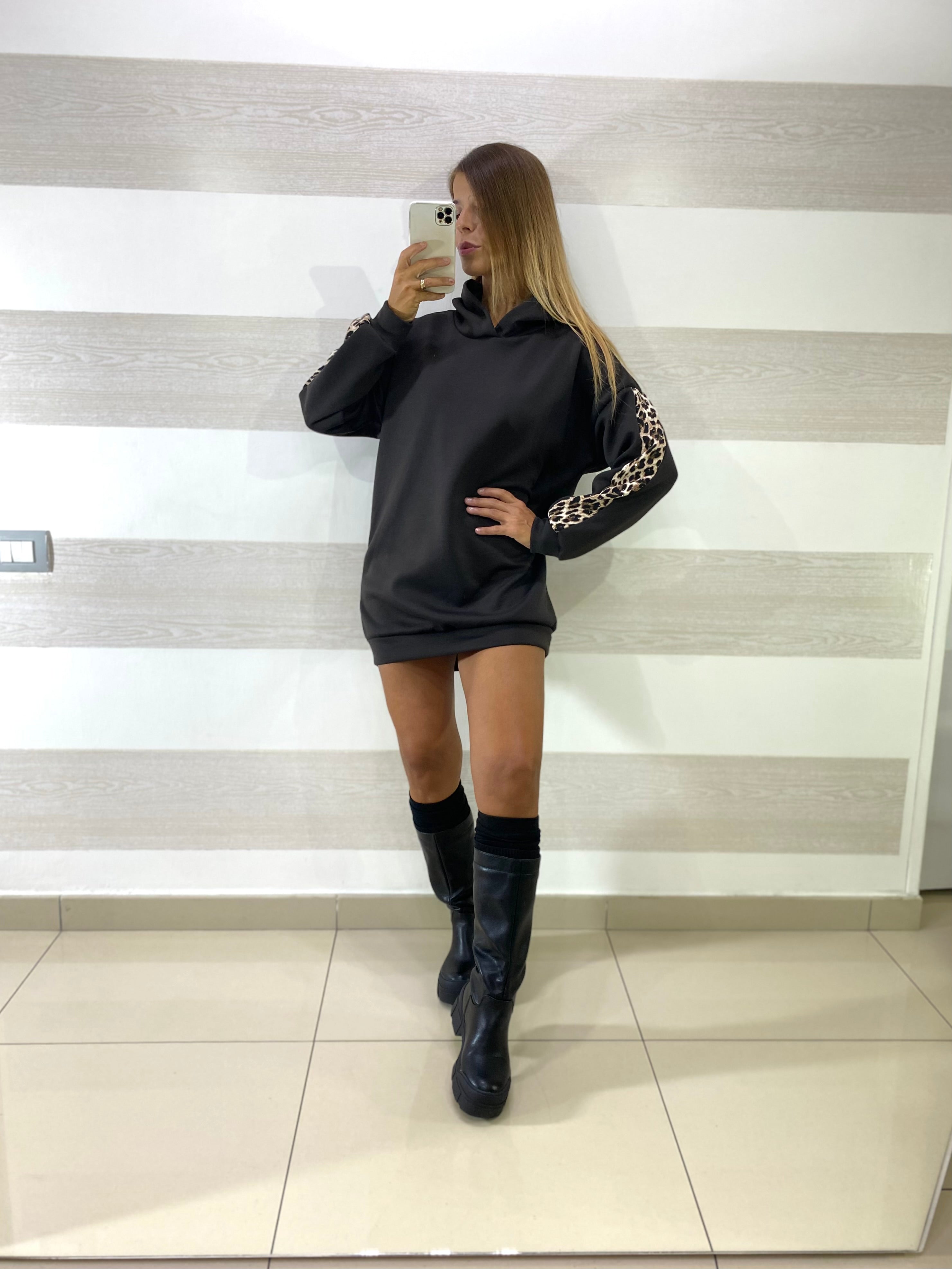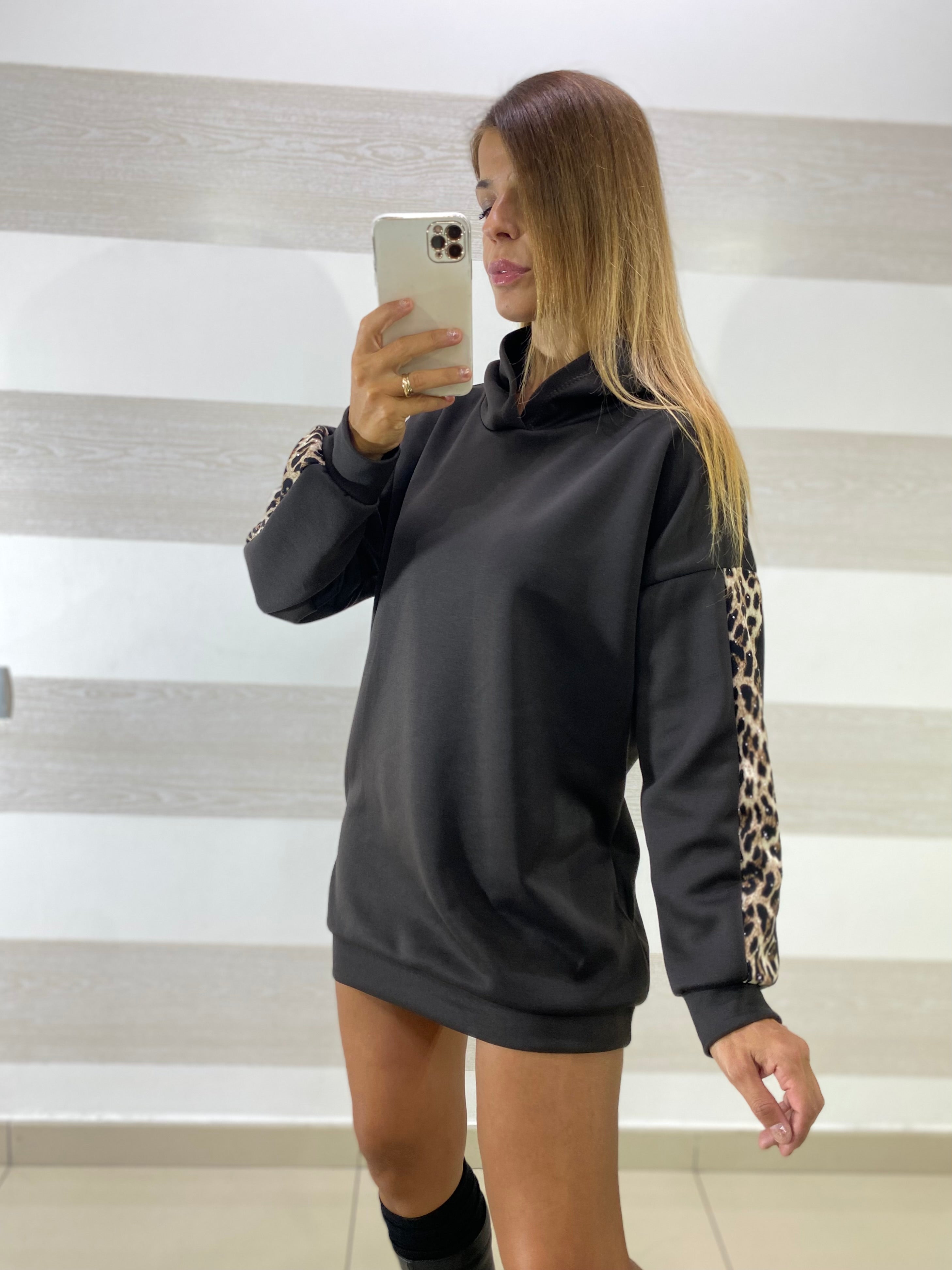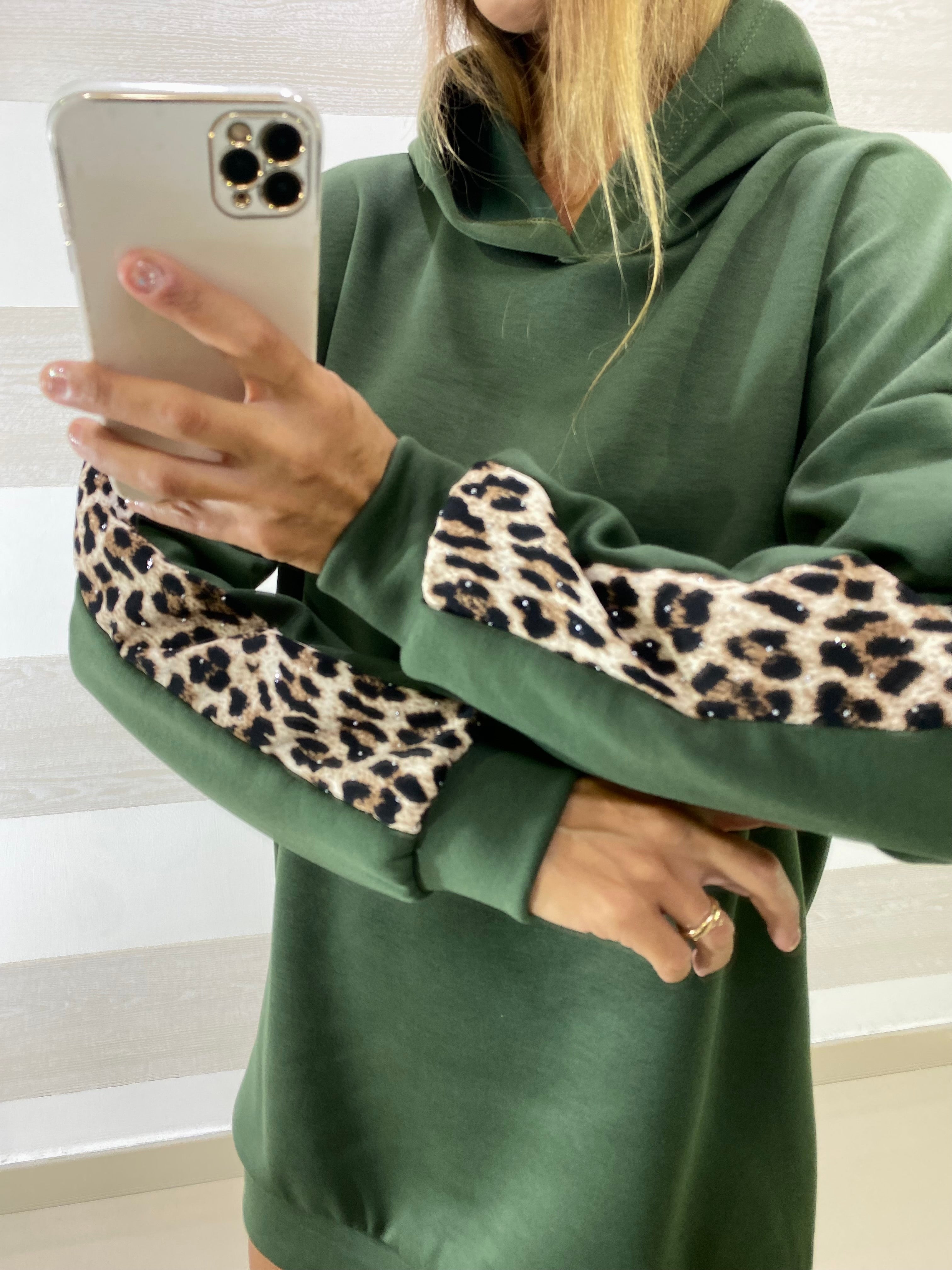 • Particolare le bande sulle maniche animalier leopardate e punti luce