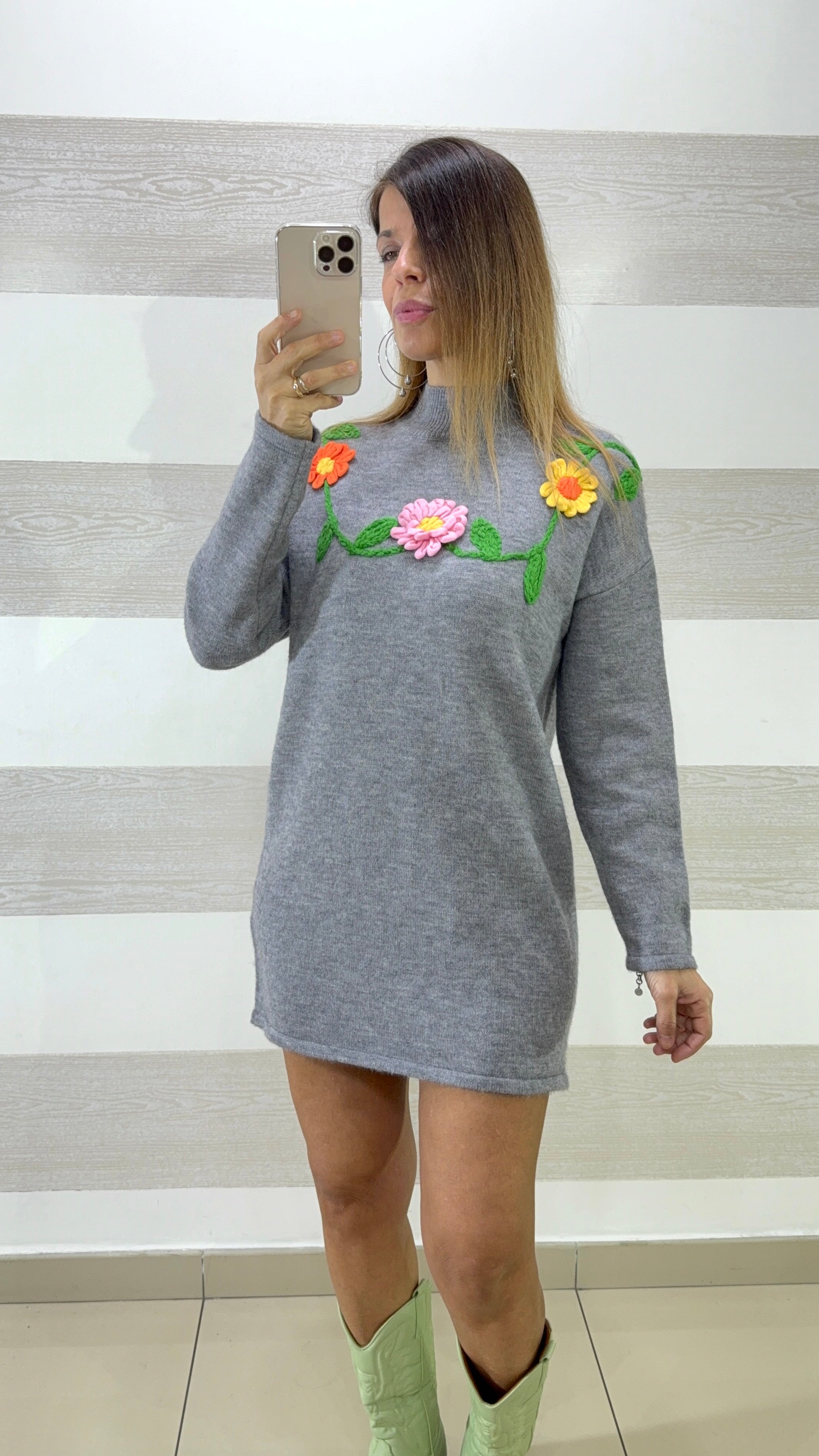 Abitino o Maxi Maglia Josi con Fiori in Rilievo