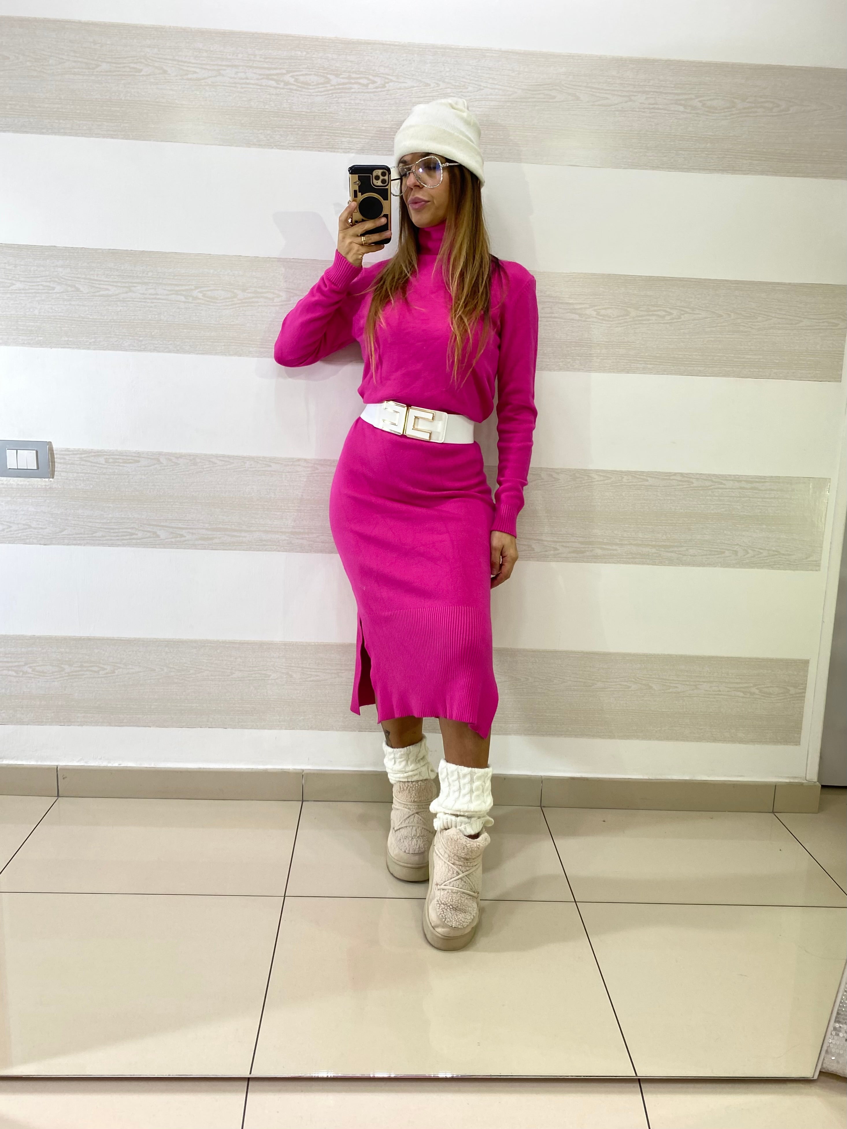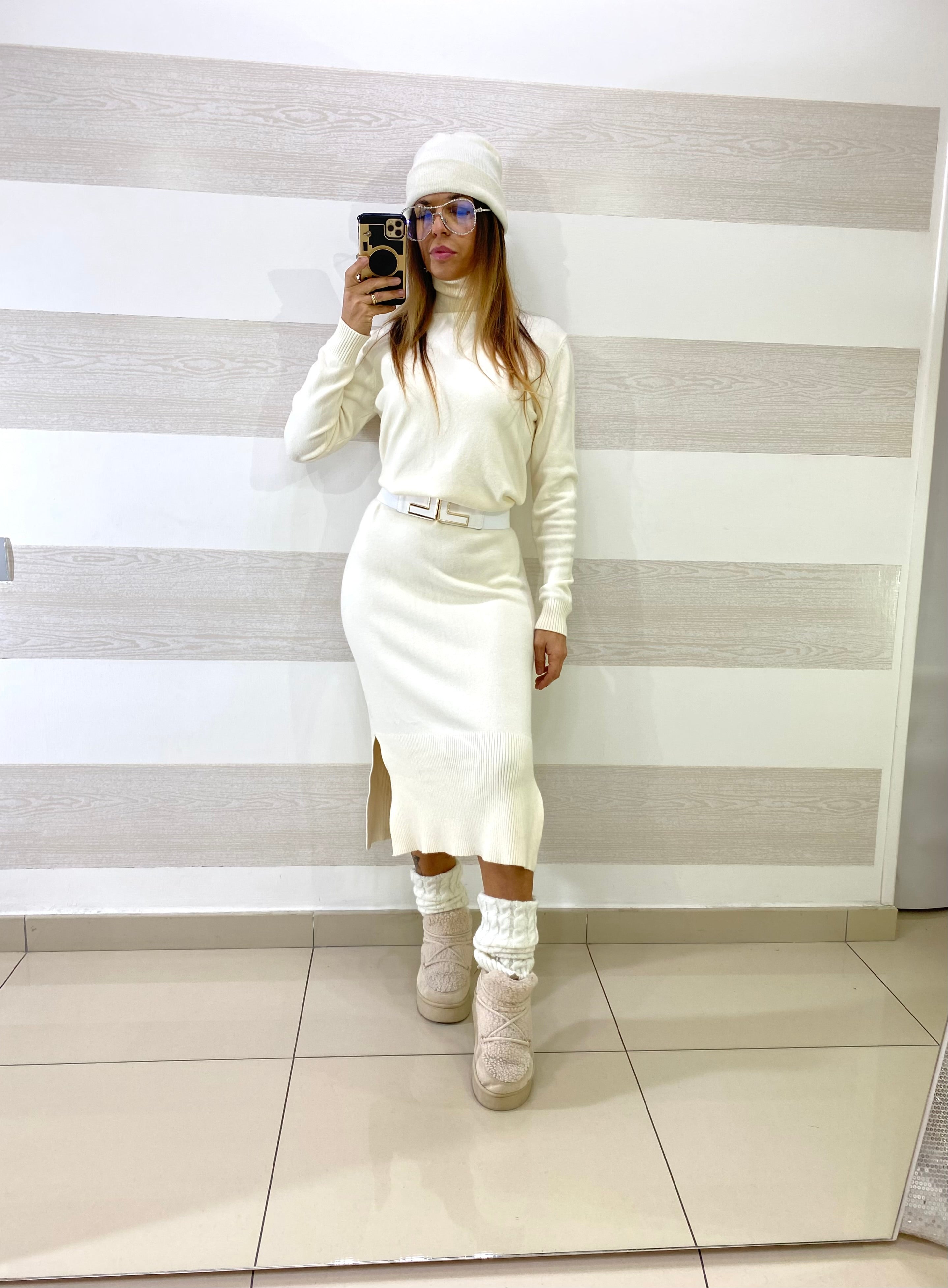 Abito Gaynor Lungo con Spacchetti e Collo Alto
