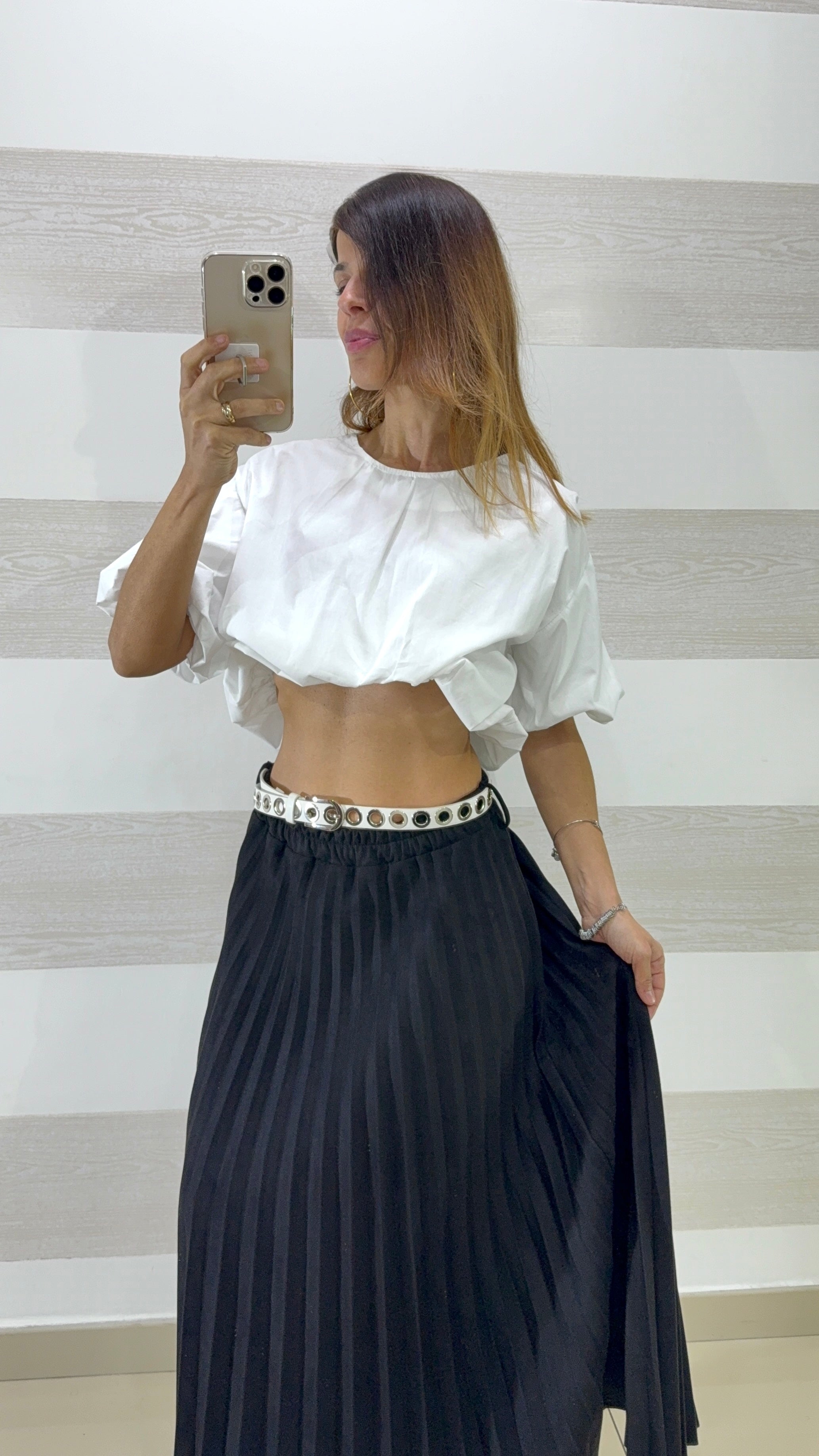 • Bordo inferiore elasticizzato che permette di regolare la lunghezza e assicura una vestibilità perfetta in vita