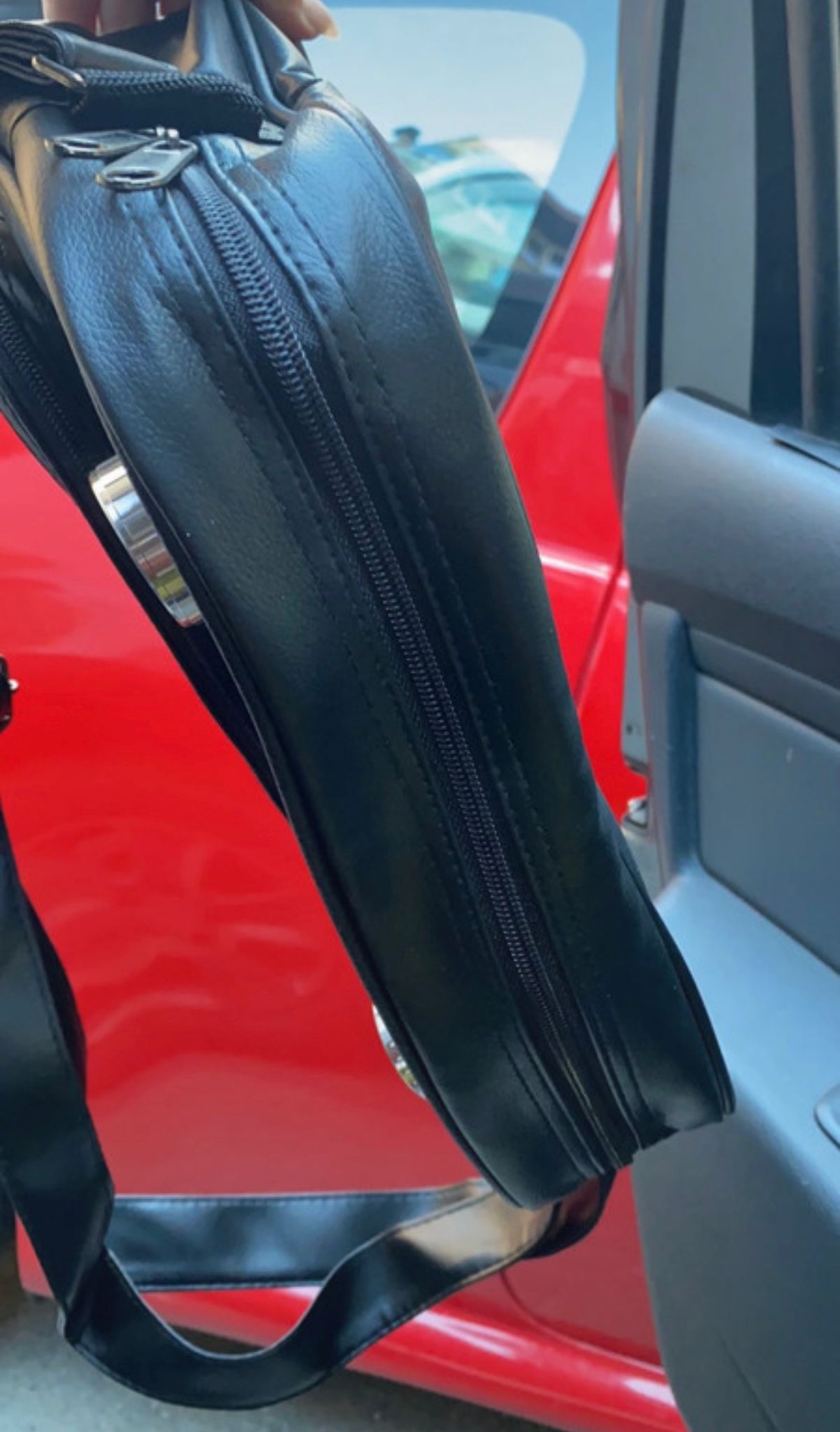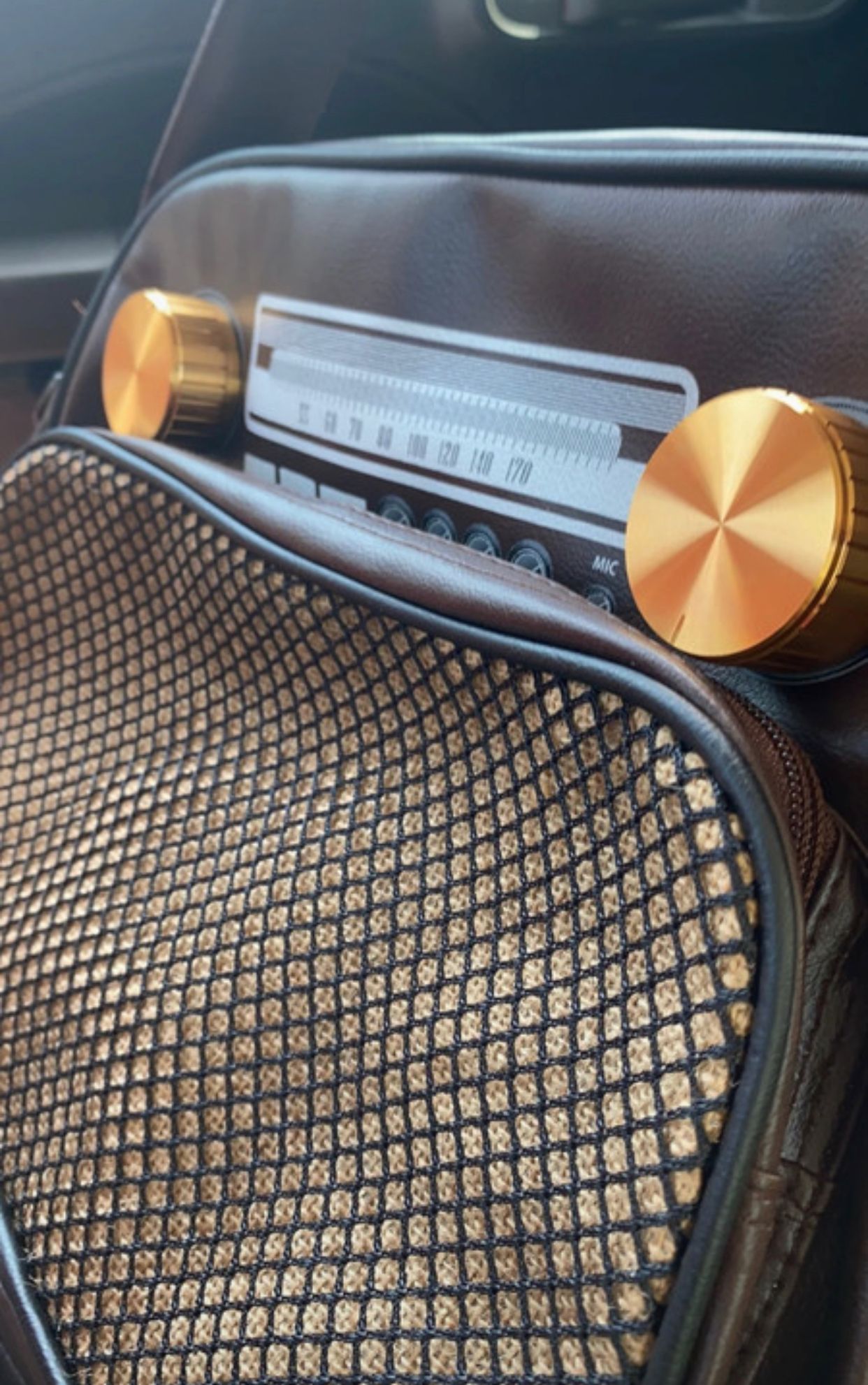 Borsa Borsello in Eco Pelle con Tracolla Regolabile, Chiusura con Zip. Molto Capiente Perchè ha 2 Scomparti e all'interno è Foderata e ha Anche il Taschino con Zip. Molto Particolare Perchè Sembra Davvero una Radio con le Manopole che Girano.