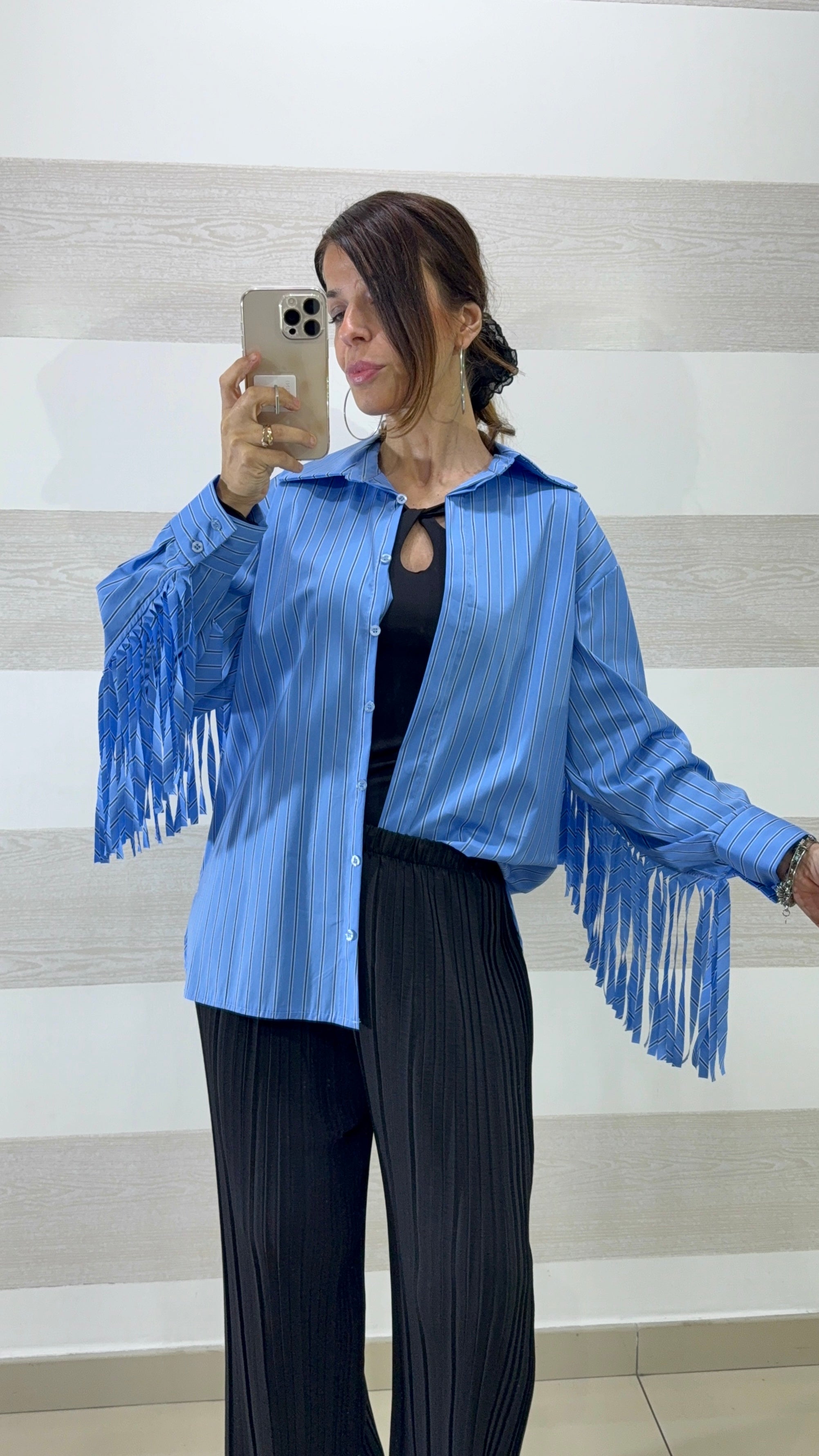 • Particolare per le frange sulle maniche dello stesso tessuto