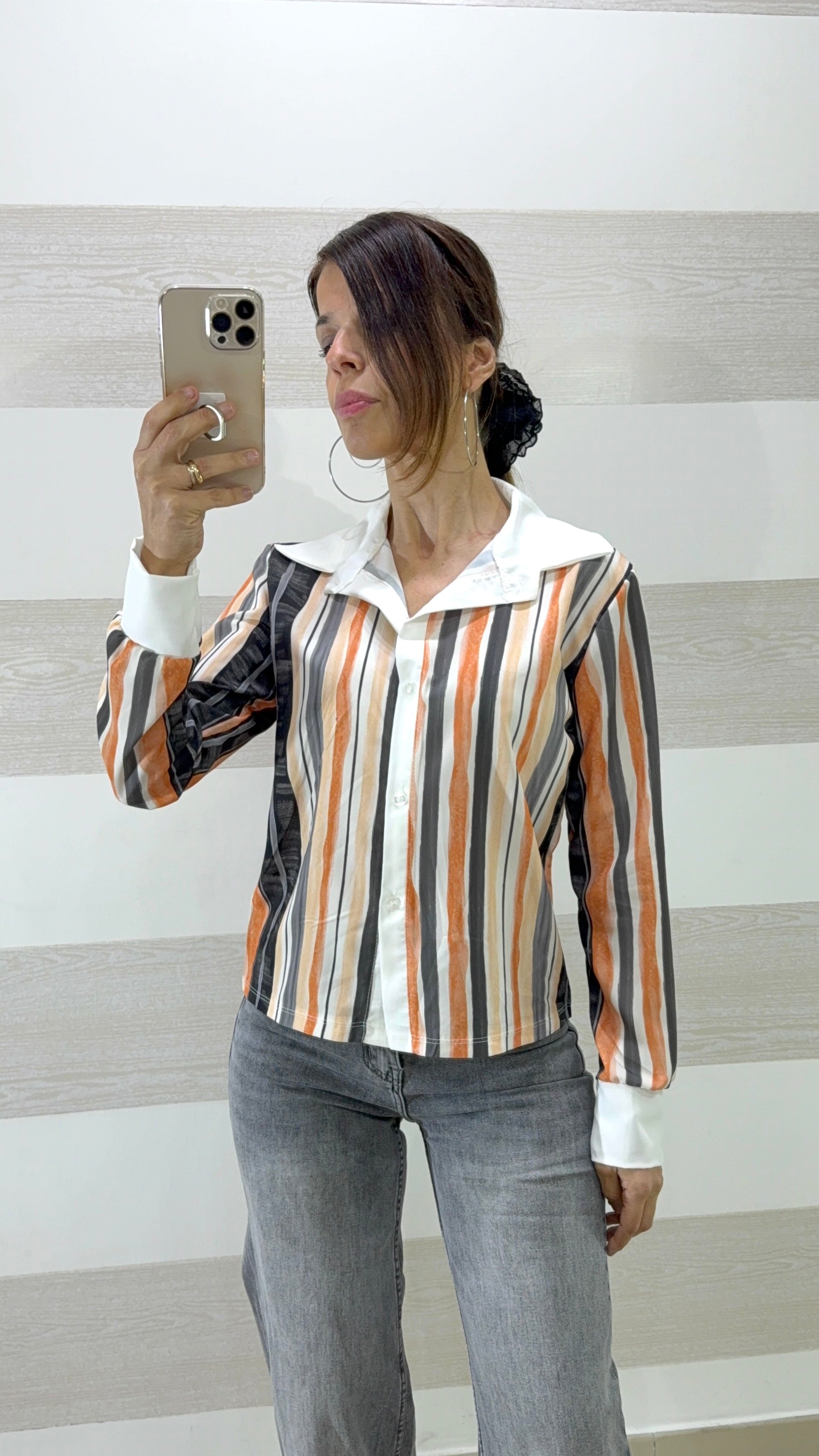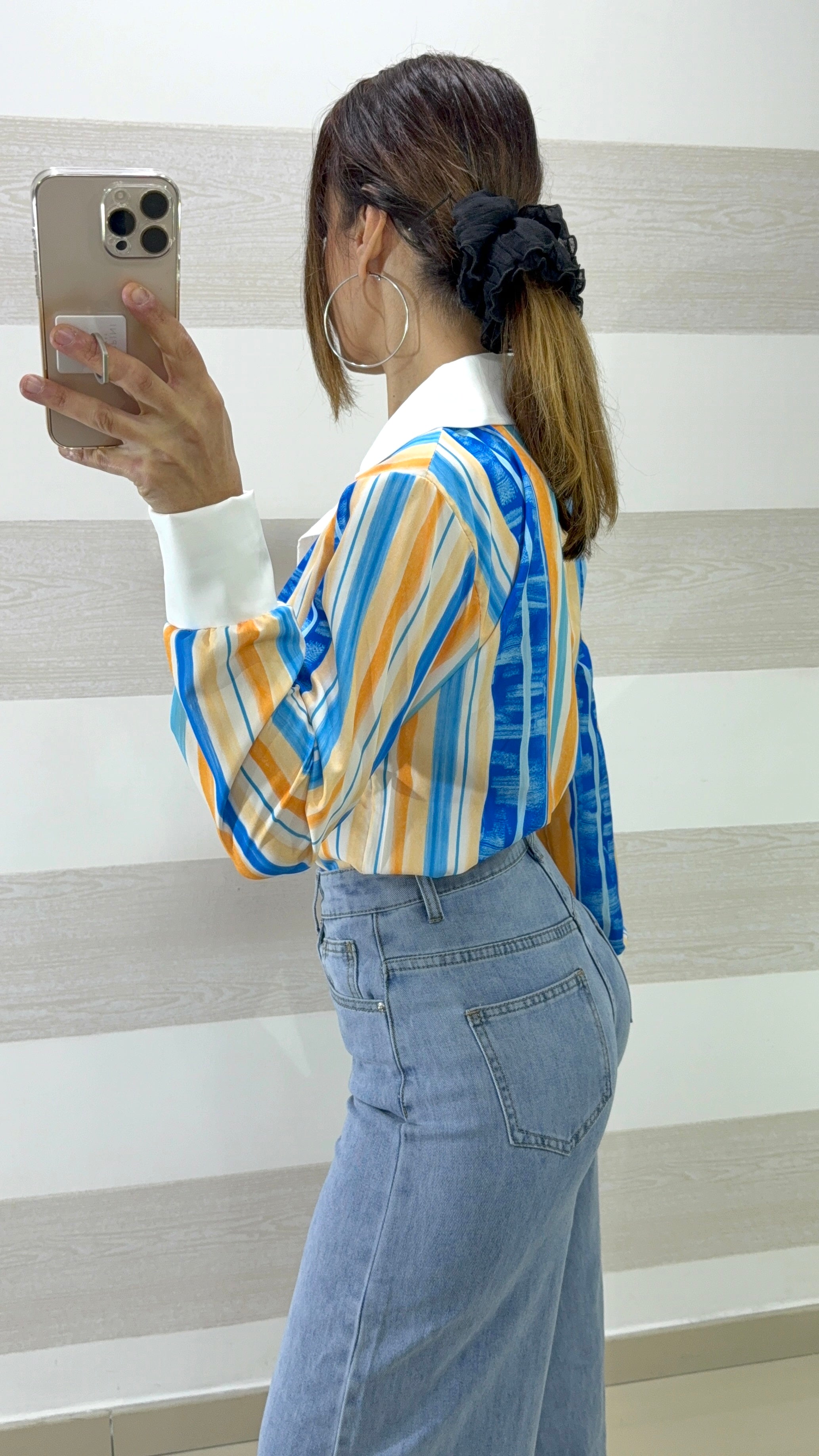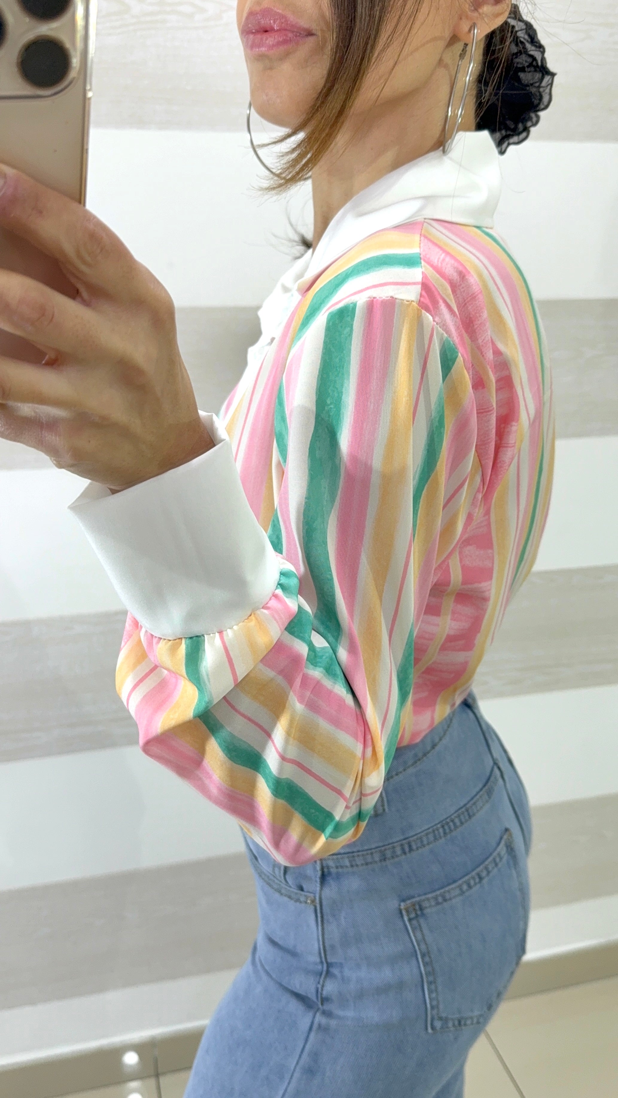 Camicia Rika a Righe Verticali con Colletto Bianco