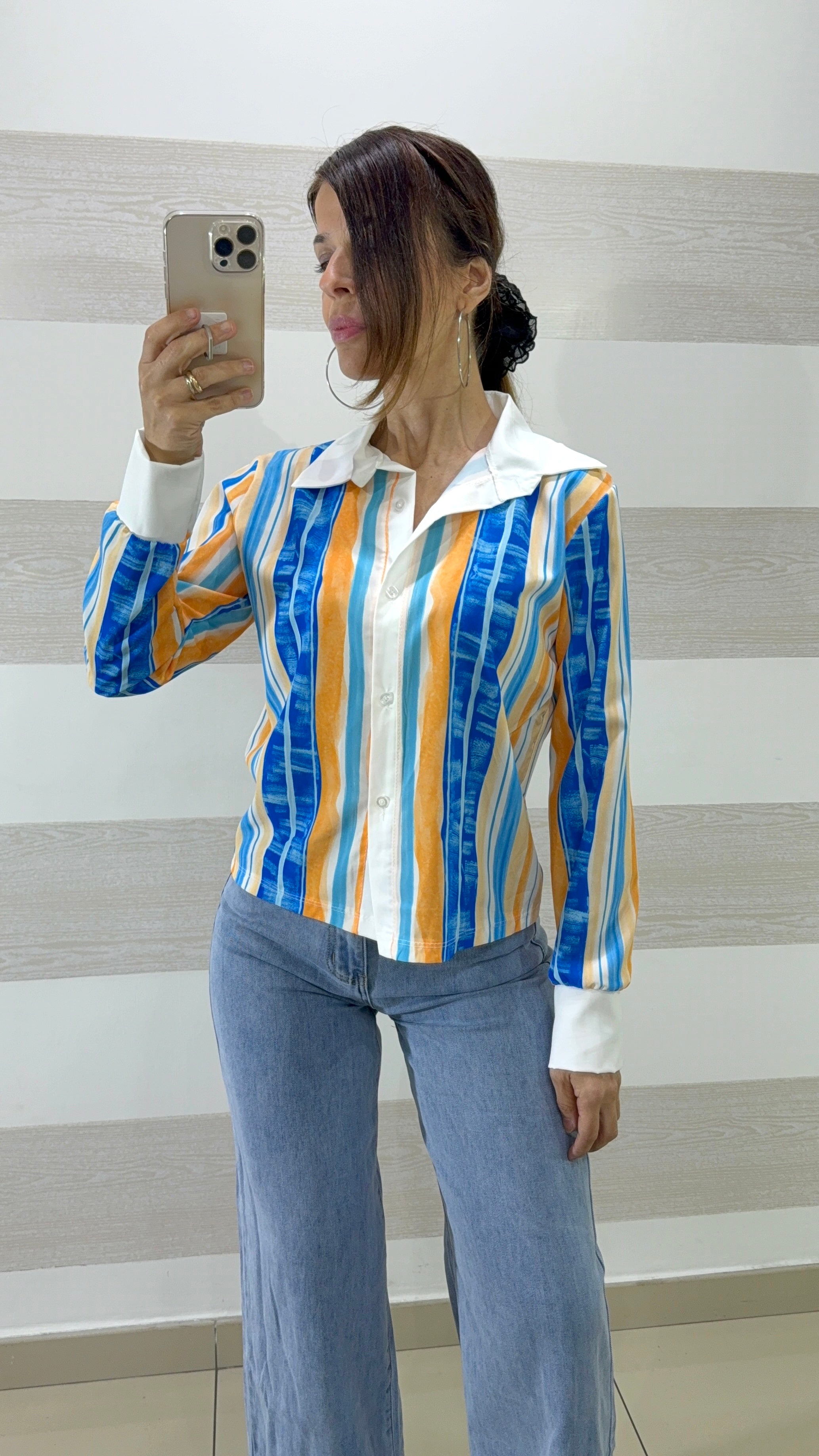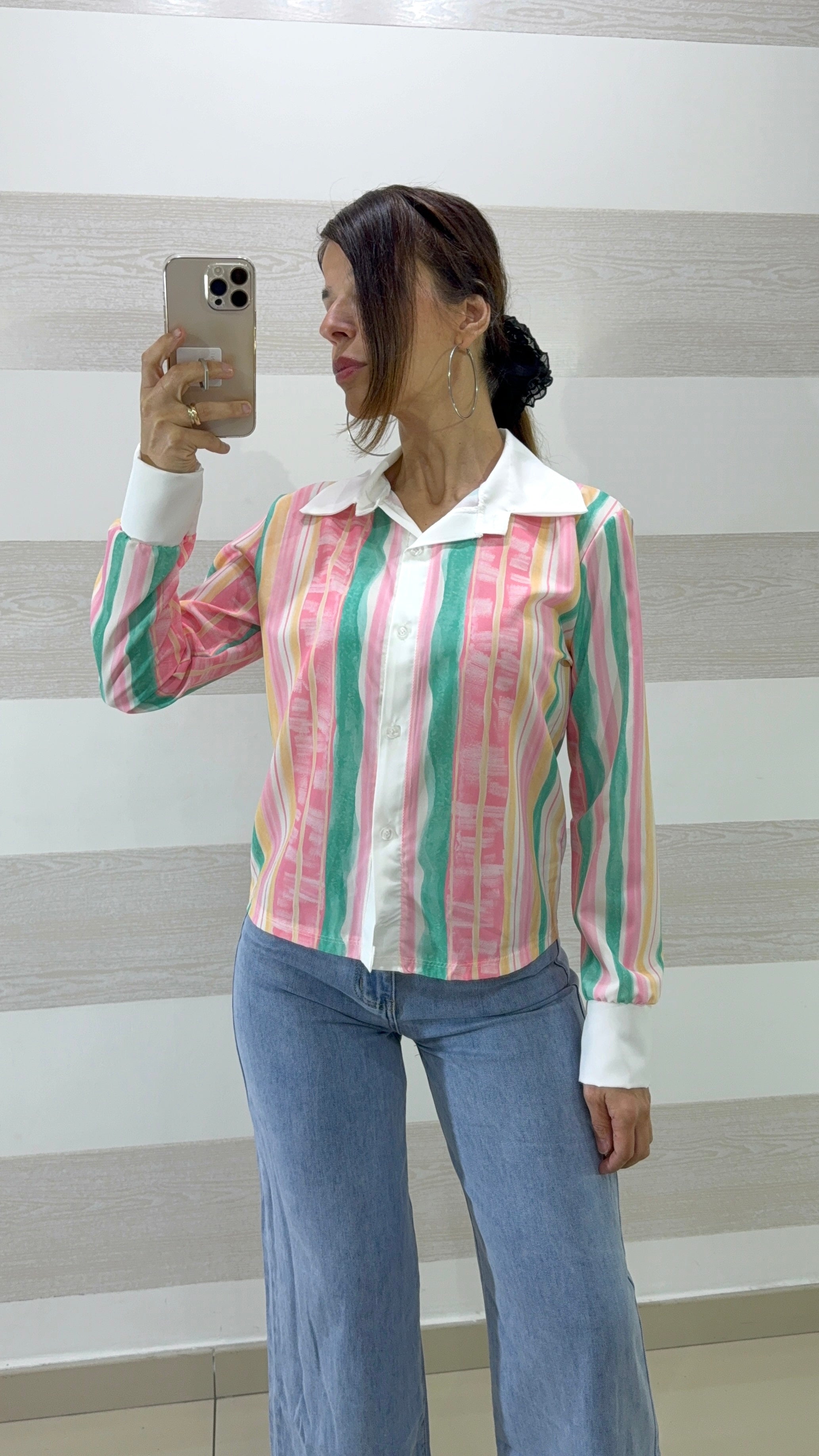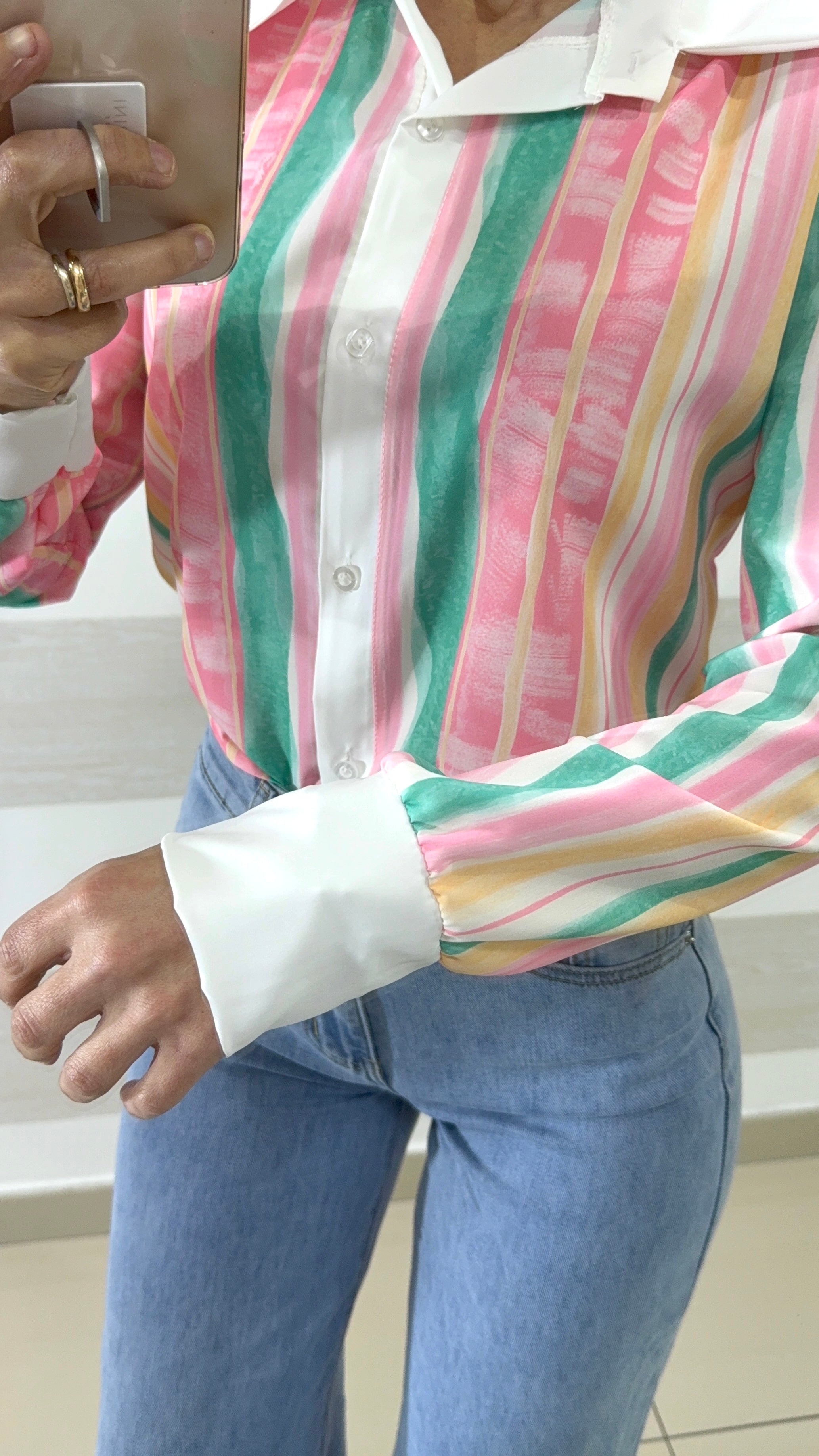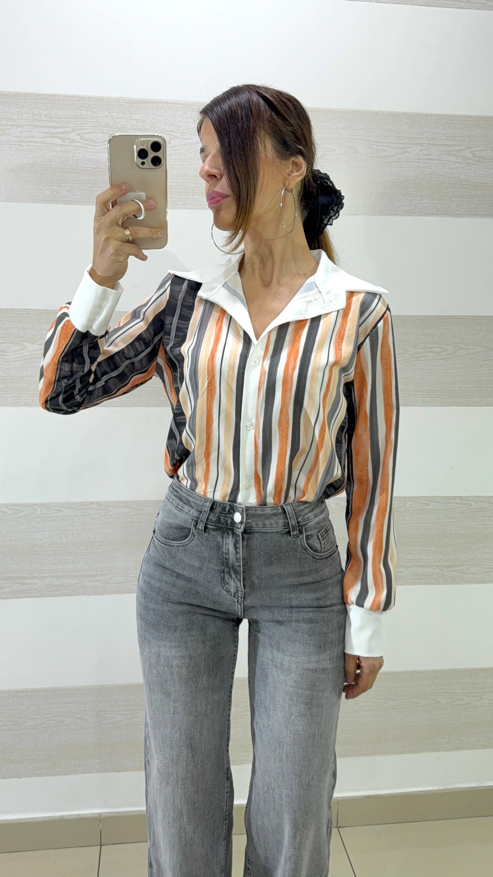 Camicia Rika a Righe Verticali con Colletto Bianco