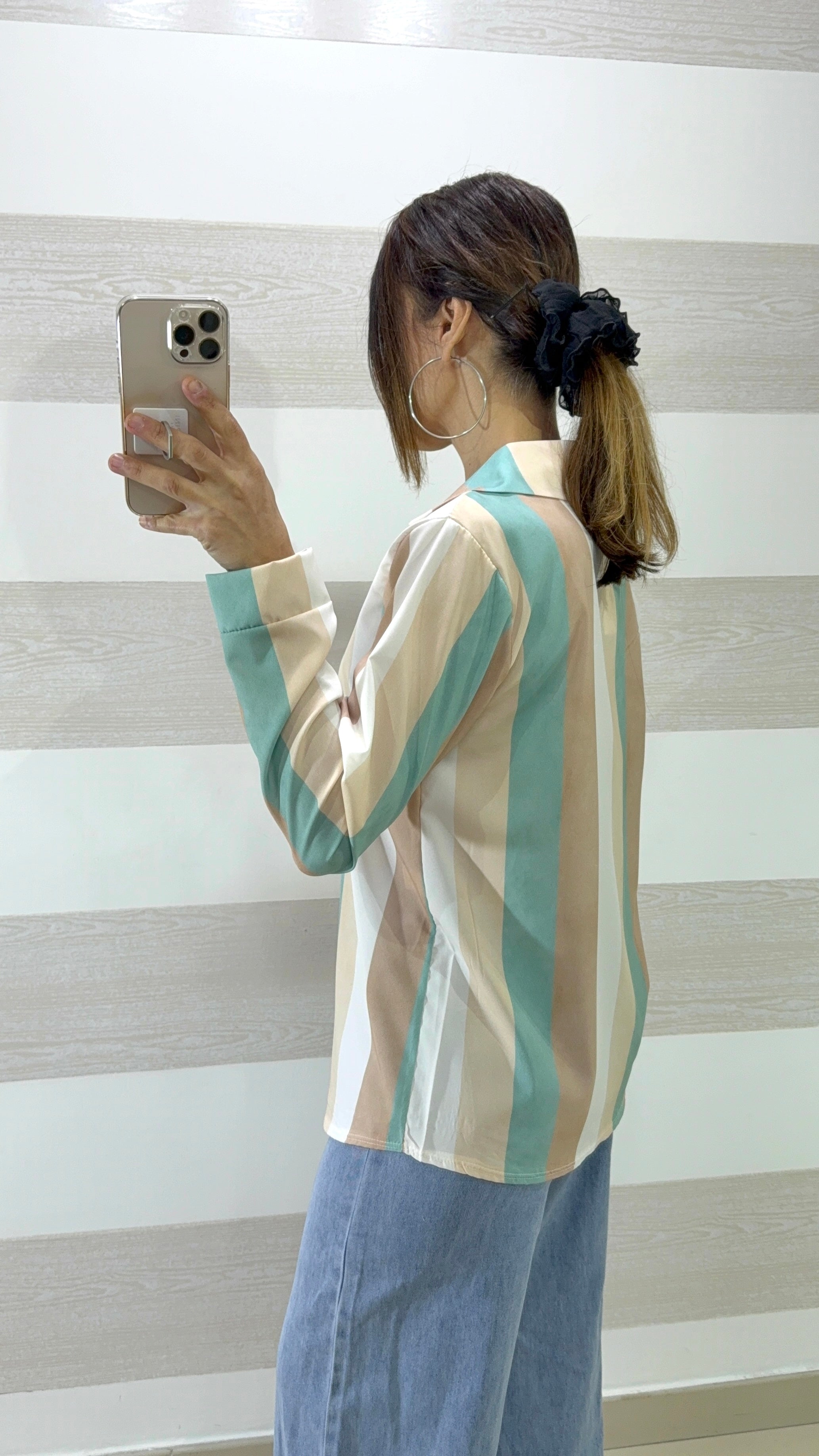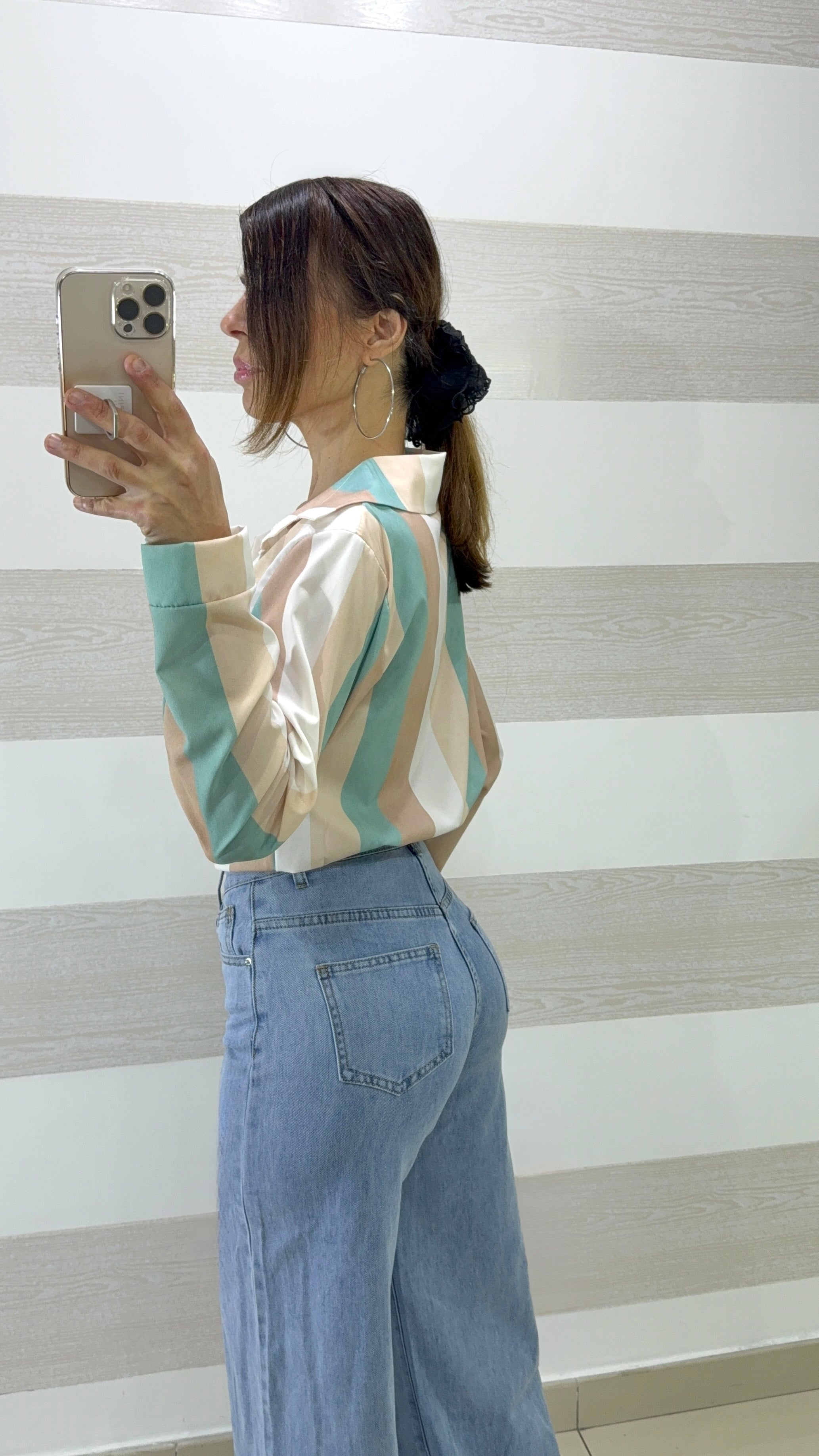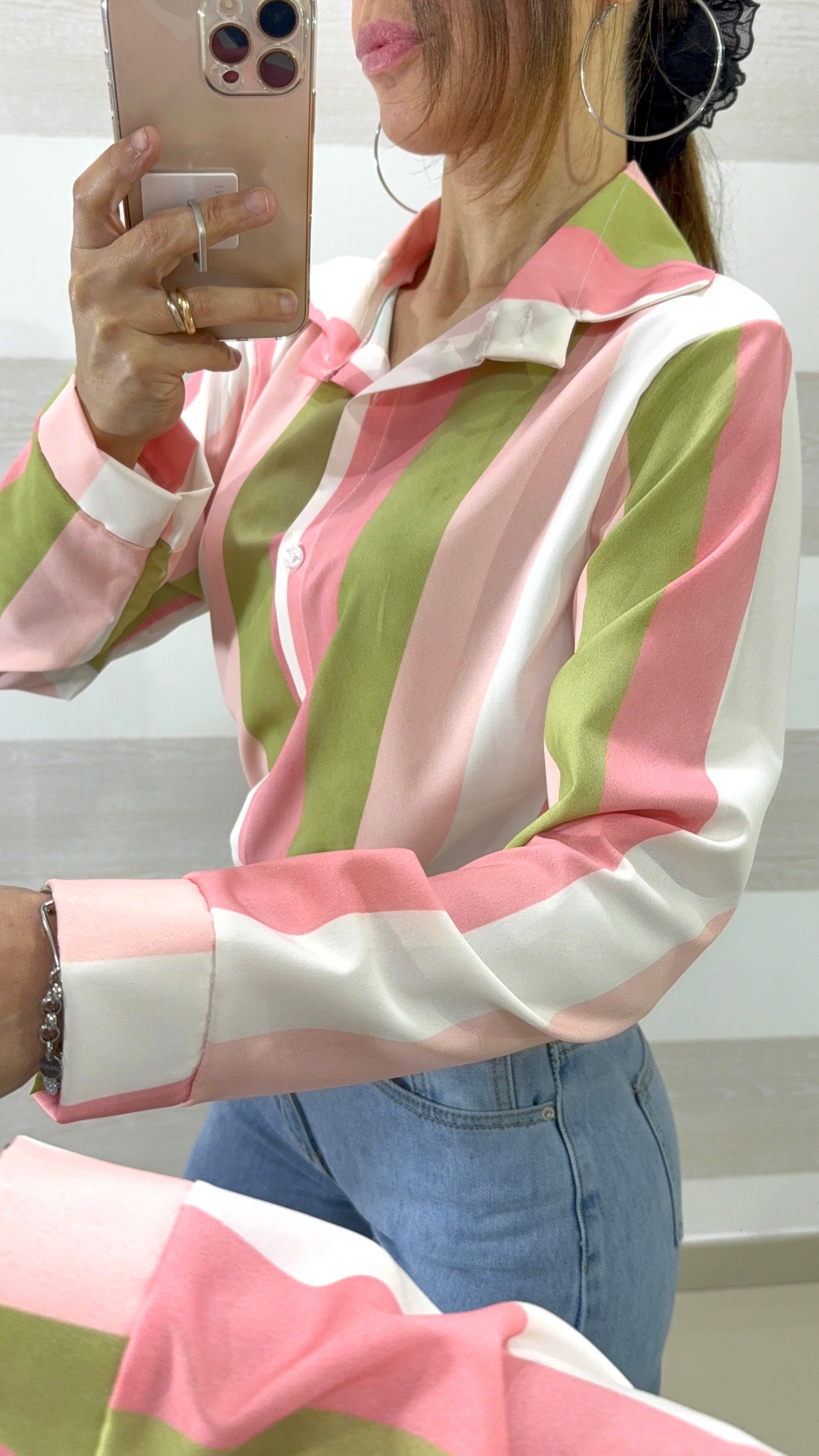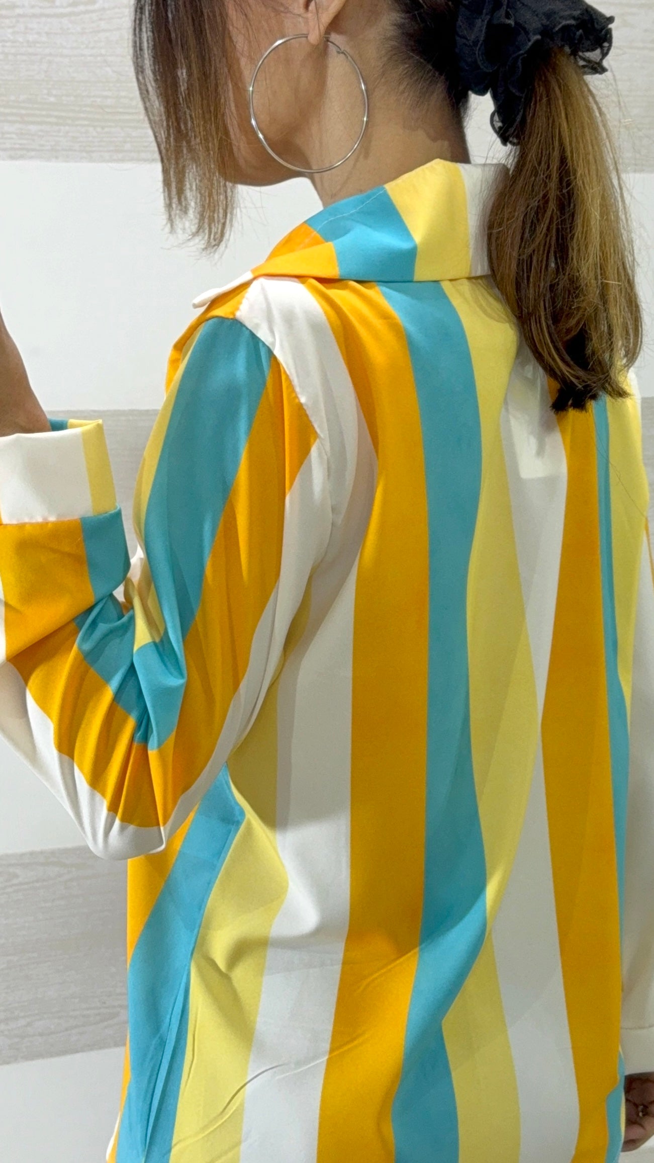 • Fantasia a righe verticali multicolor dall'effetto sfumato/pennellato