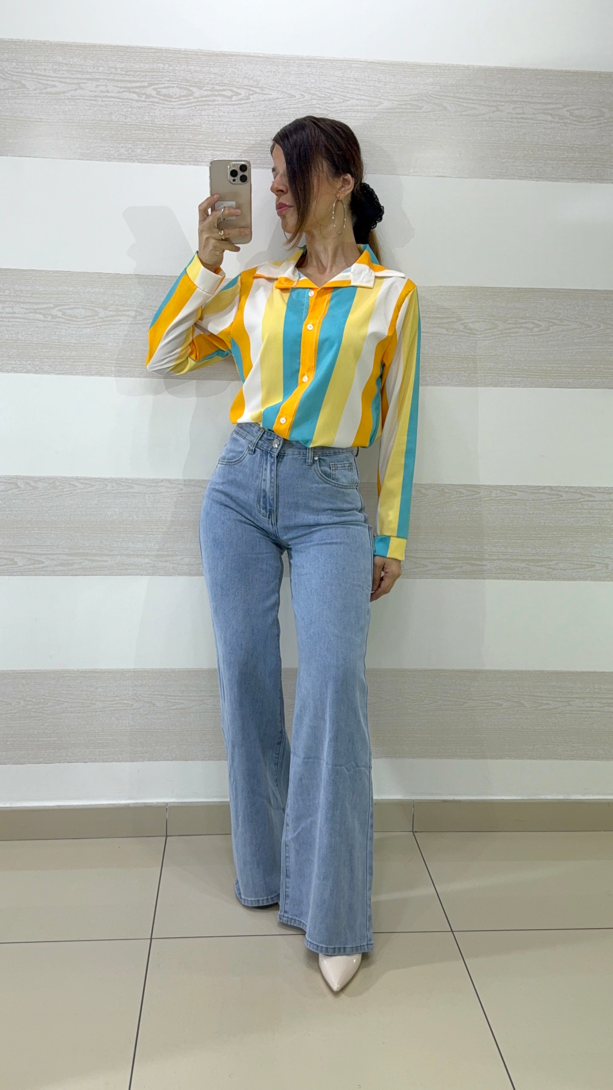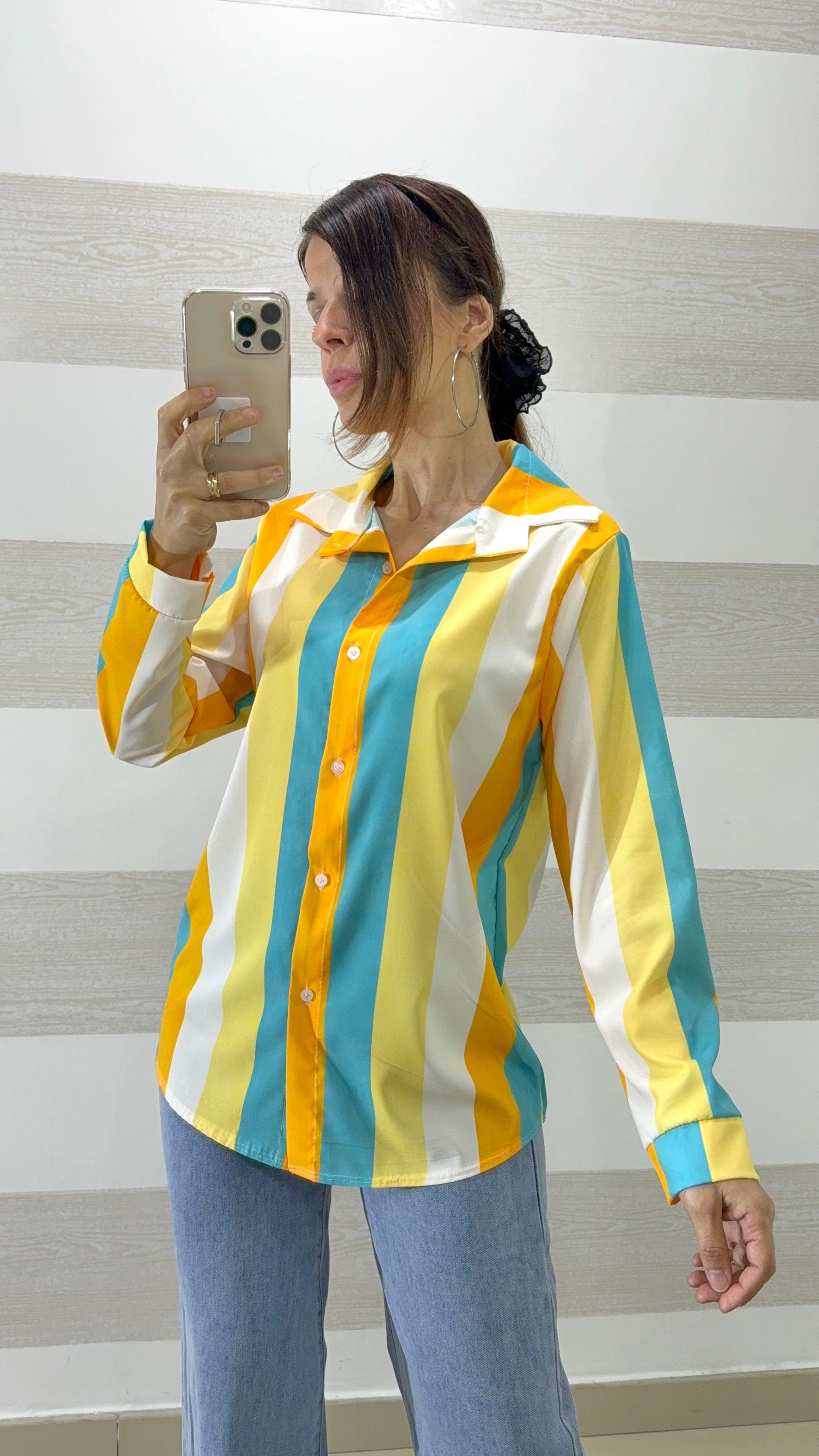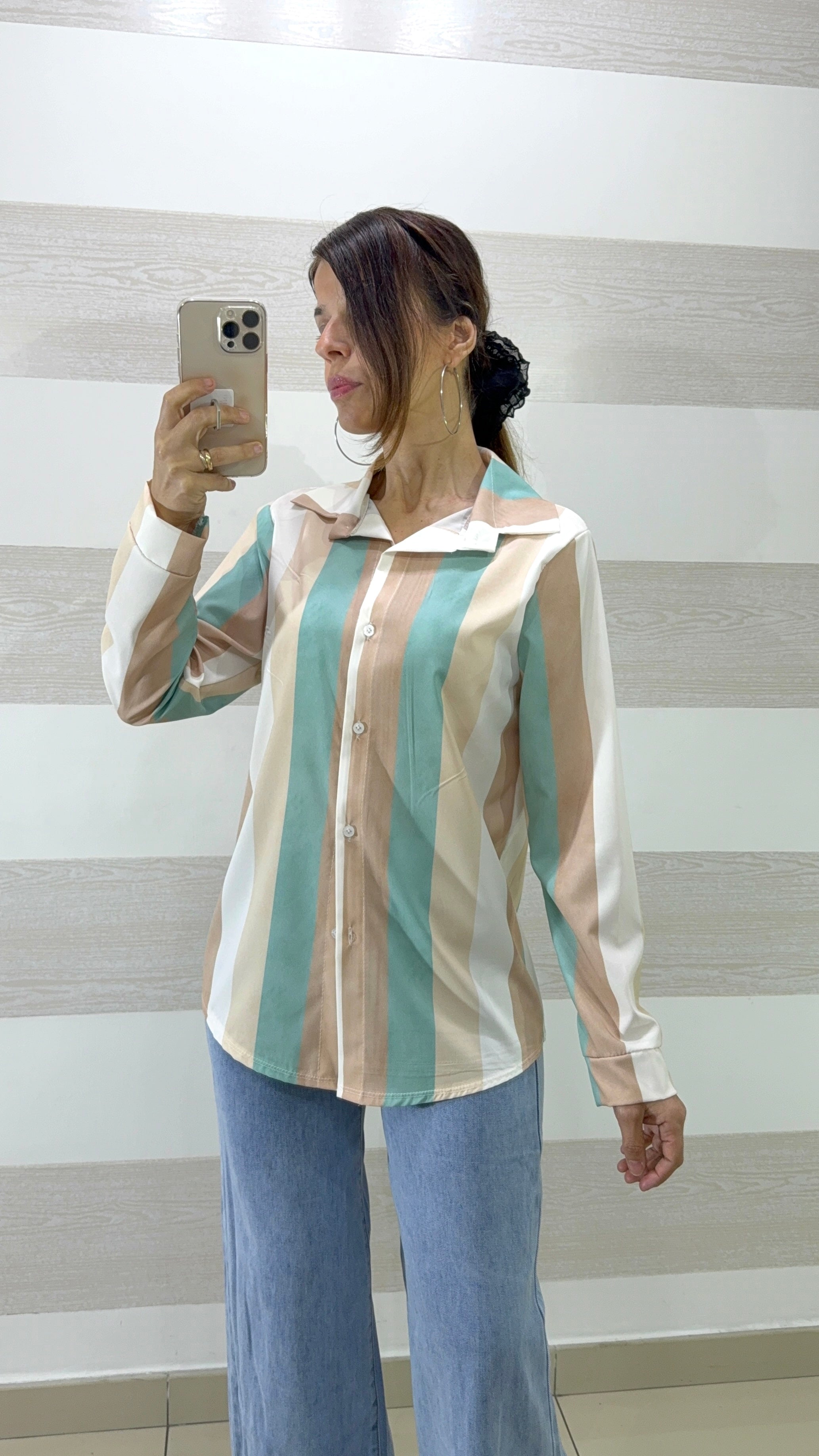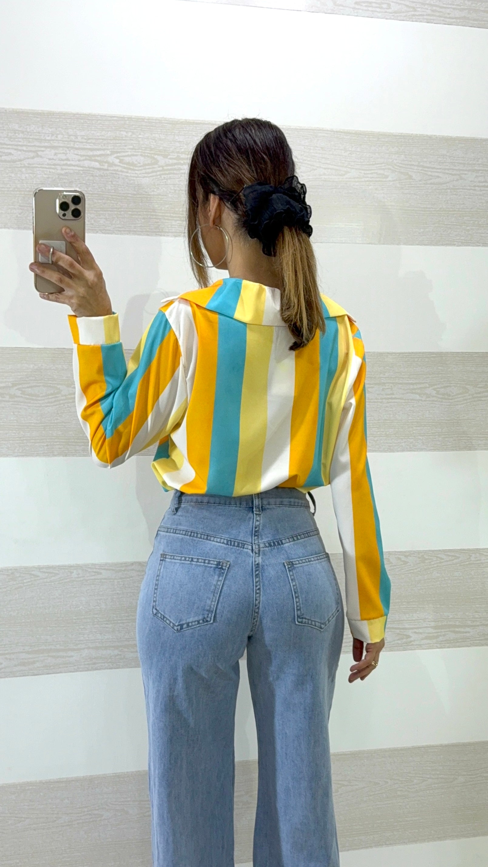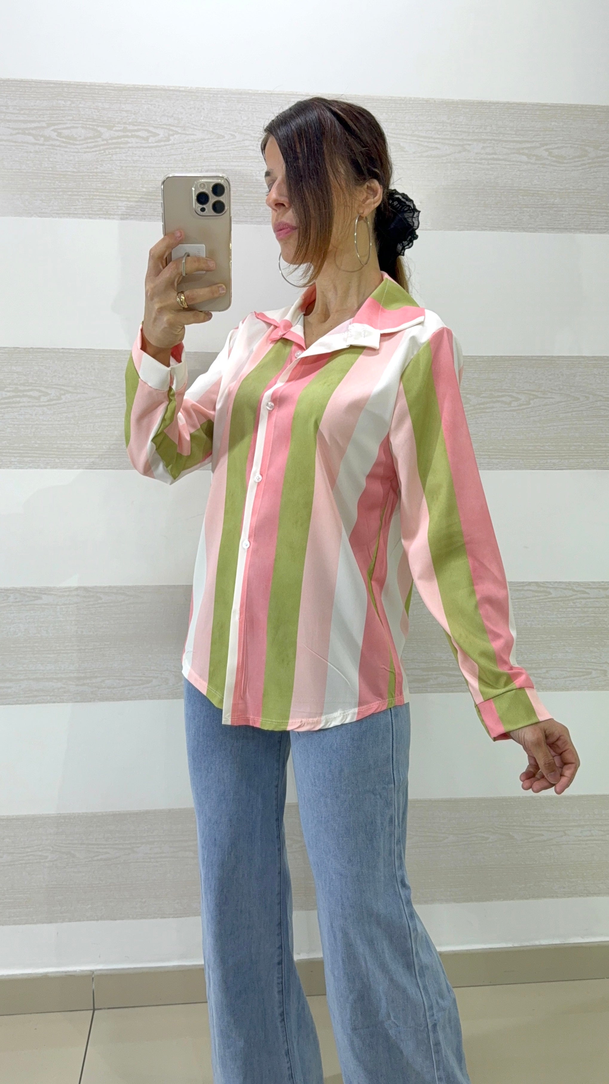 • Fantasia a righe verticali multicolor dall'effetto sfumato/pennellato