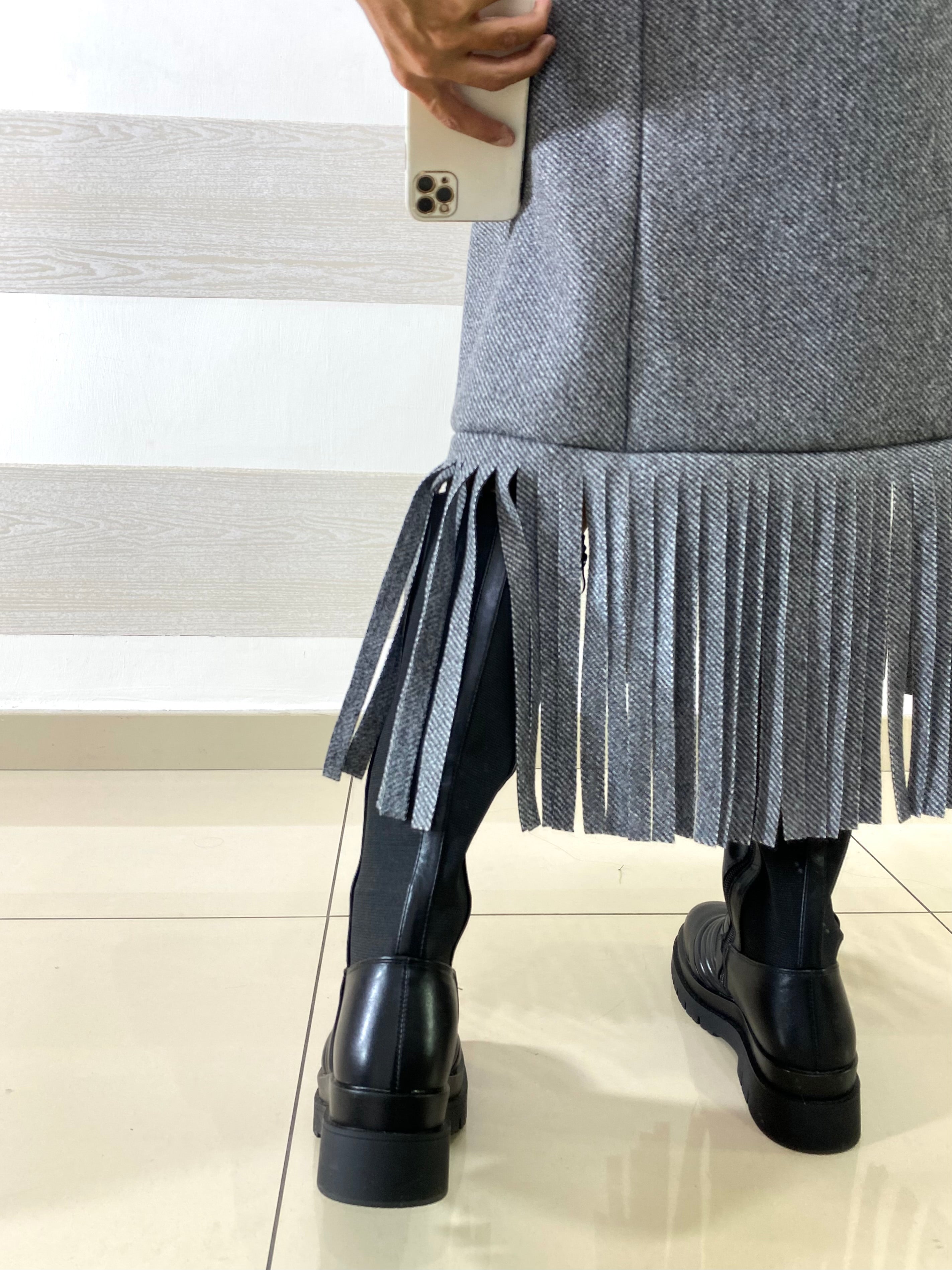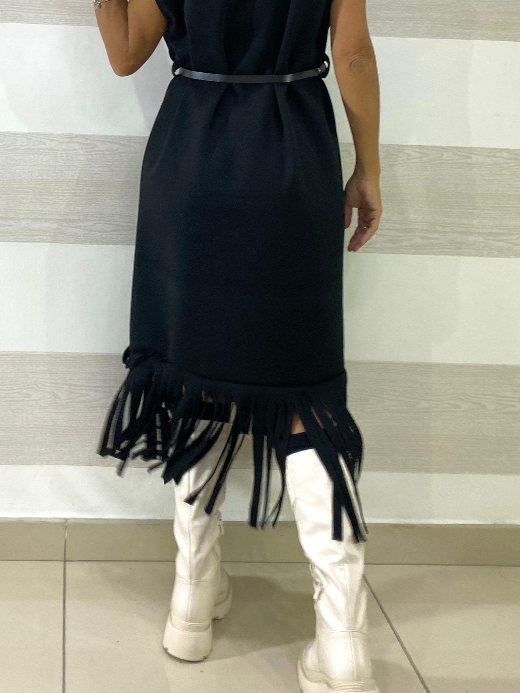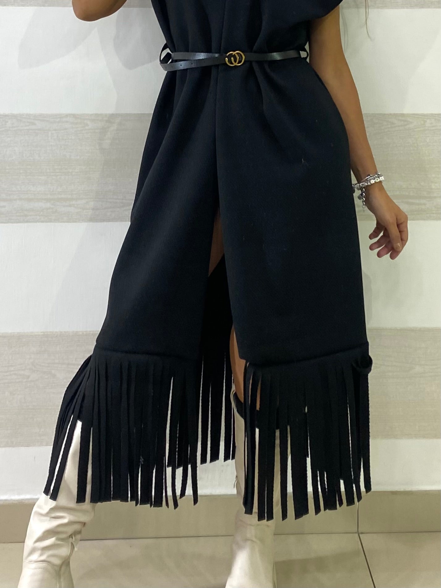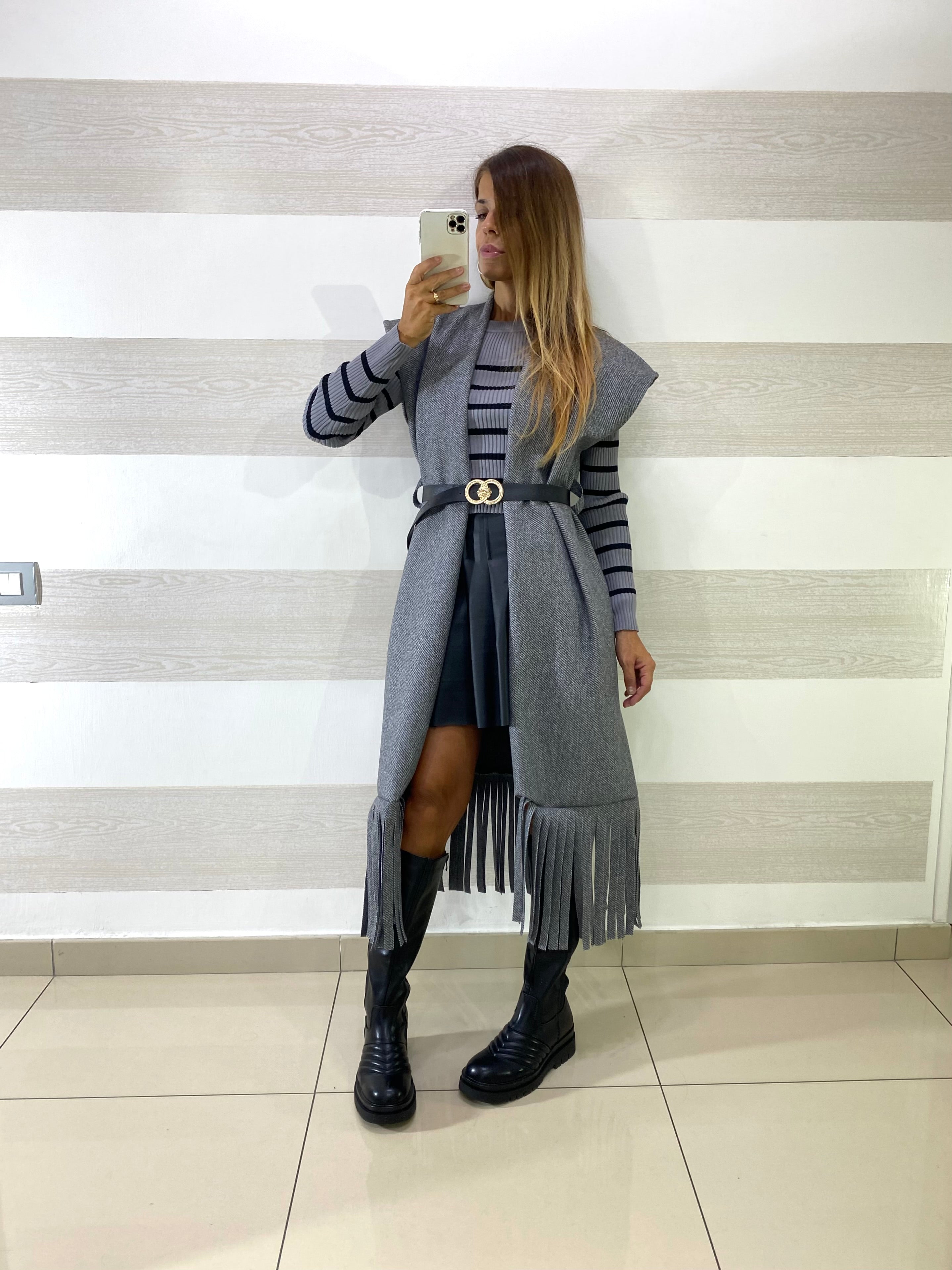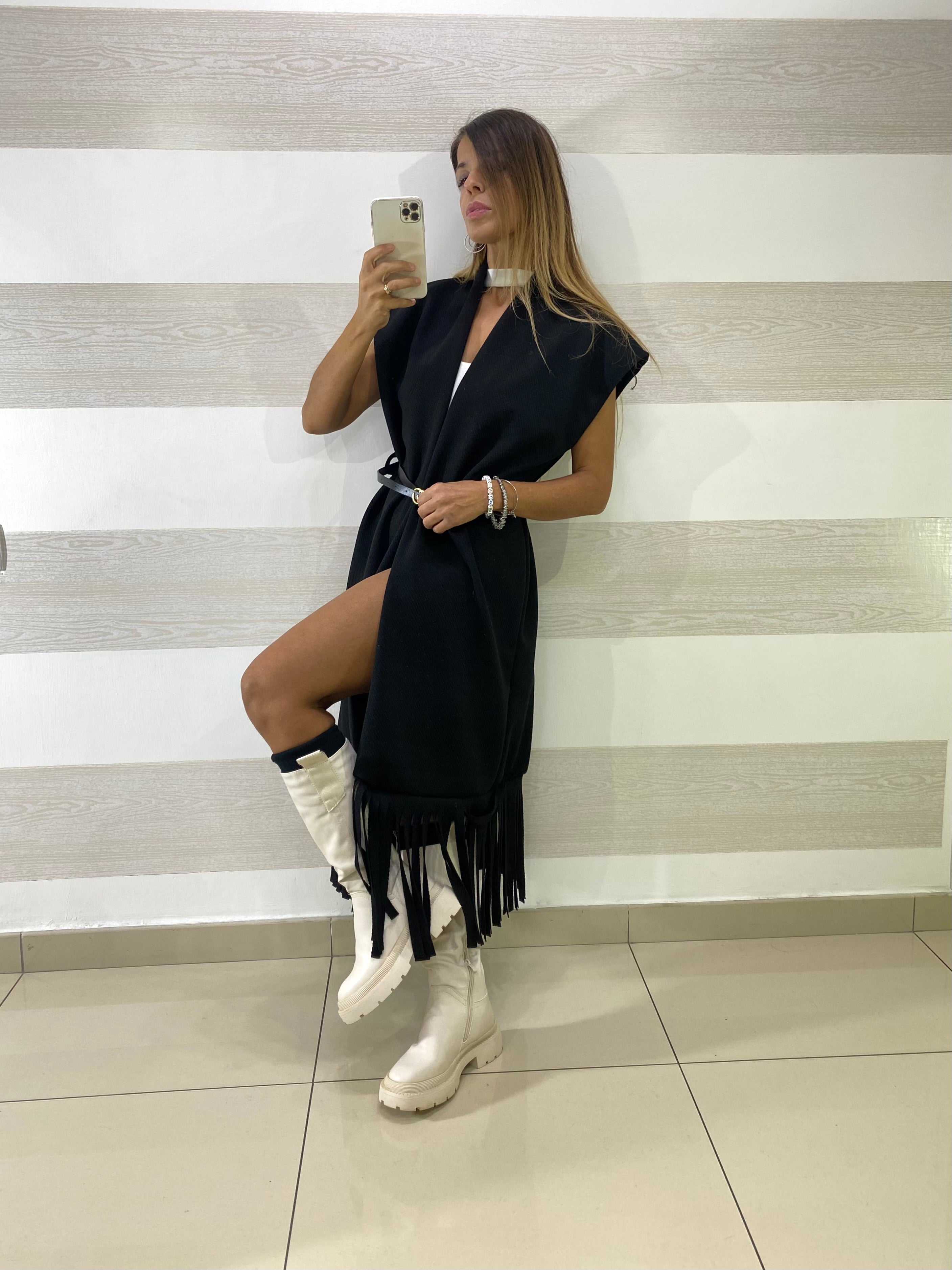 Cappotto Smanicato Freda Spigato con Frange