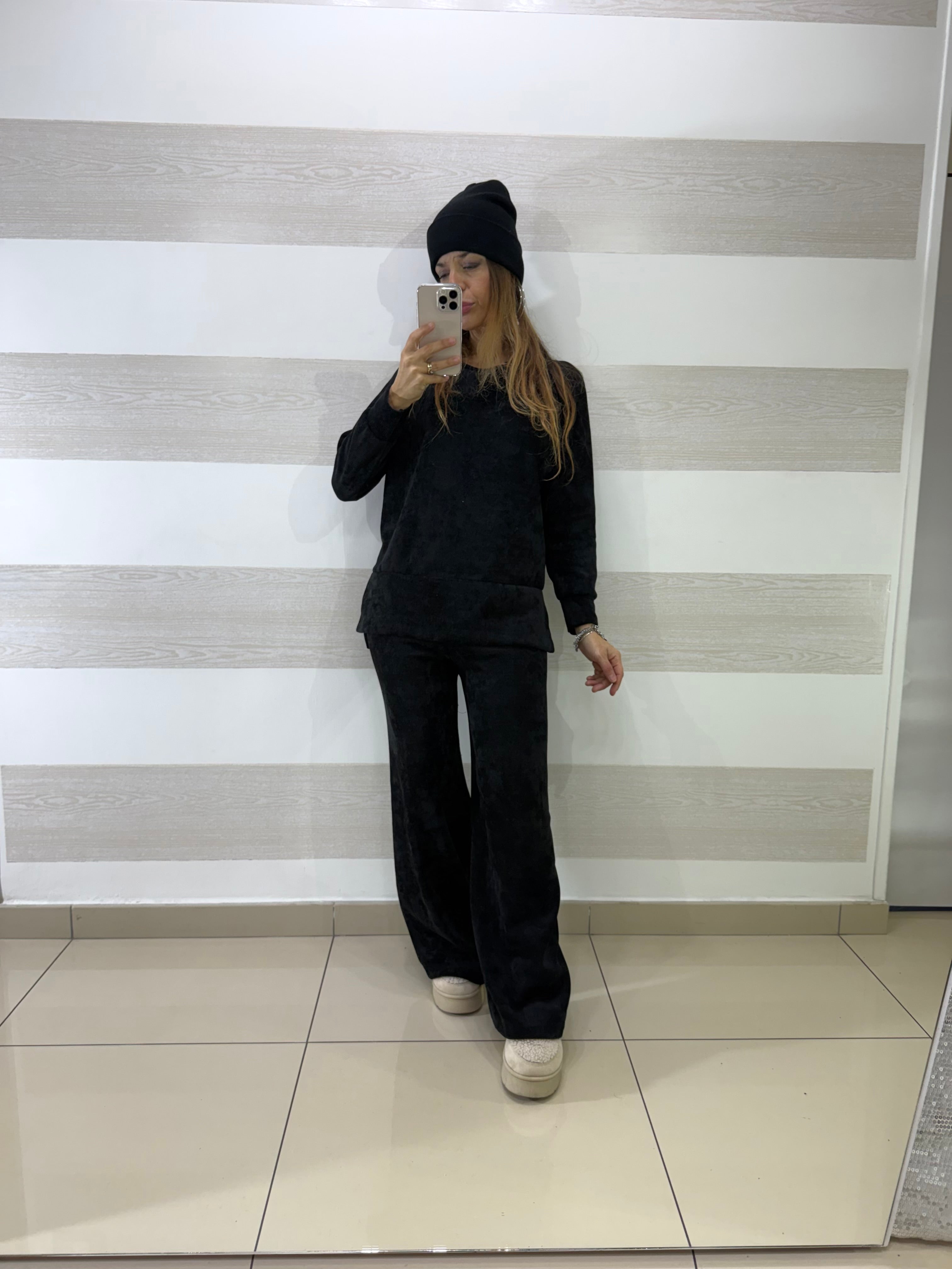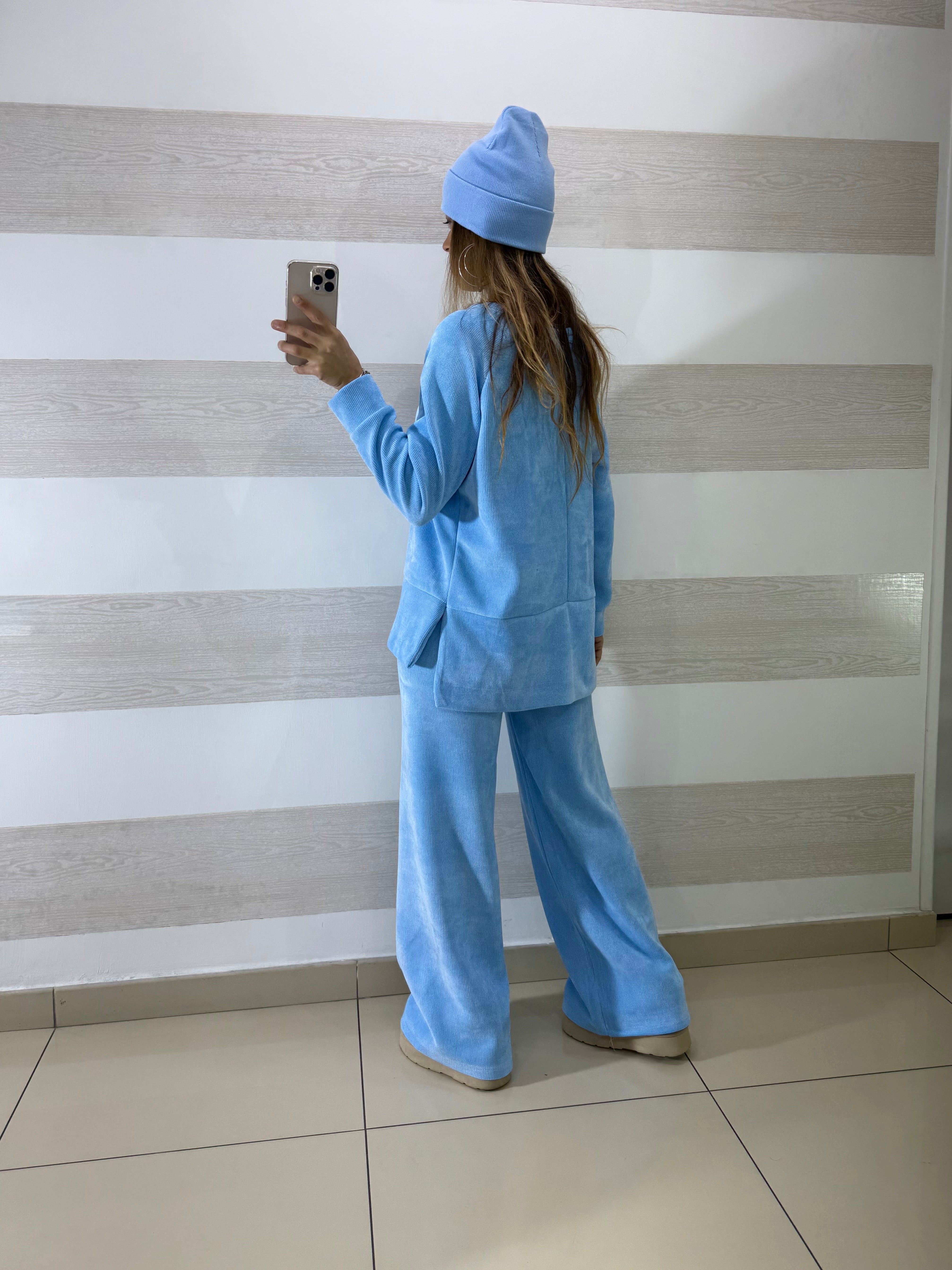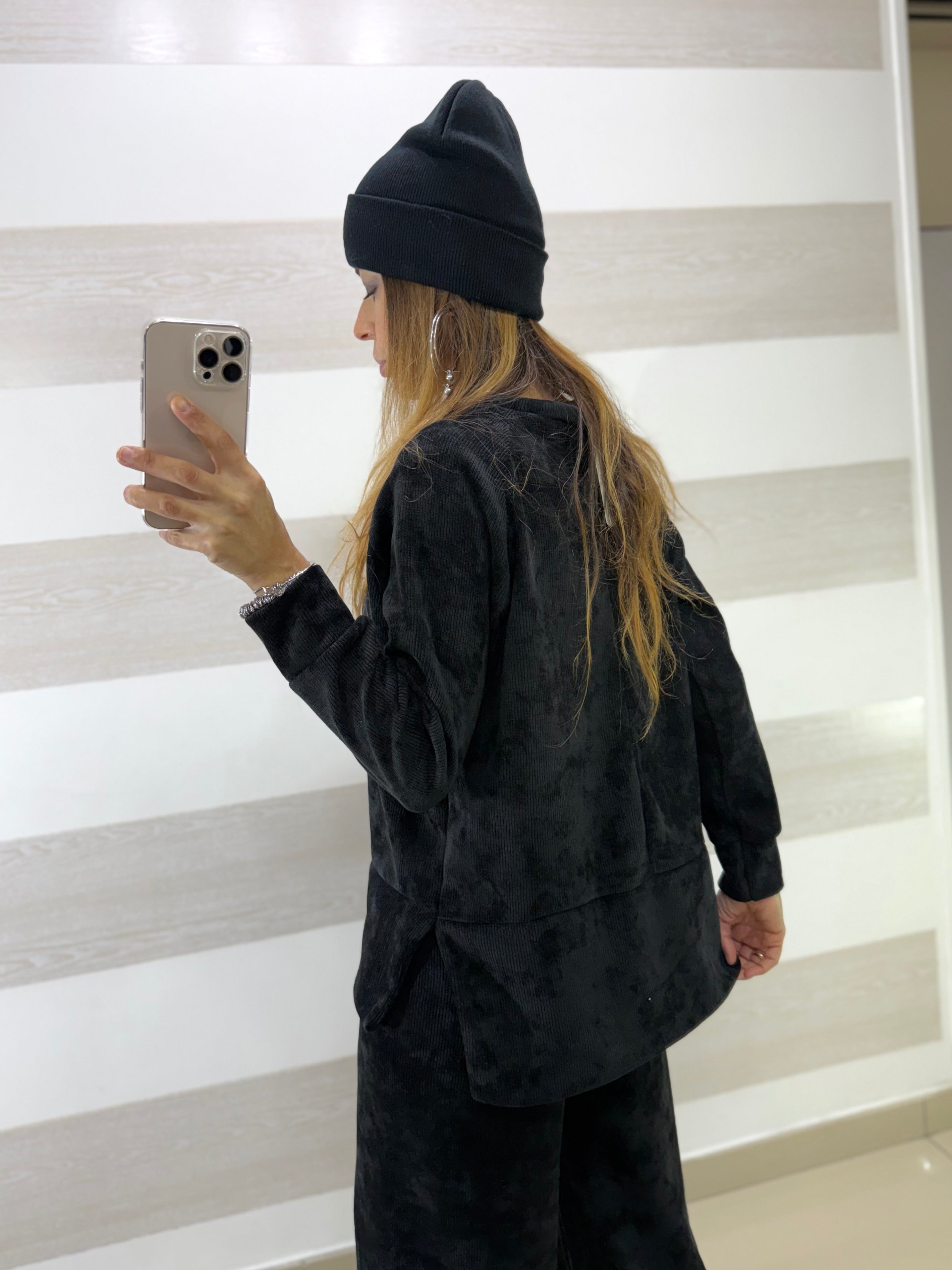 • Completo coord set elasticizzato in vellutino a costine composto da