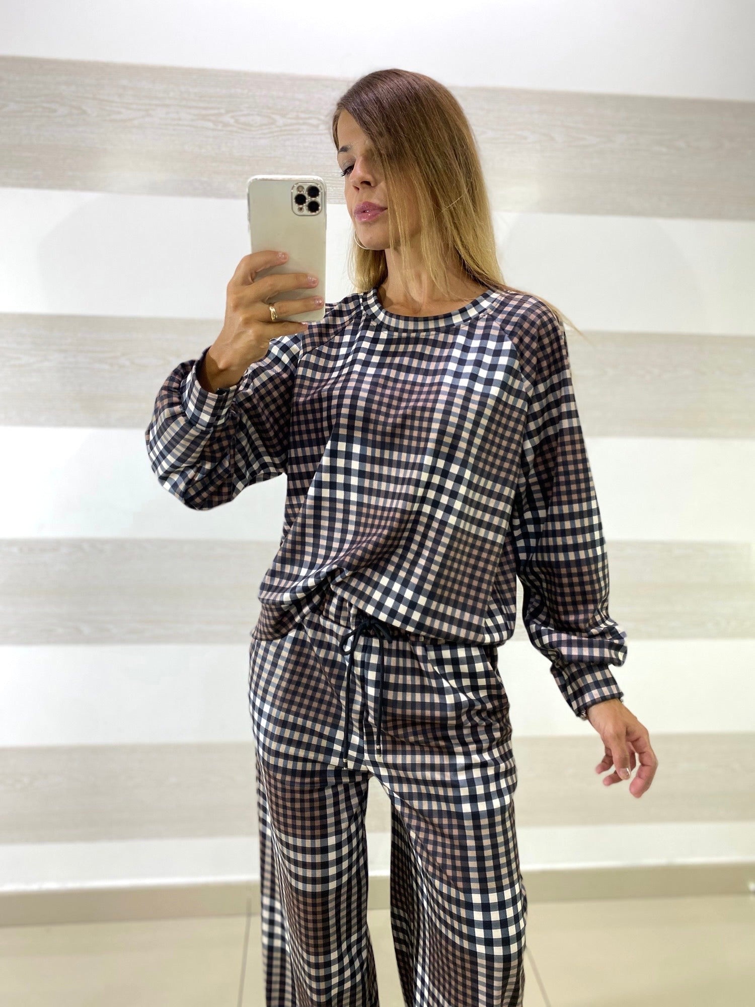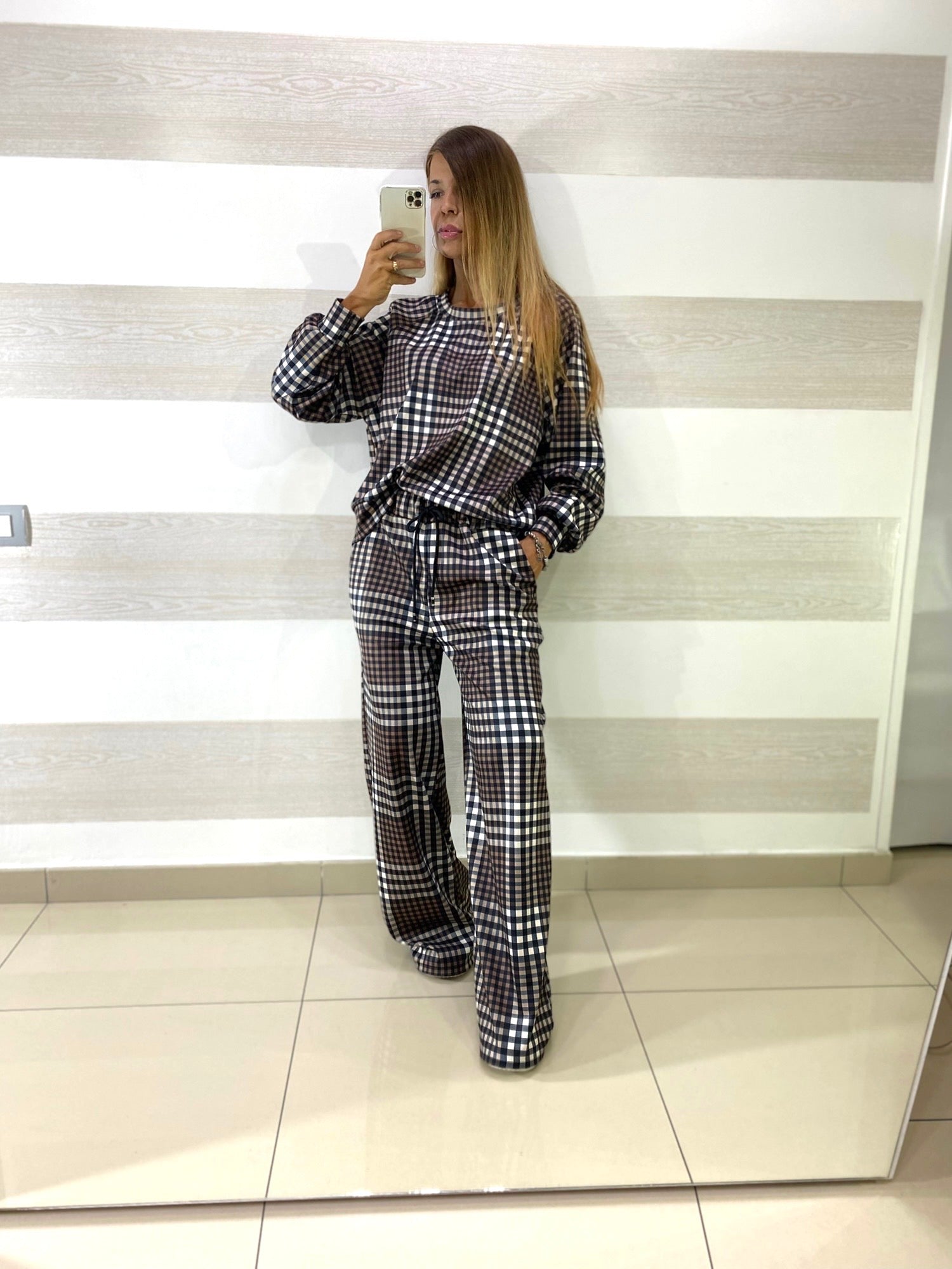 Coordinato Irma PantaPalazzo e Felpina a Quadrettini