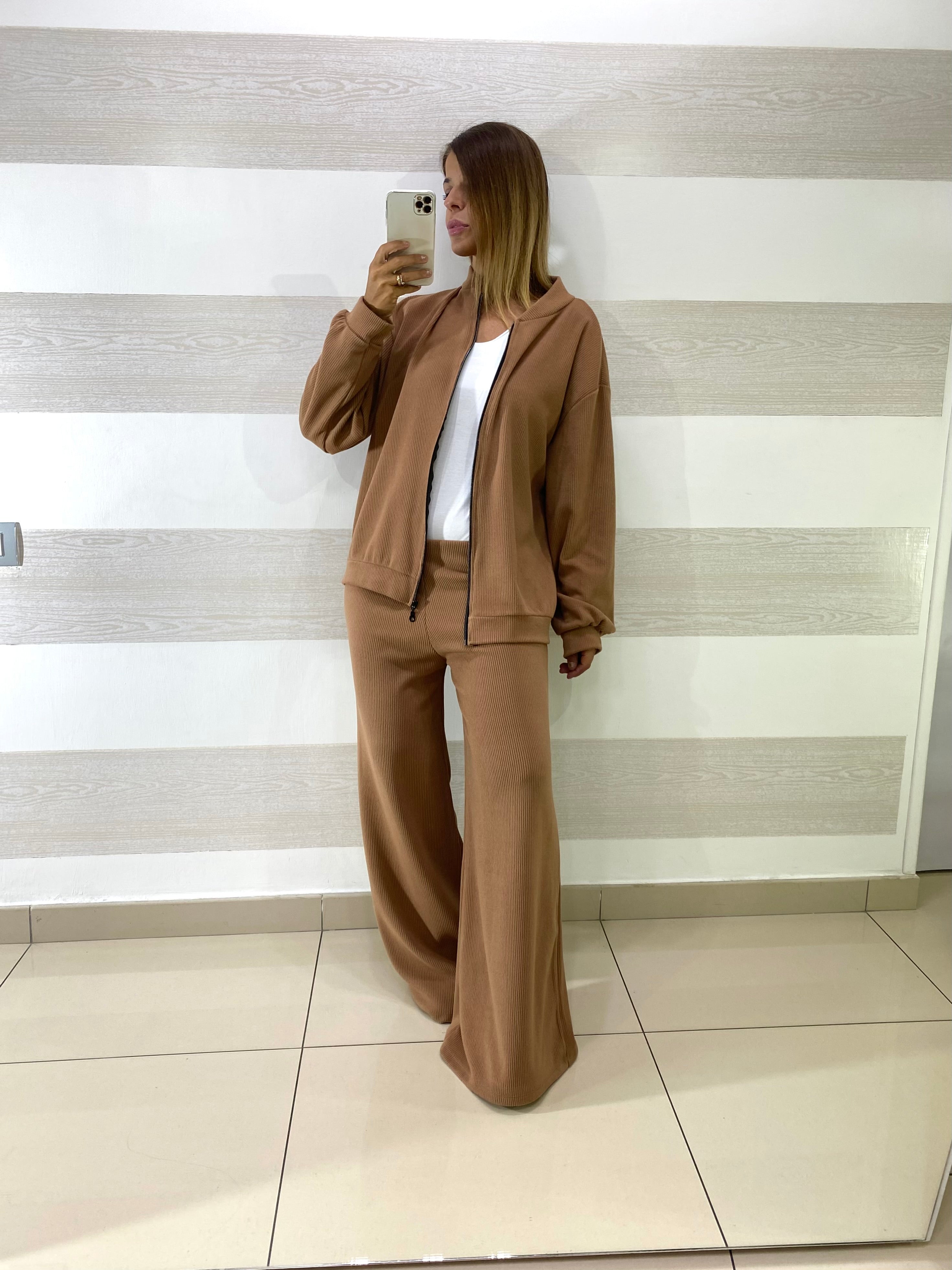 Coordinato Karen Vellutino PantaPalazzo e Felpina con Zip