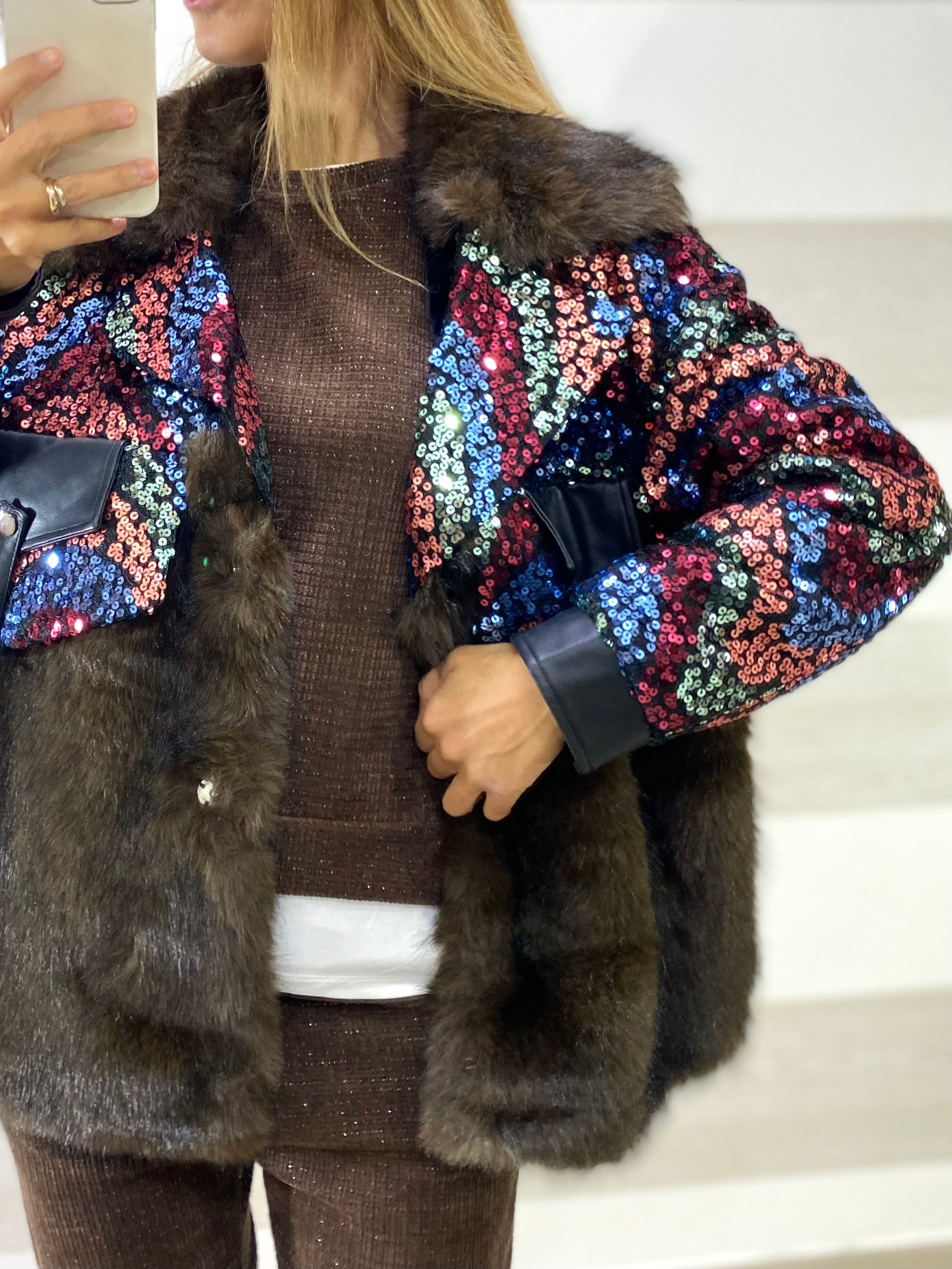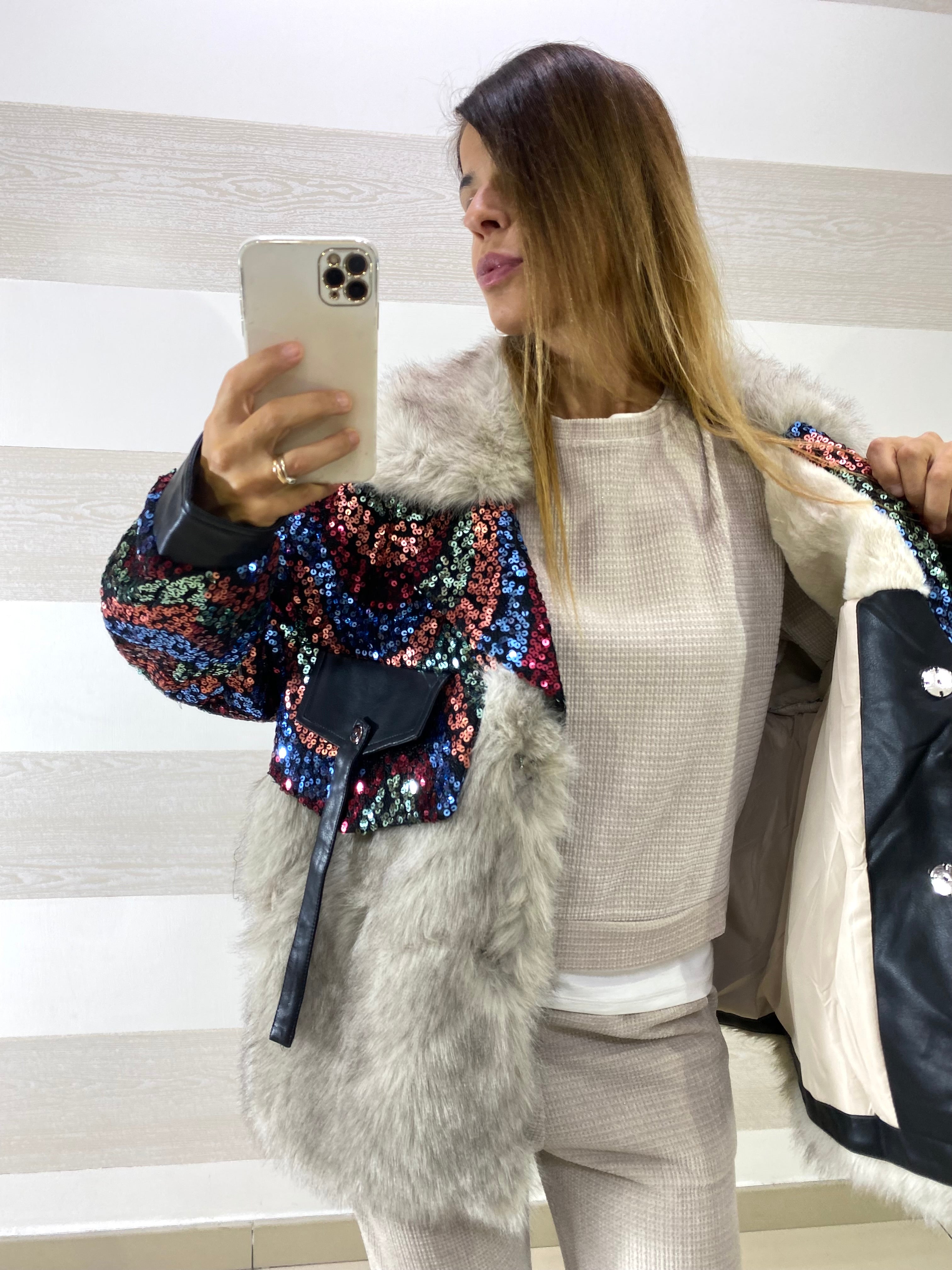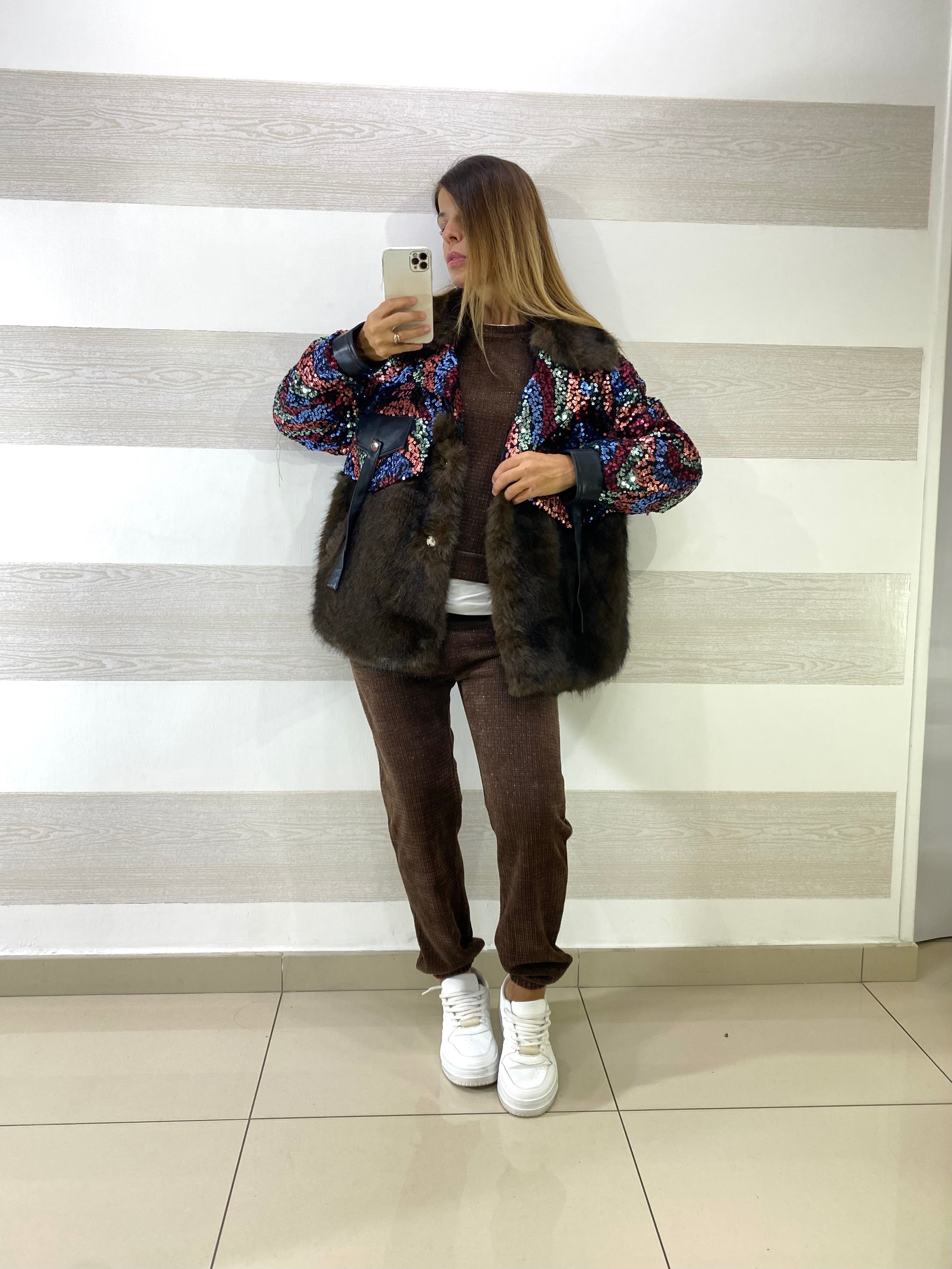 • Completo tuta elasticizzata in vellutino e lurex composto da
