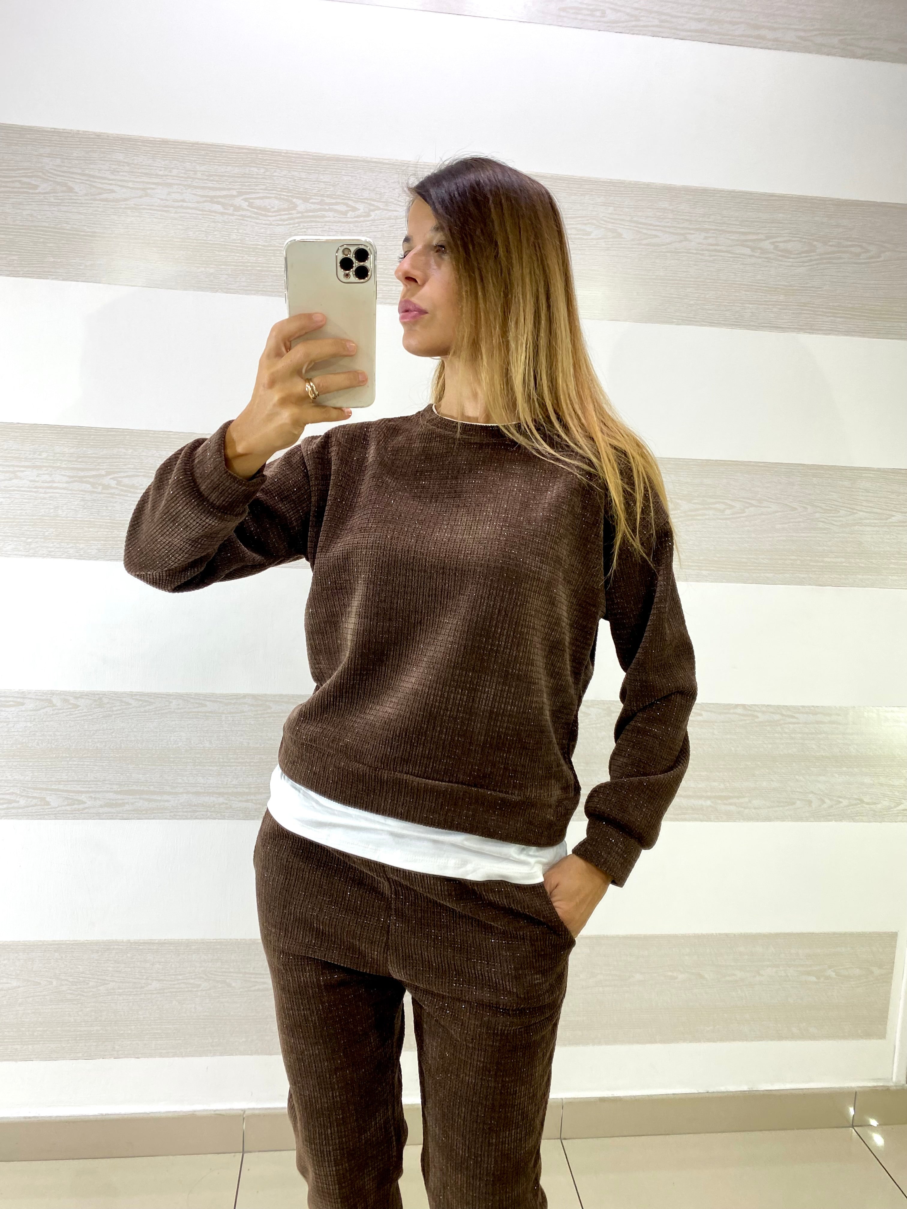 Coordinato Taylor Vellutino Lurex Pantaloni e Felpina
