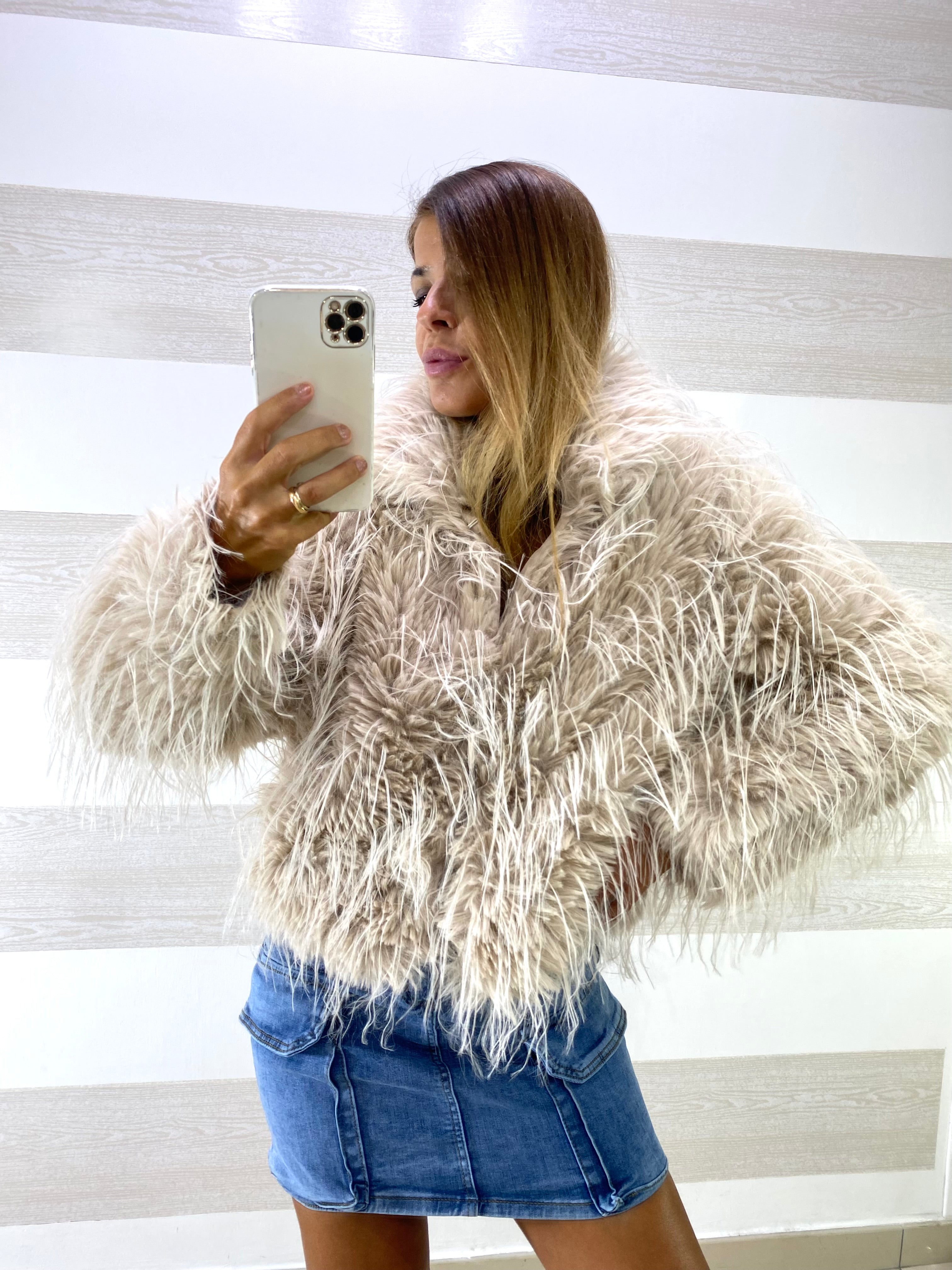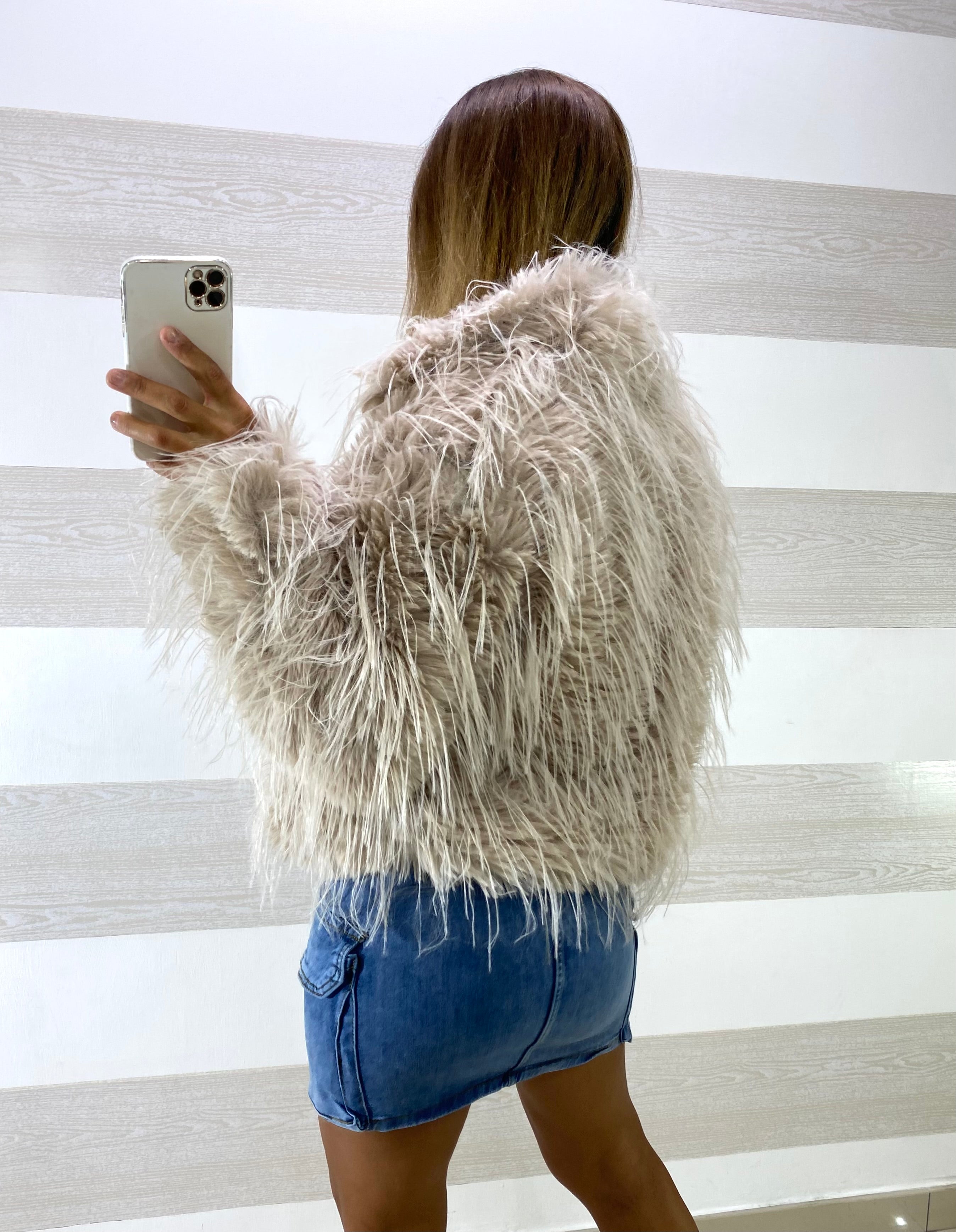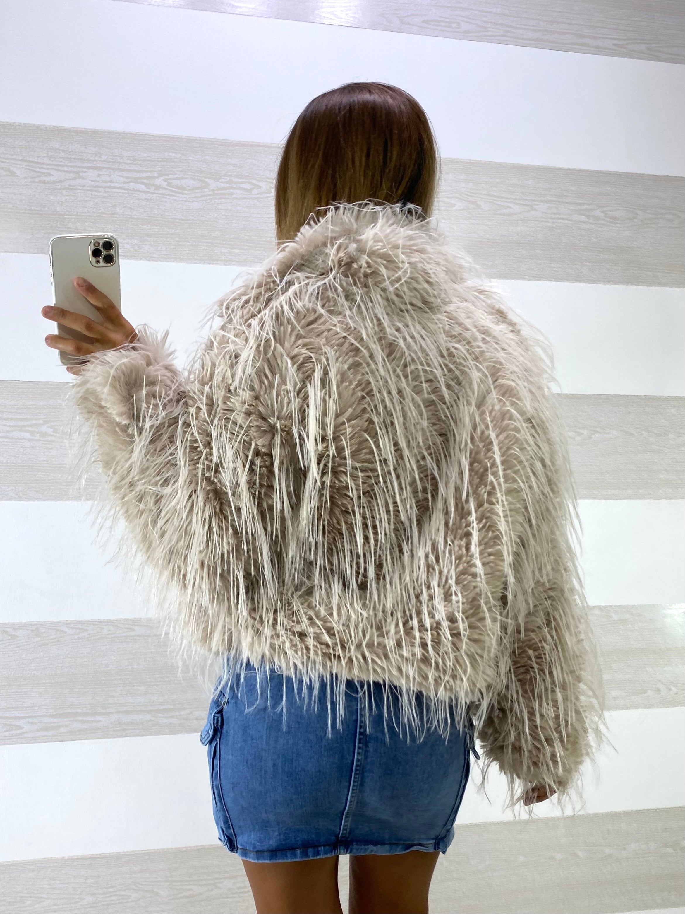 • Giubbino giacca in eco pelliccia morbida e voluminosa