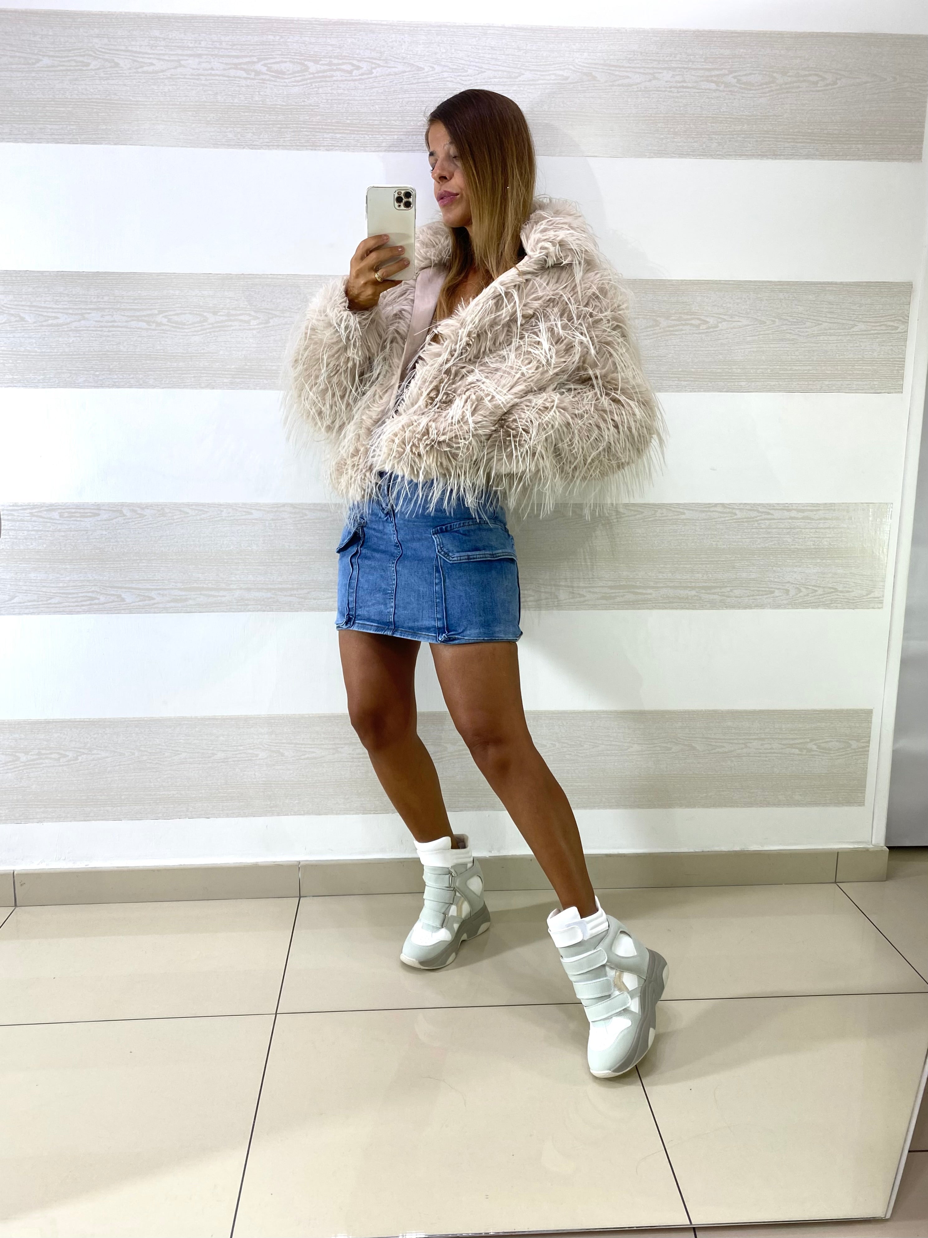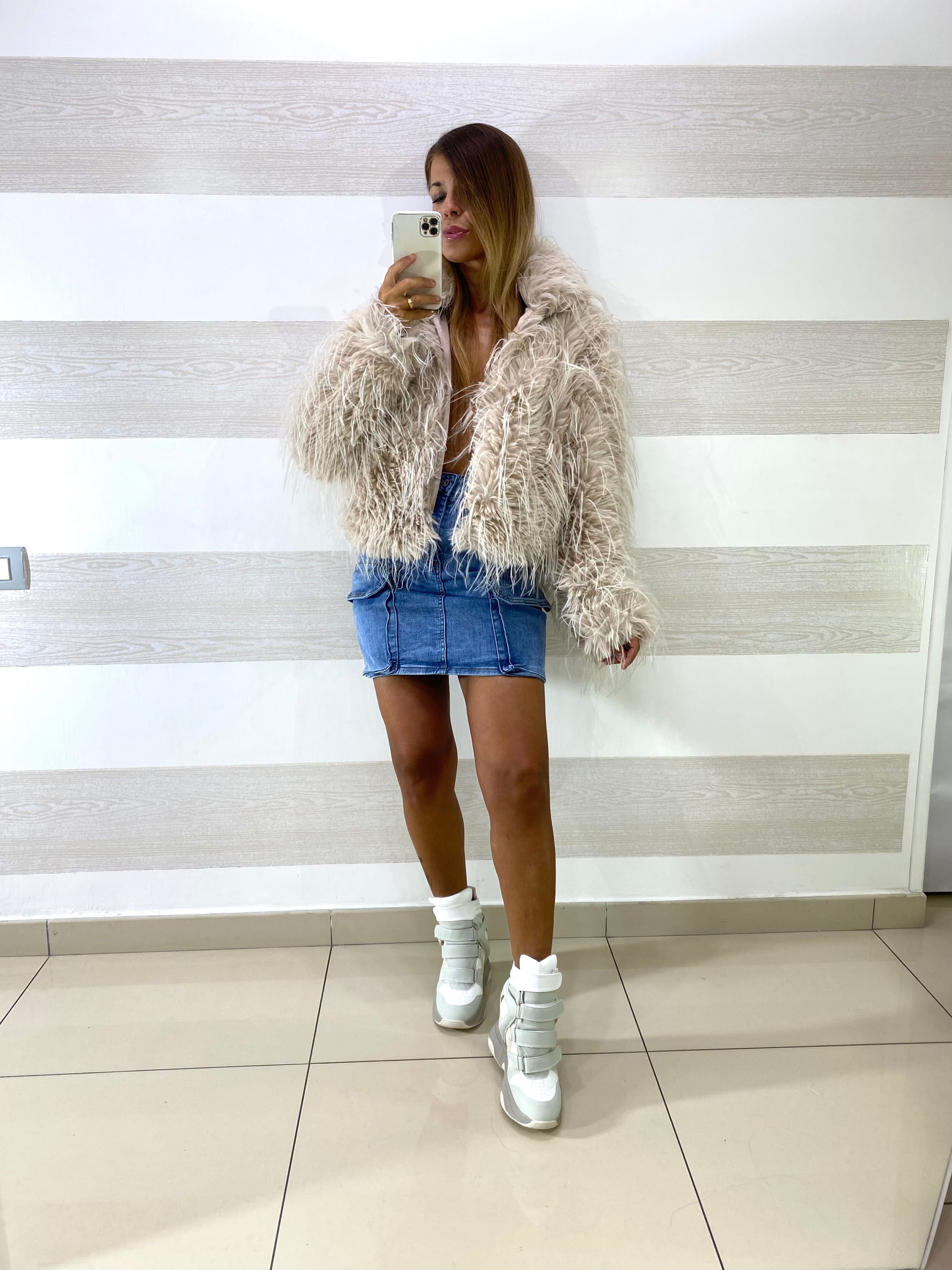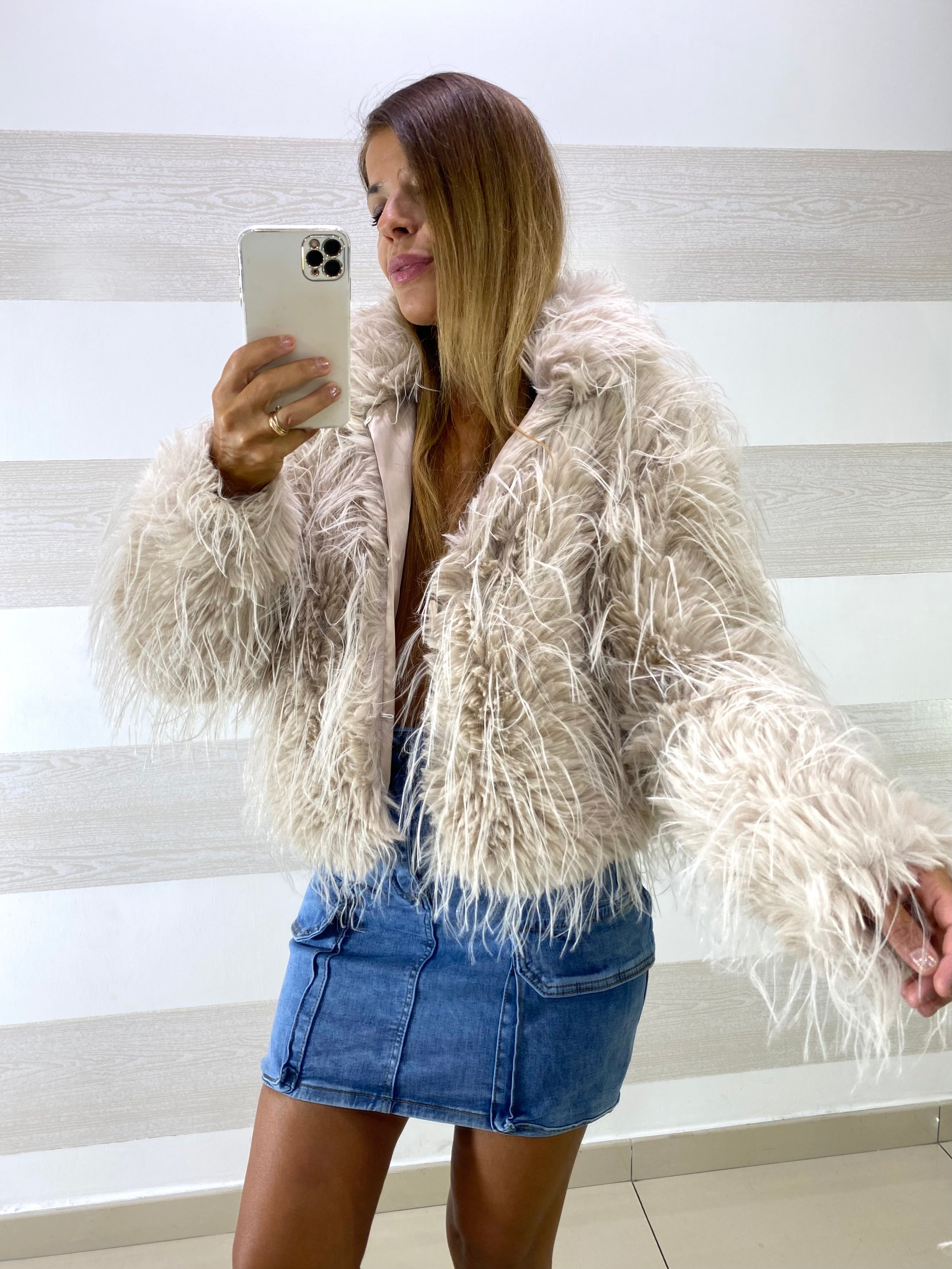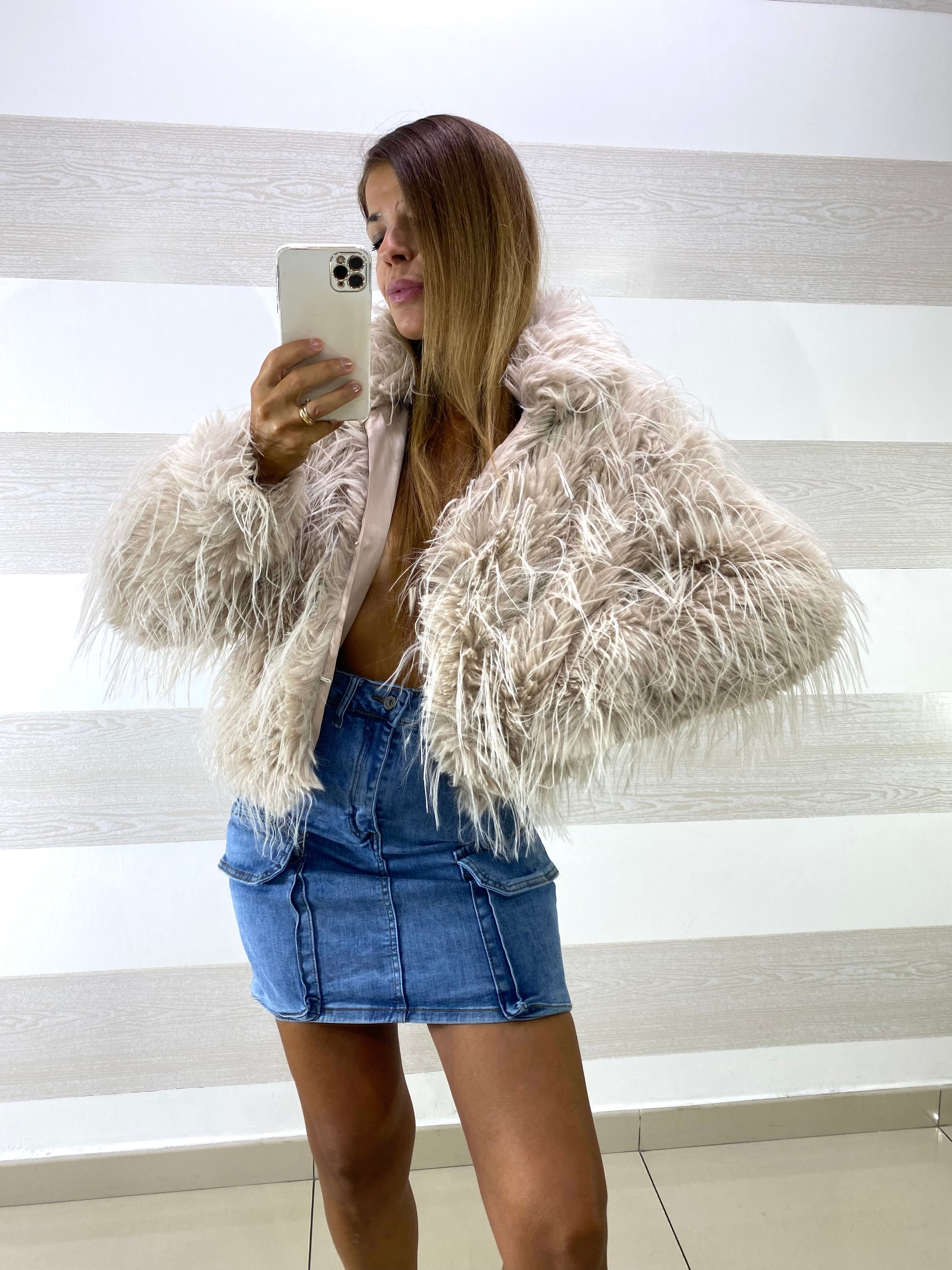 • Giubbino giacca in eco pelliccia morbida e voluminosa