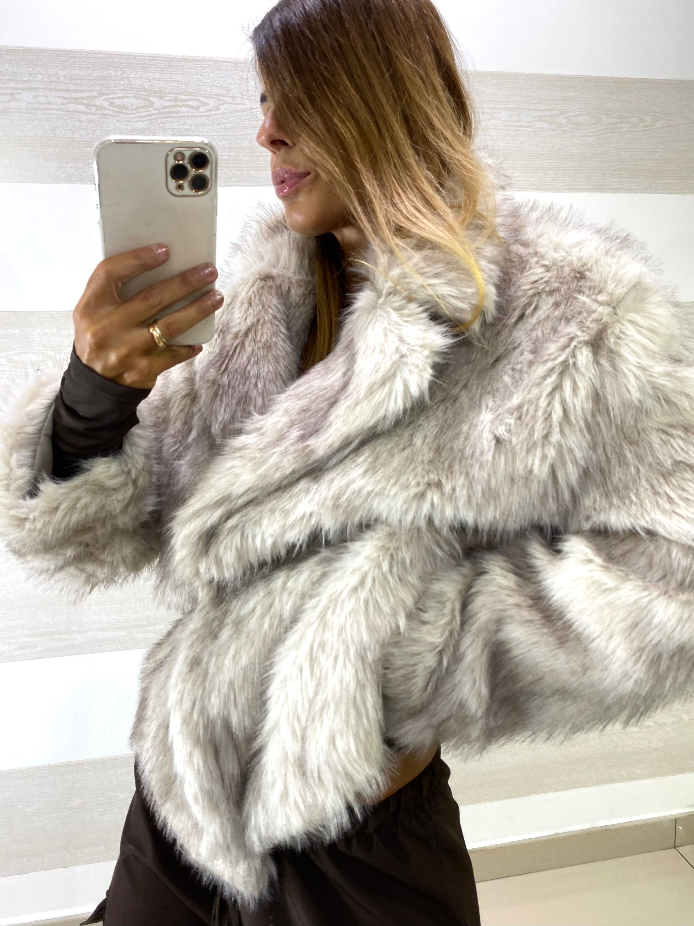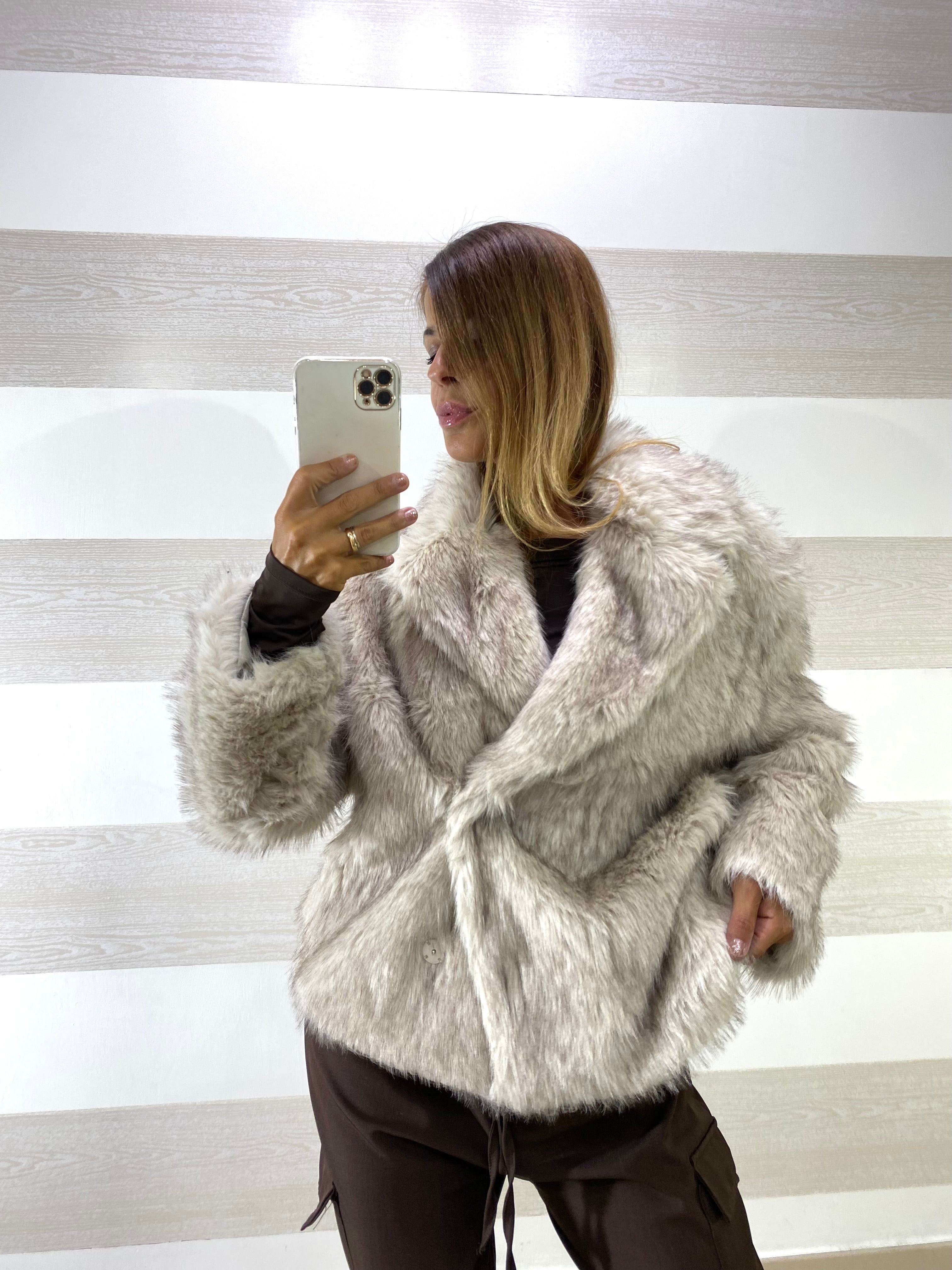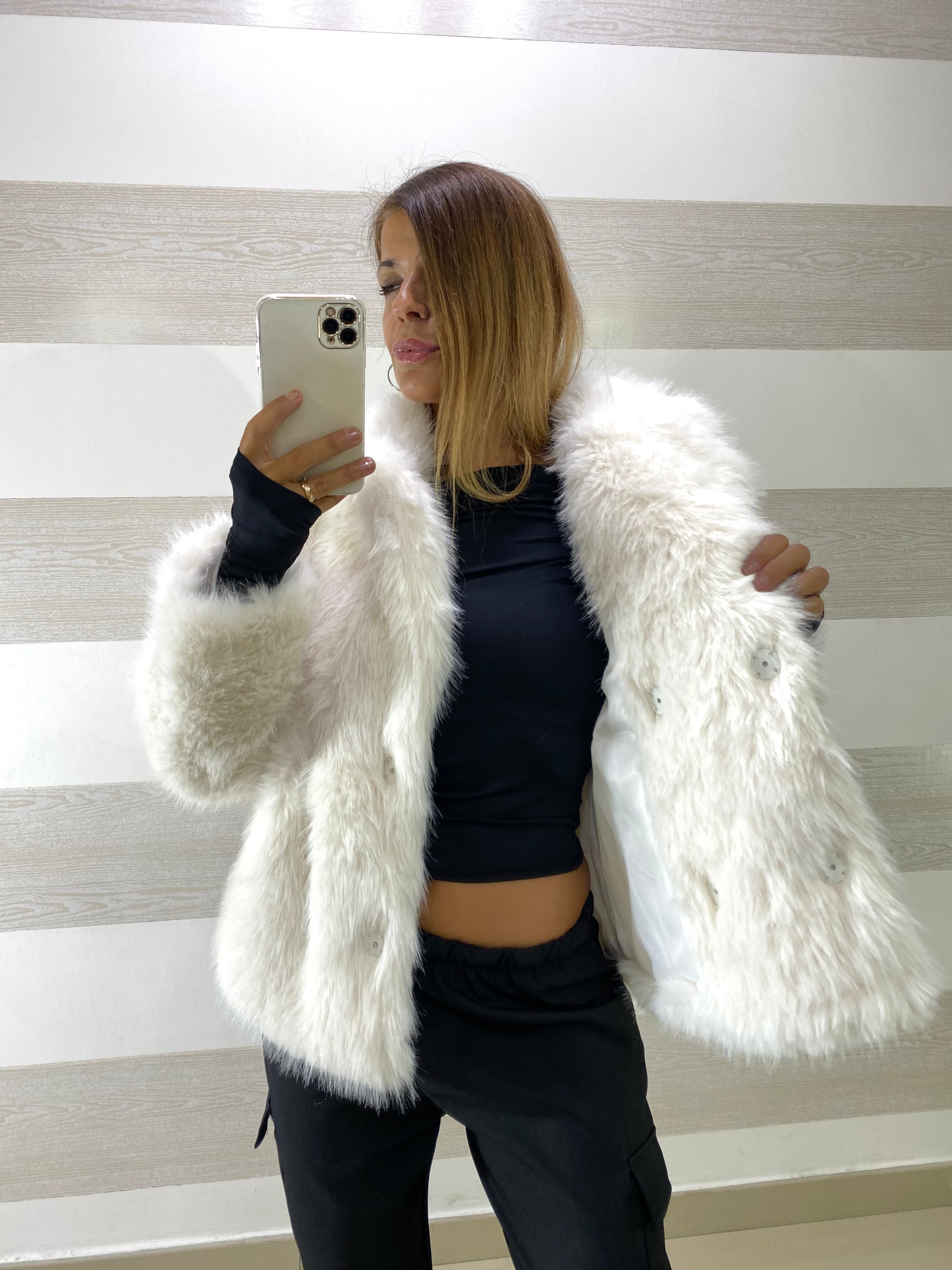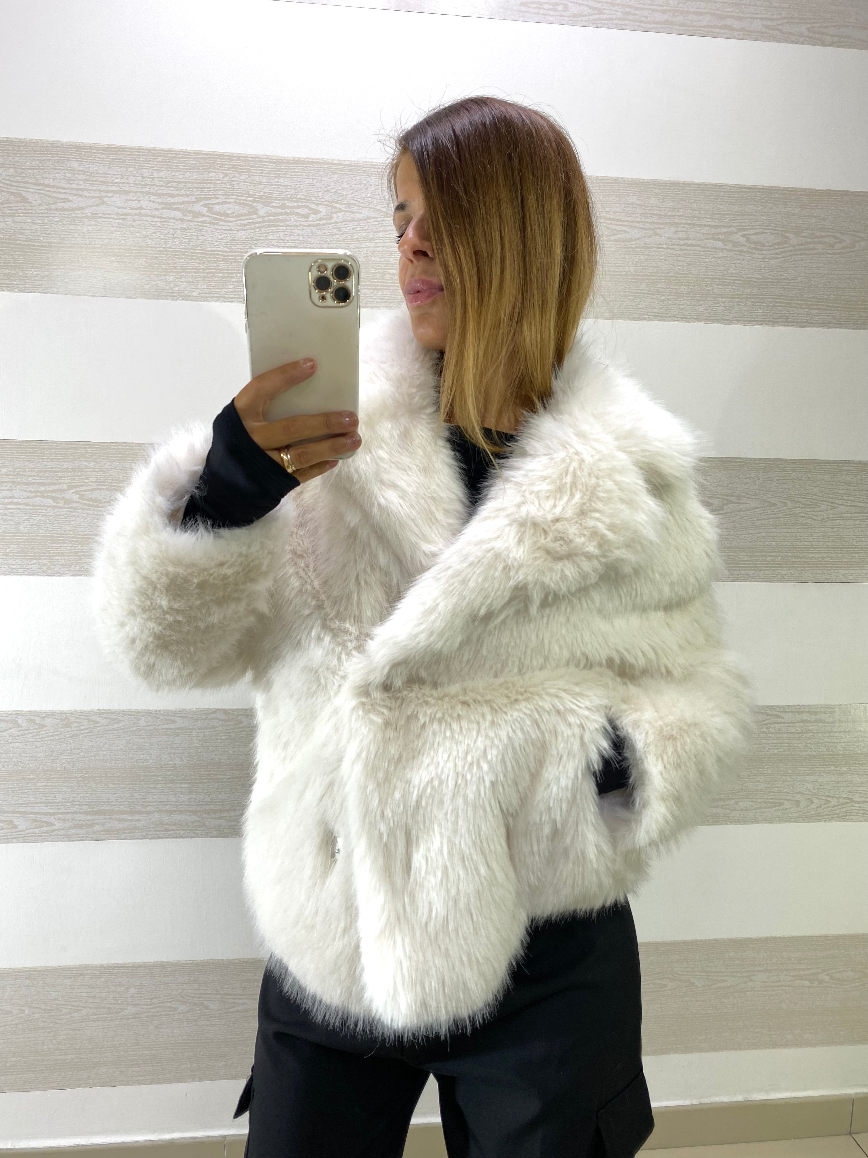 • Giacca giubbino in eco pelliccia morbida e voluminosa