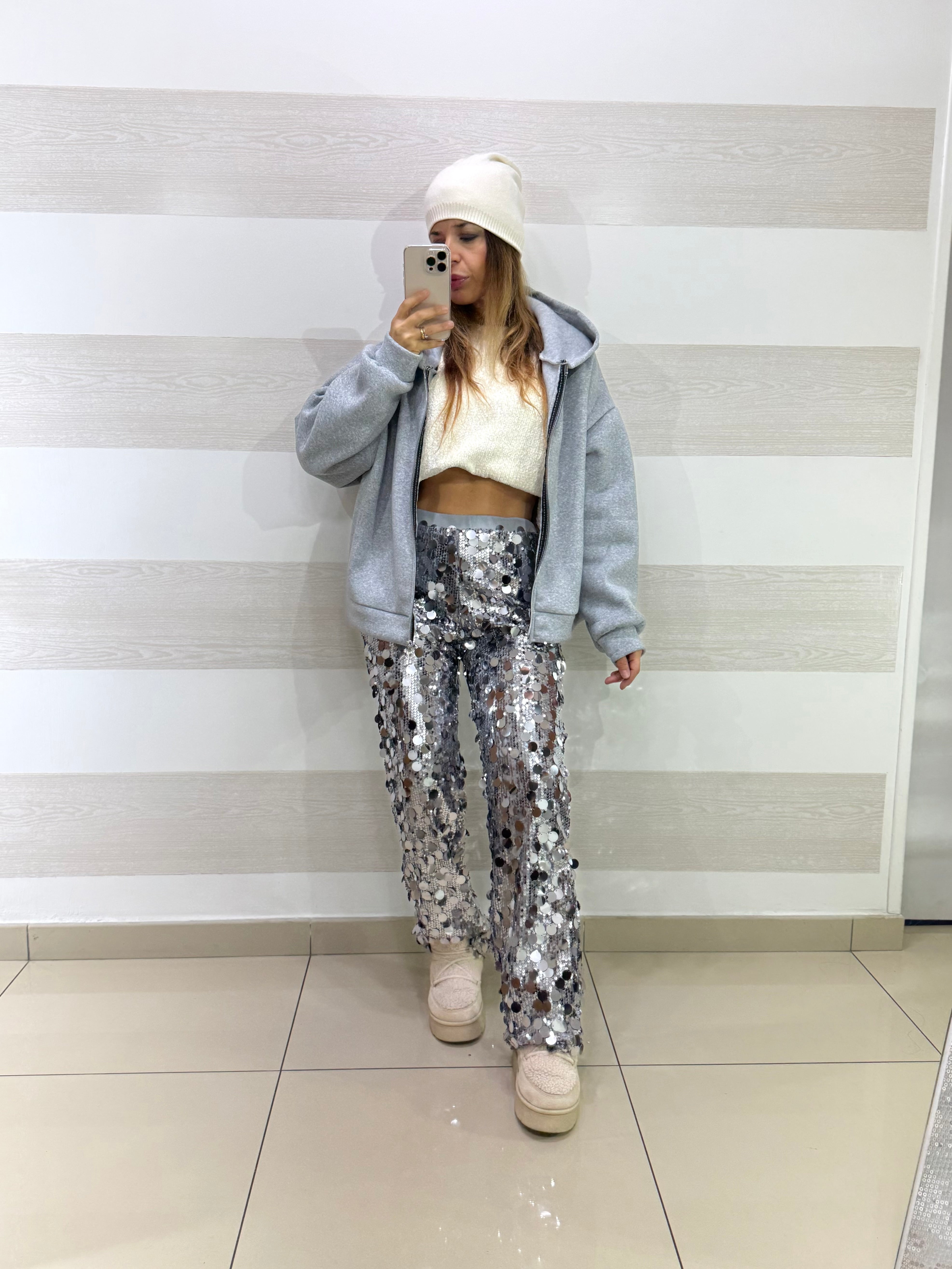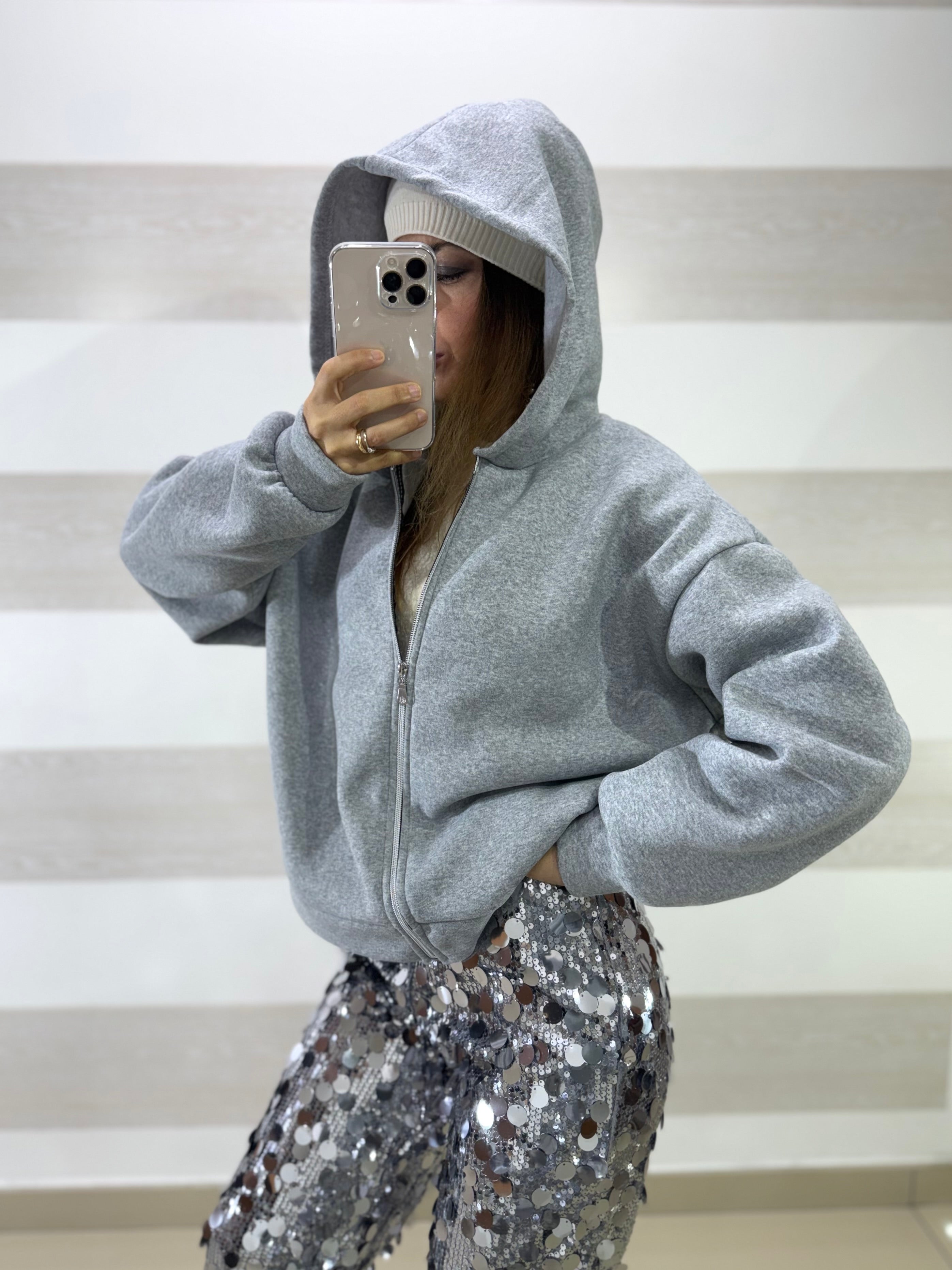 Felpa Dolly Garzata con Zip e Cappuccio Grigia