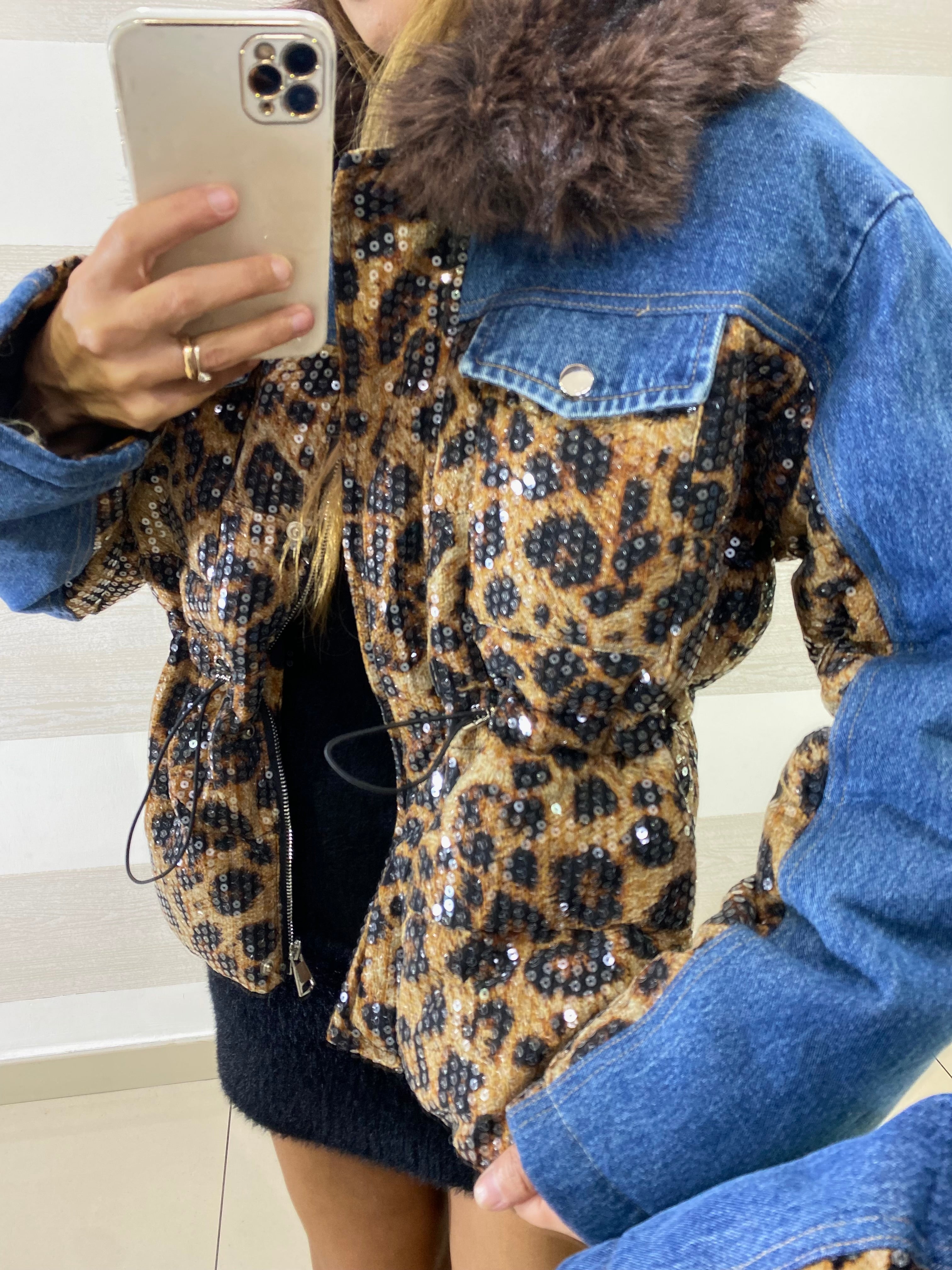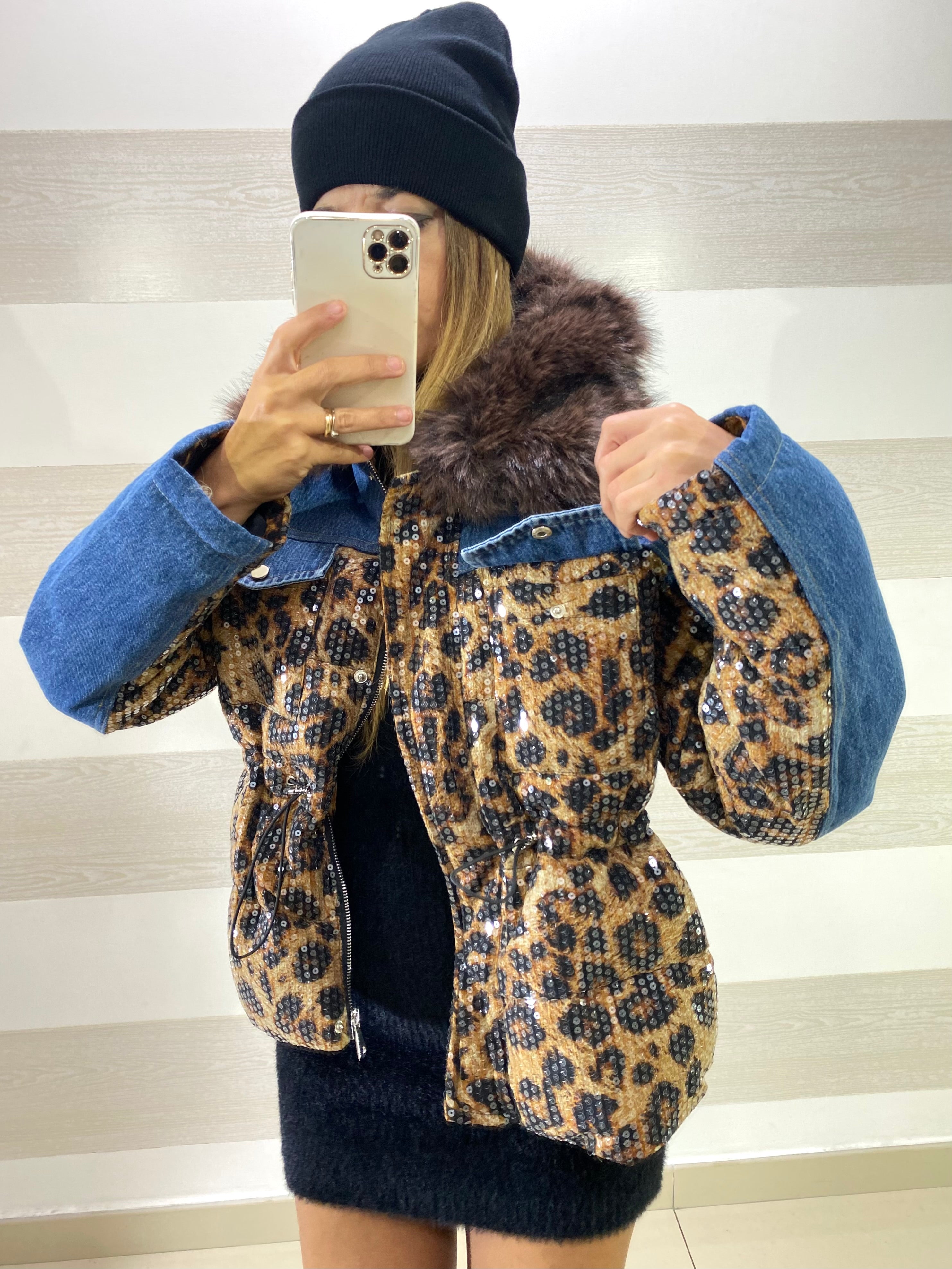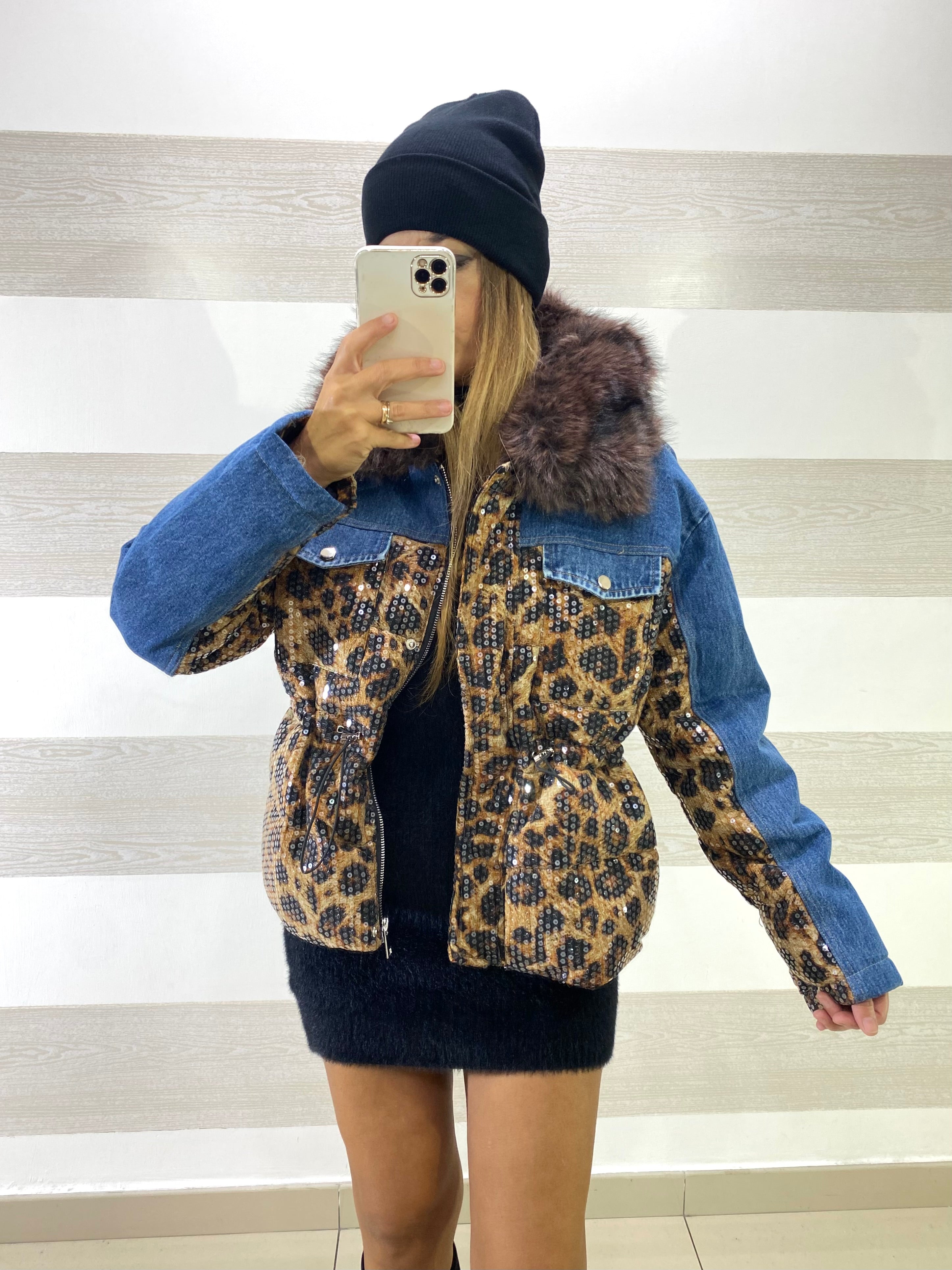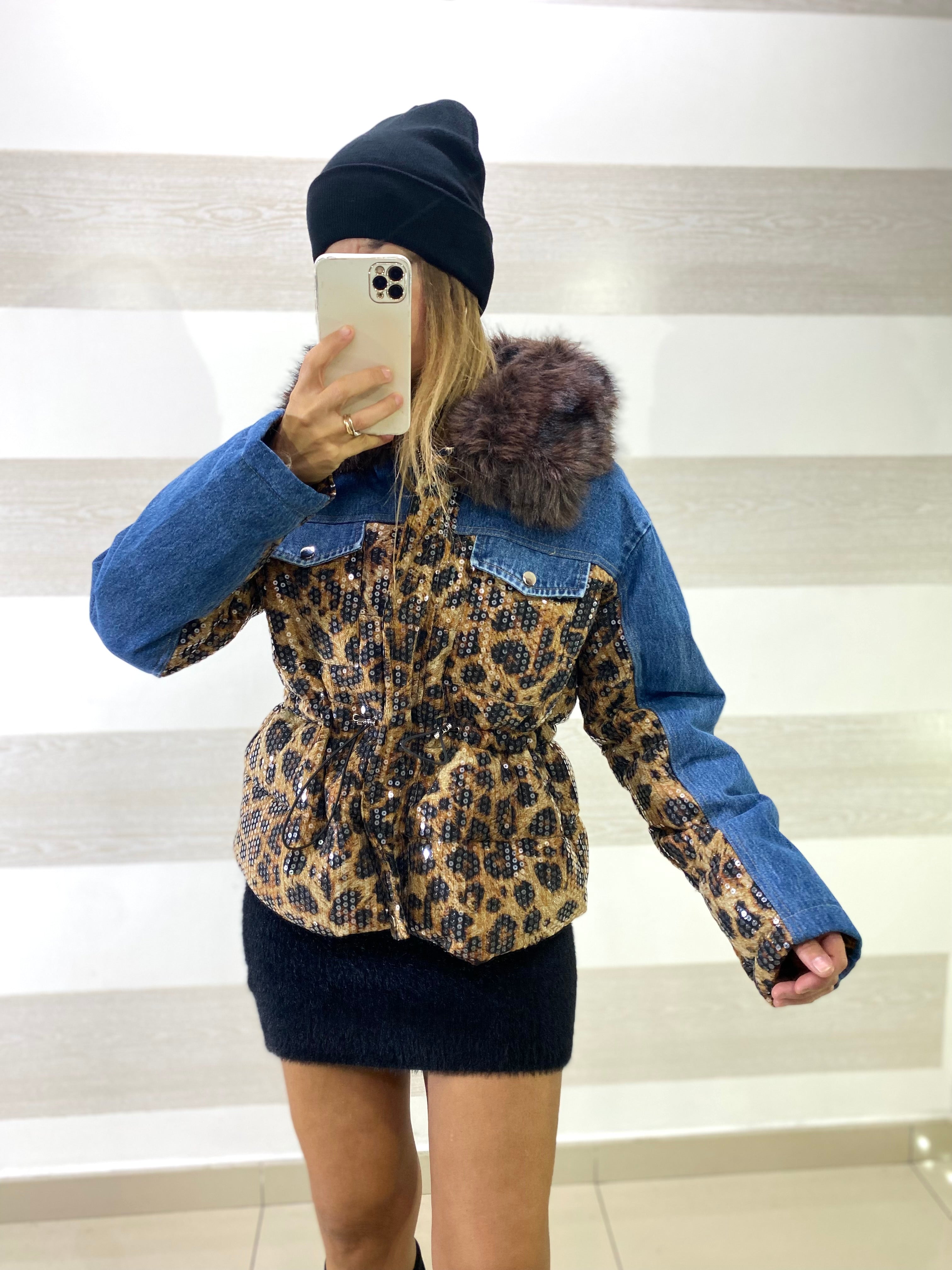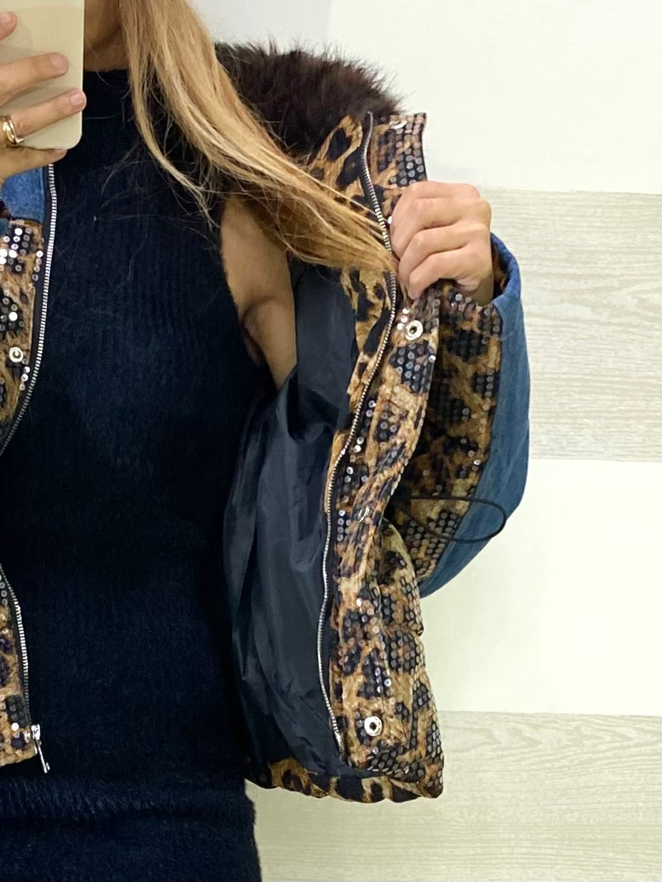 Giubbino Cheri Jeans e Maculato con Paillettes Imbottito