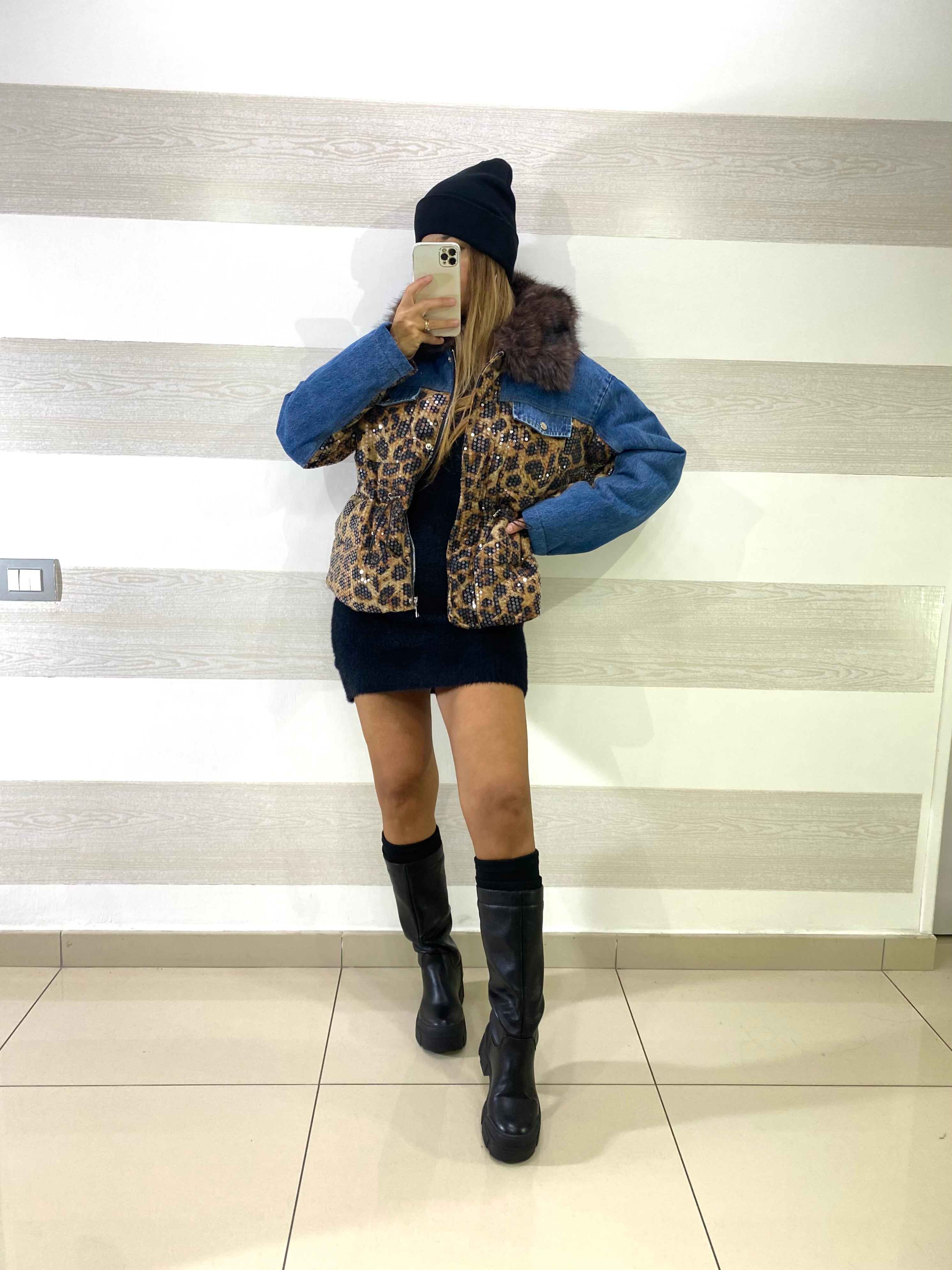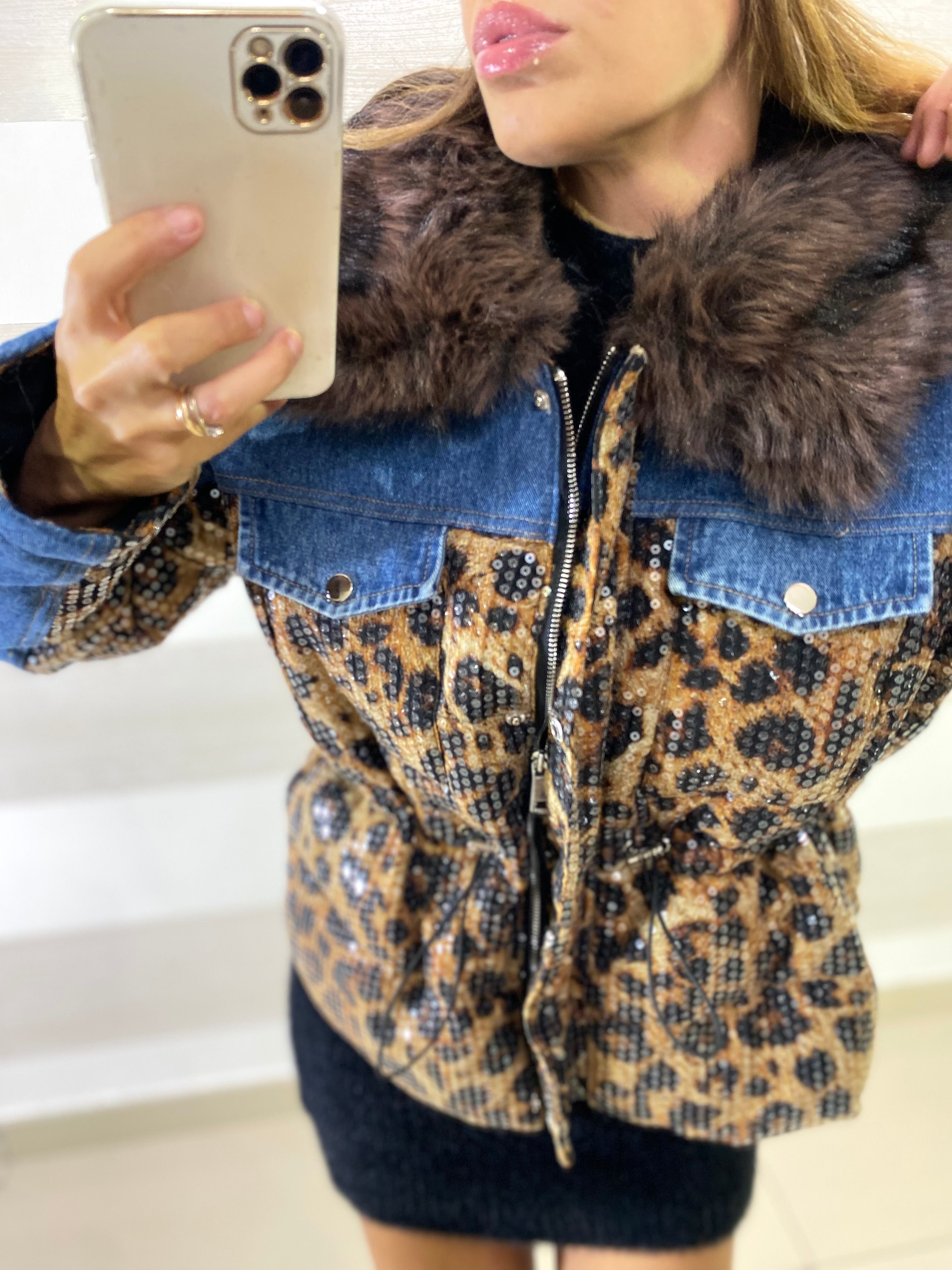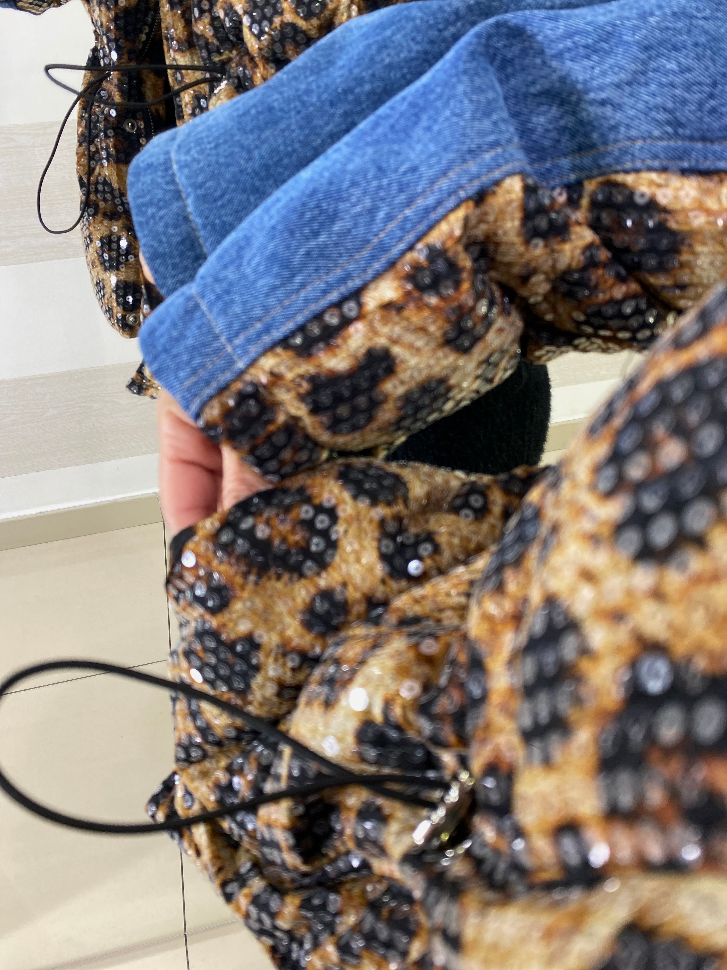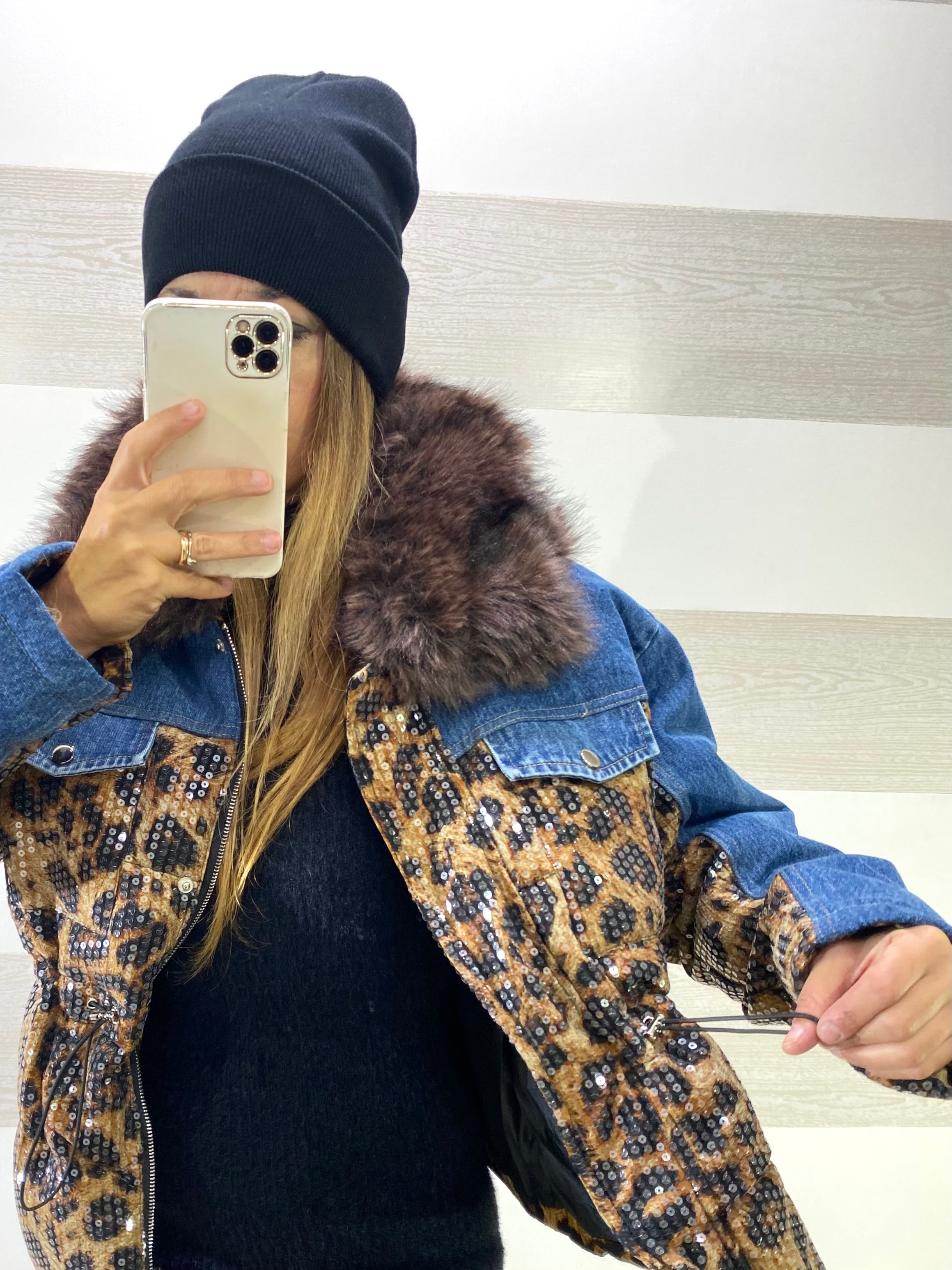 Giubbino Cheri Jeans e Maculato con Paillettes Imbottito