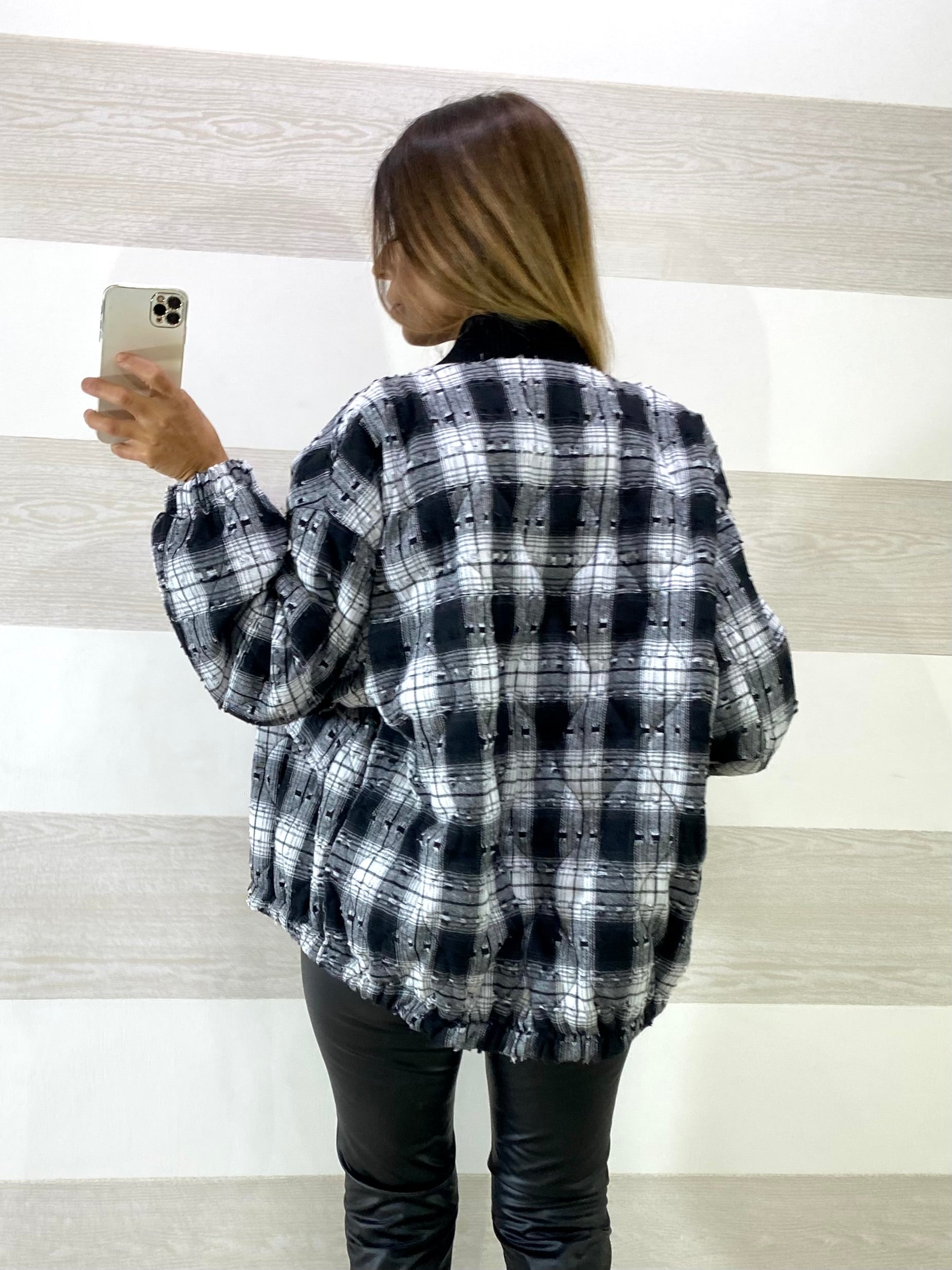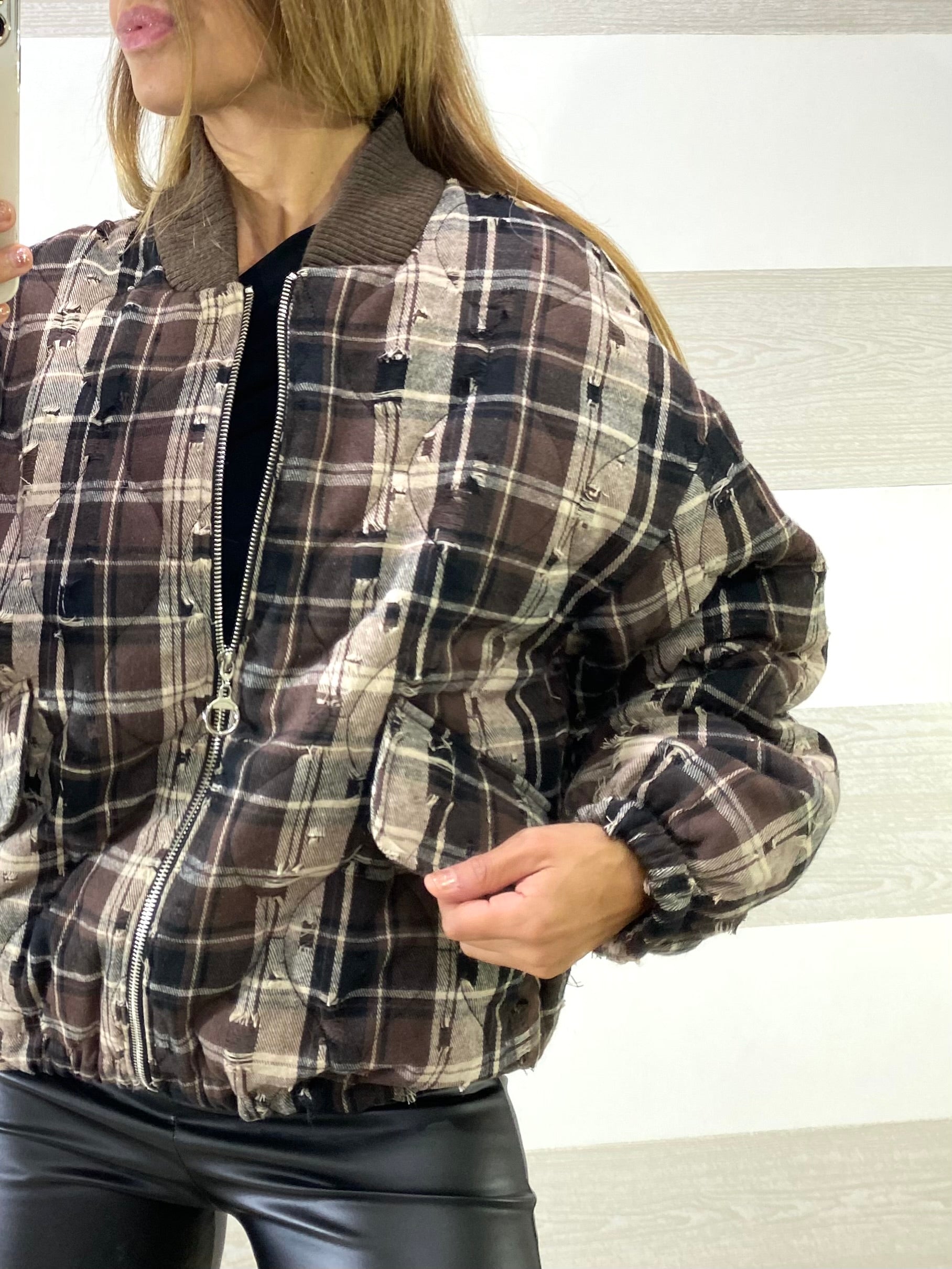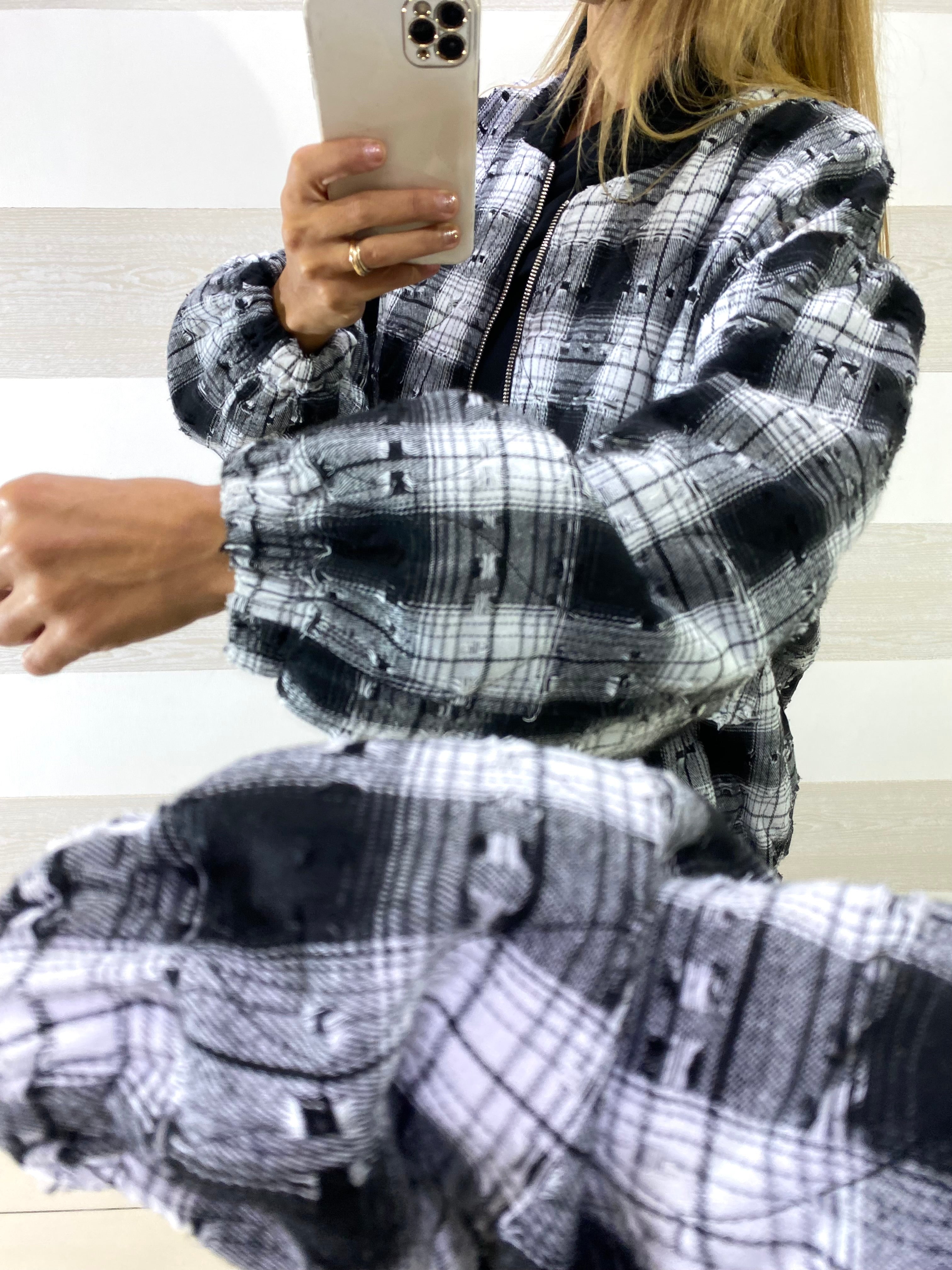 Giubbino Miranda 1 a Quadroni con Micro Strappi Sfrangiati