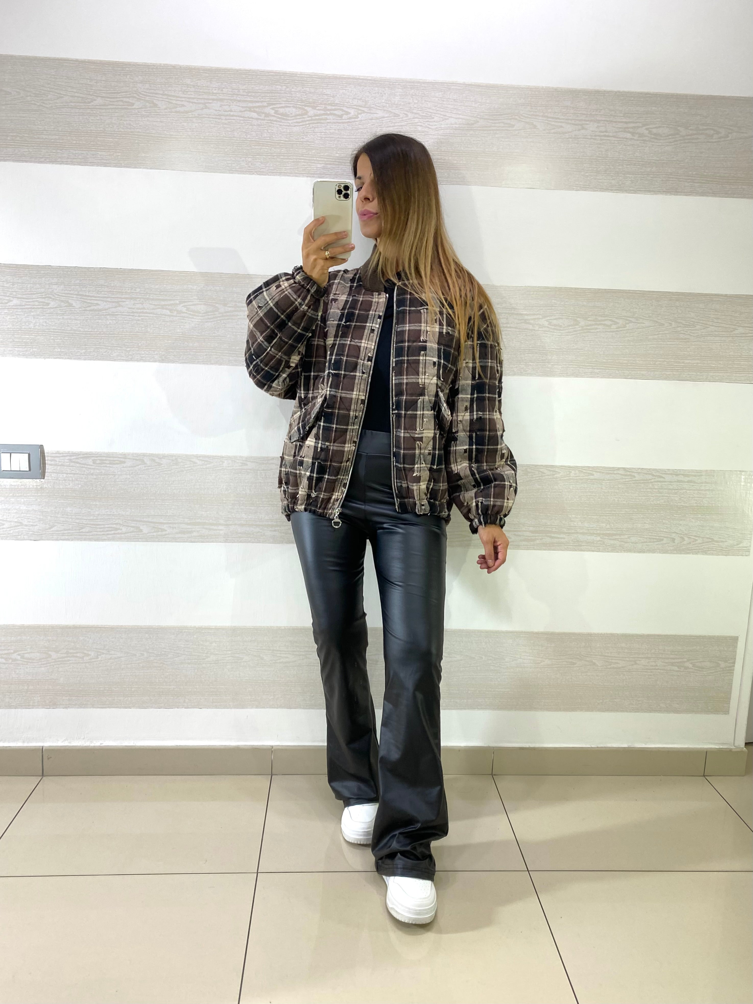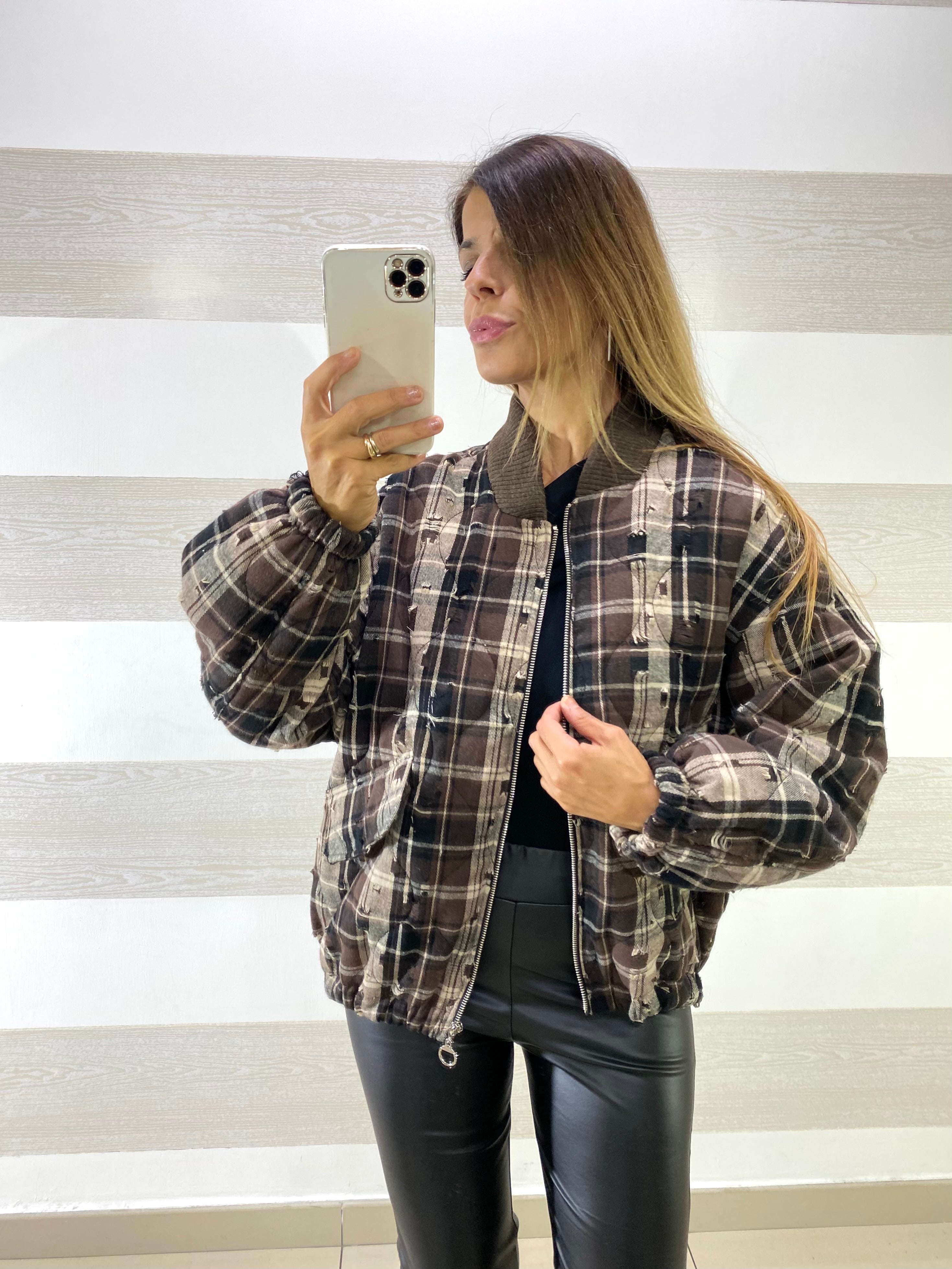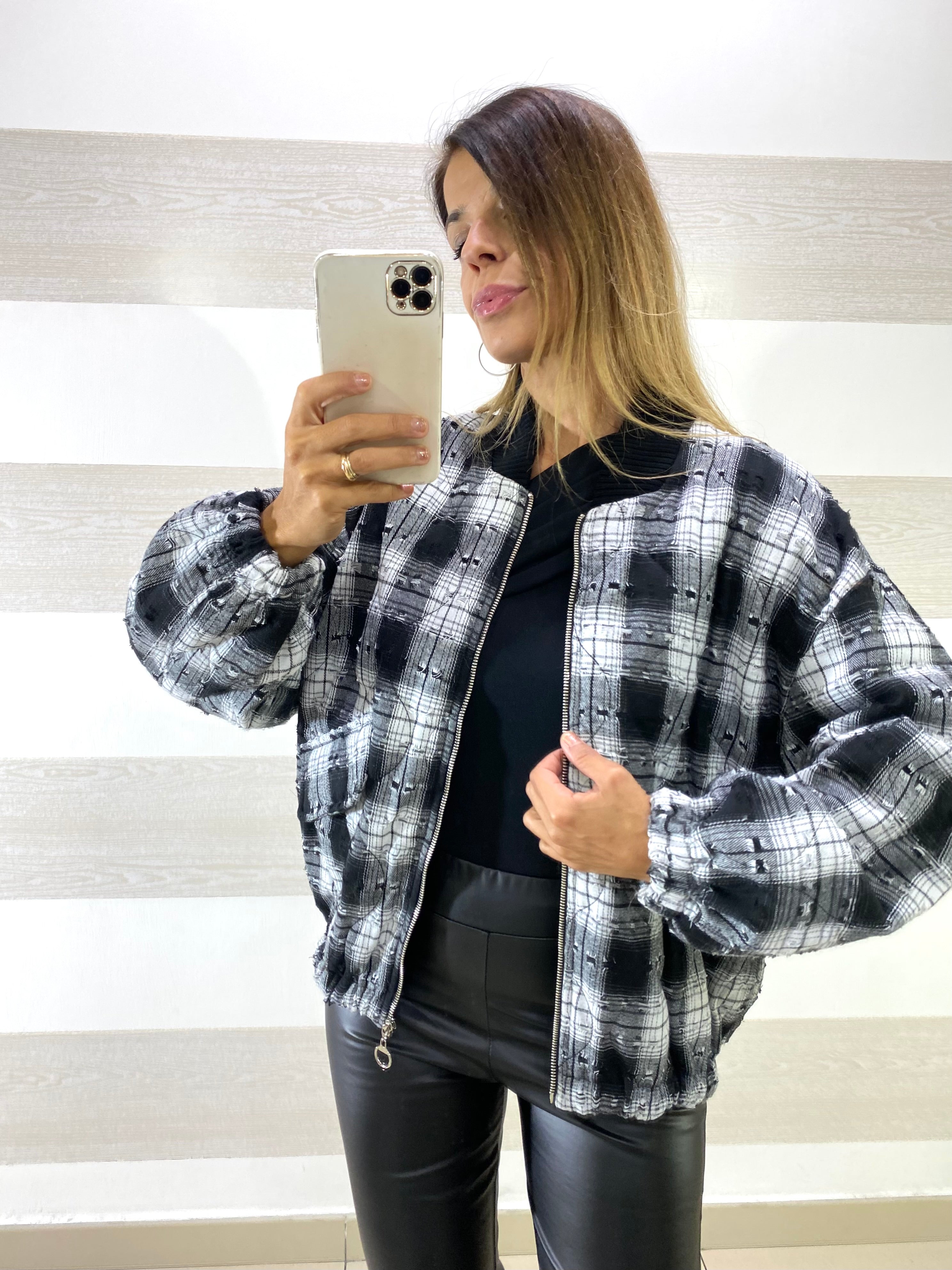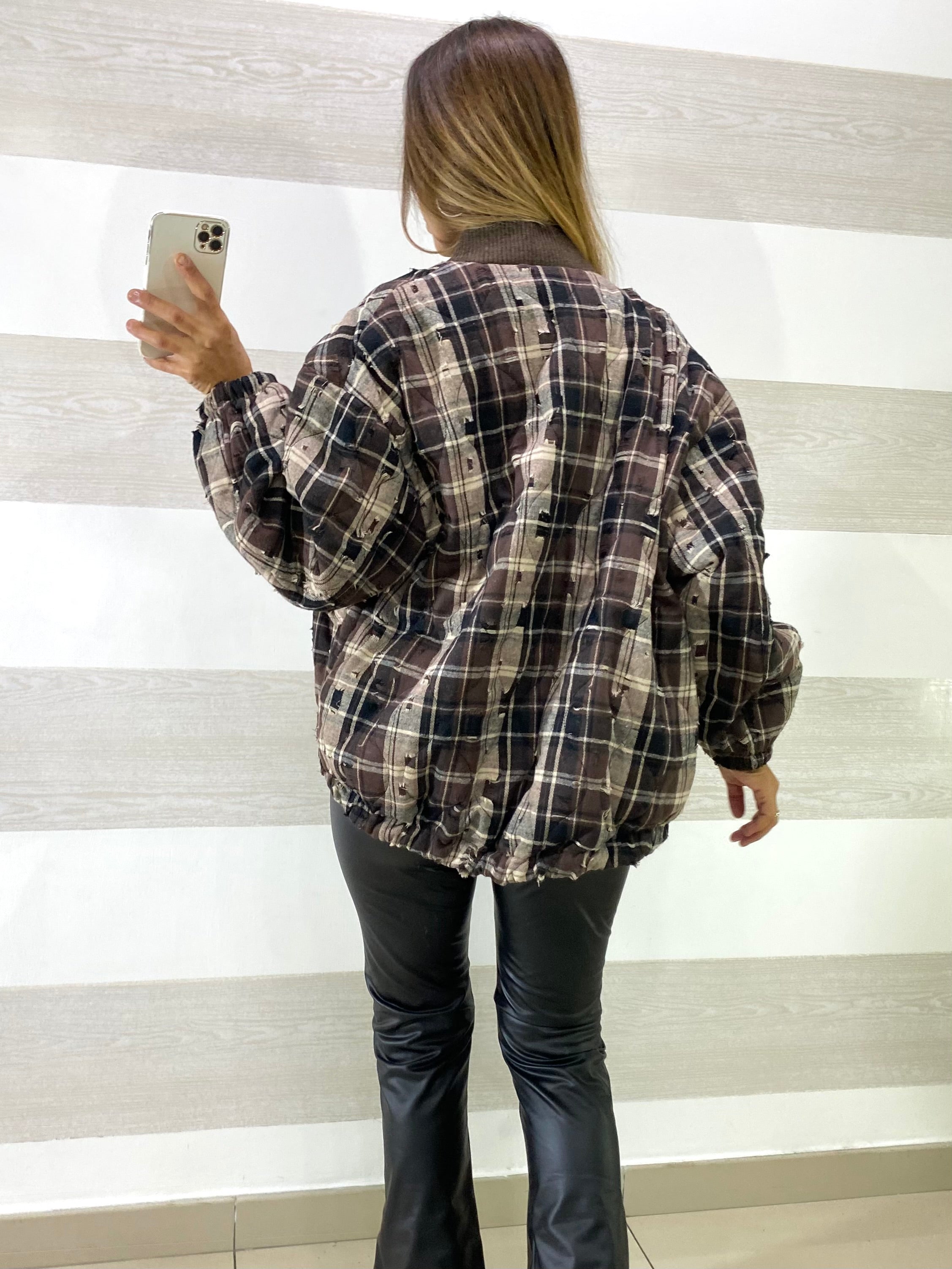 Giubbino Miranda 1 a Quadroni con Micro Strappi Sfrangiati
