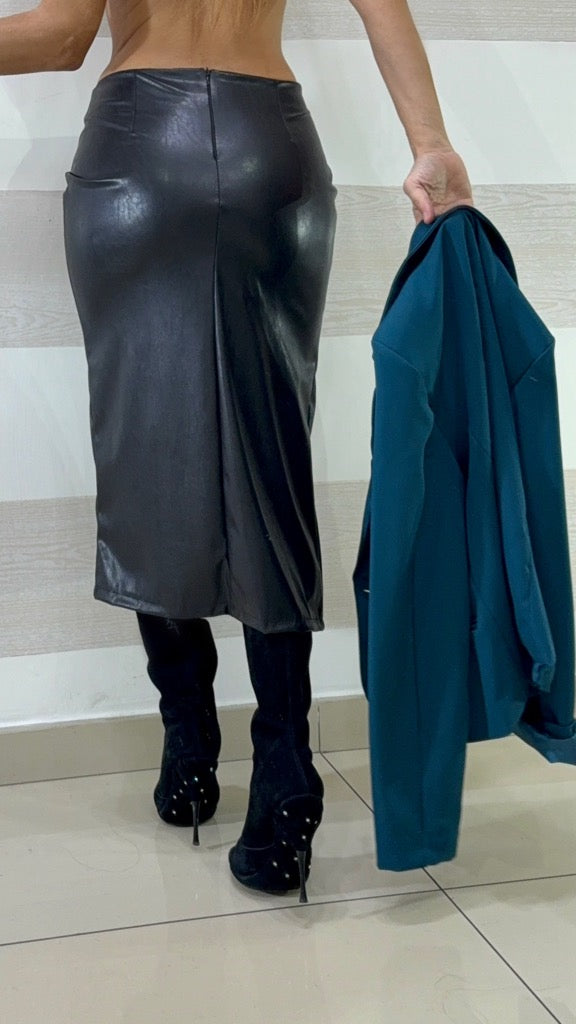 Gonna Kilie eco Pelle con Spacco e Drappeggio