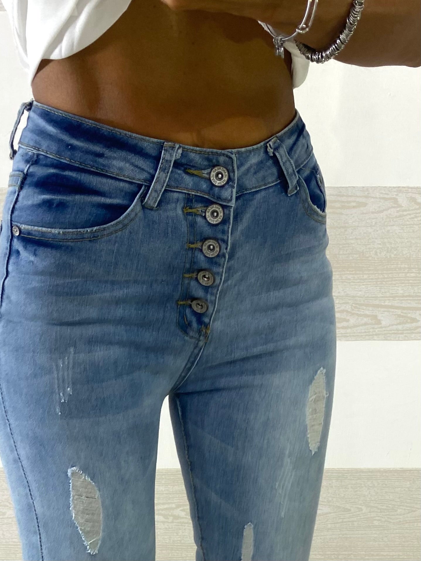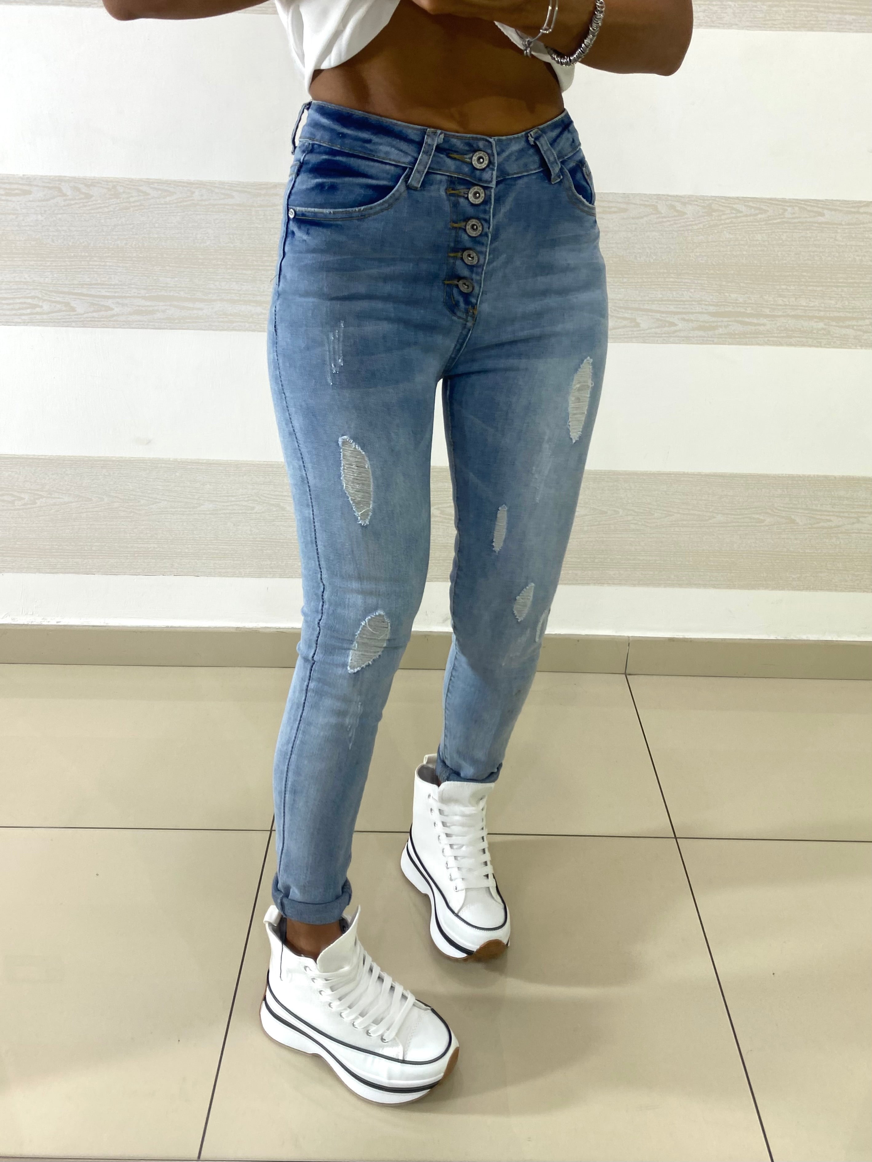 Jeans Amy Skinny Vita Alta con Bottoni Esterni
