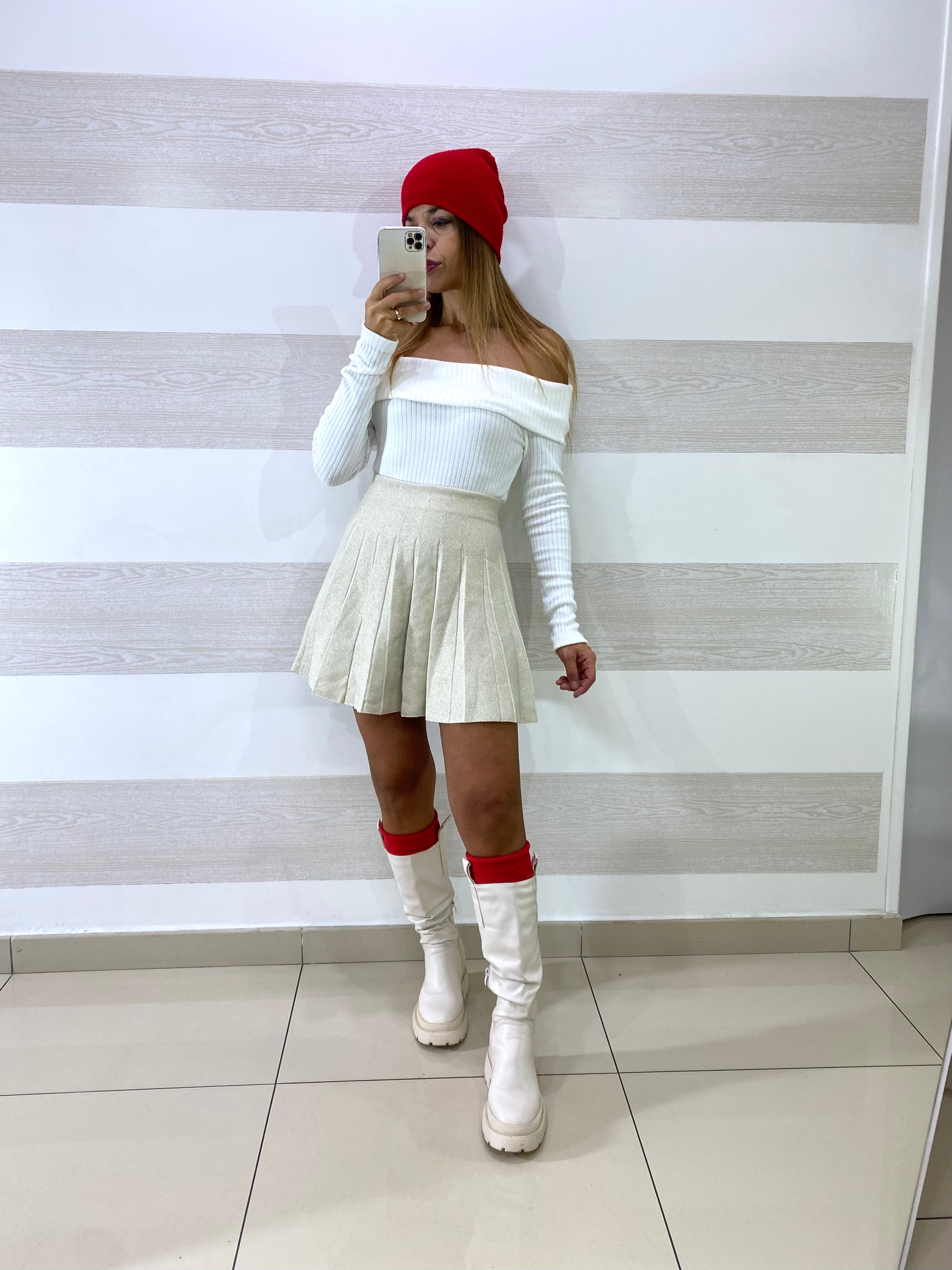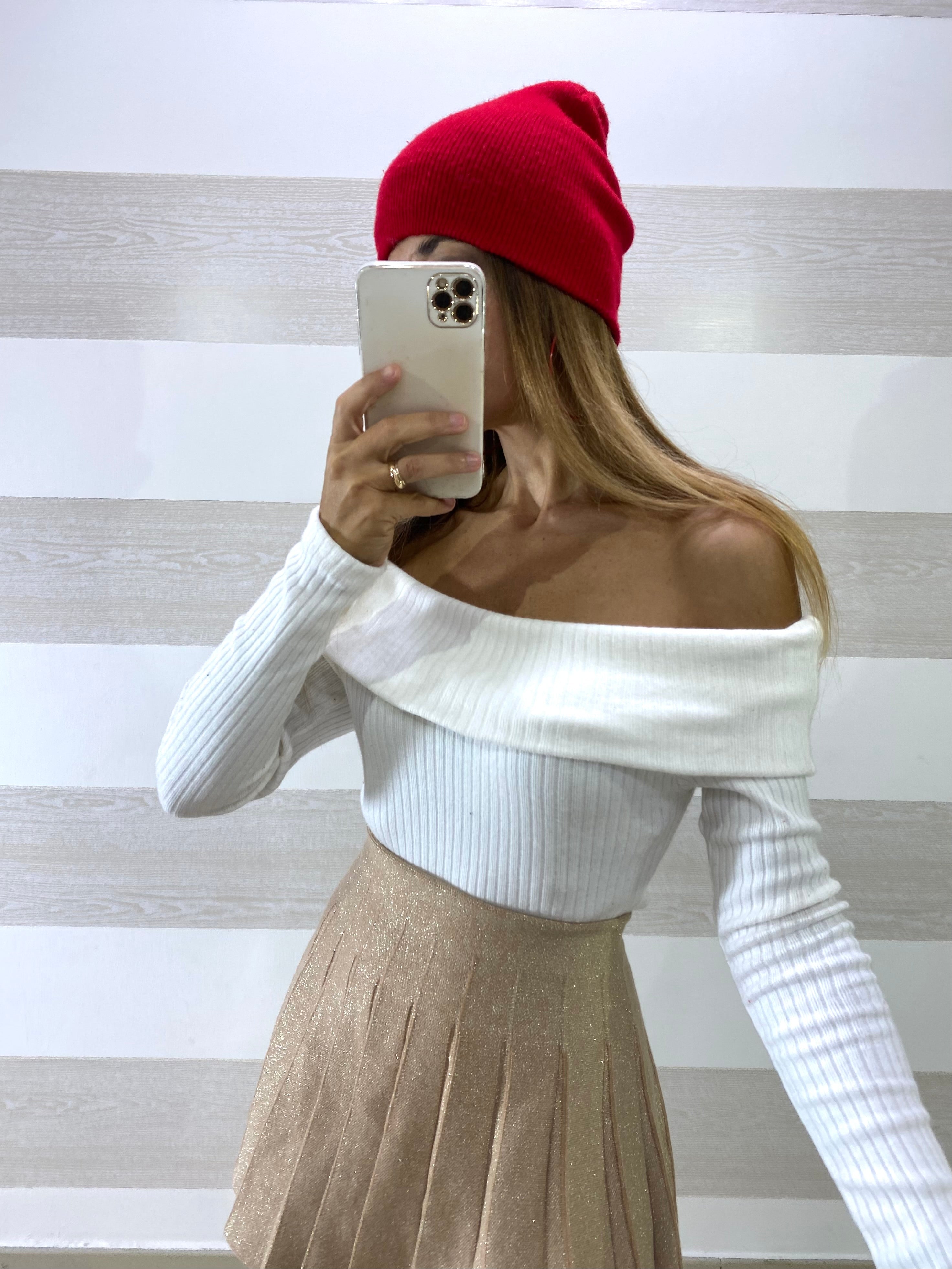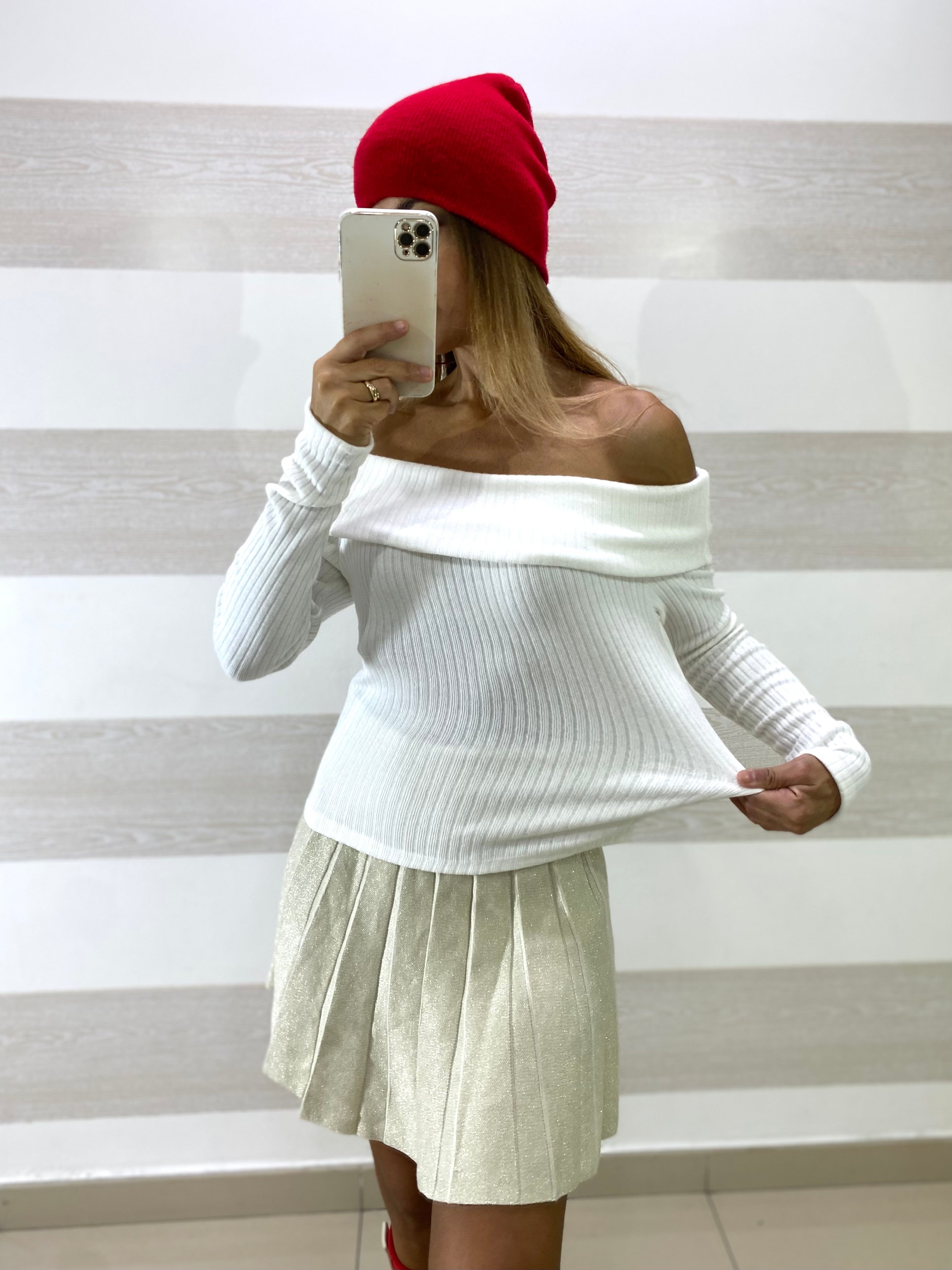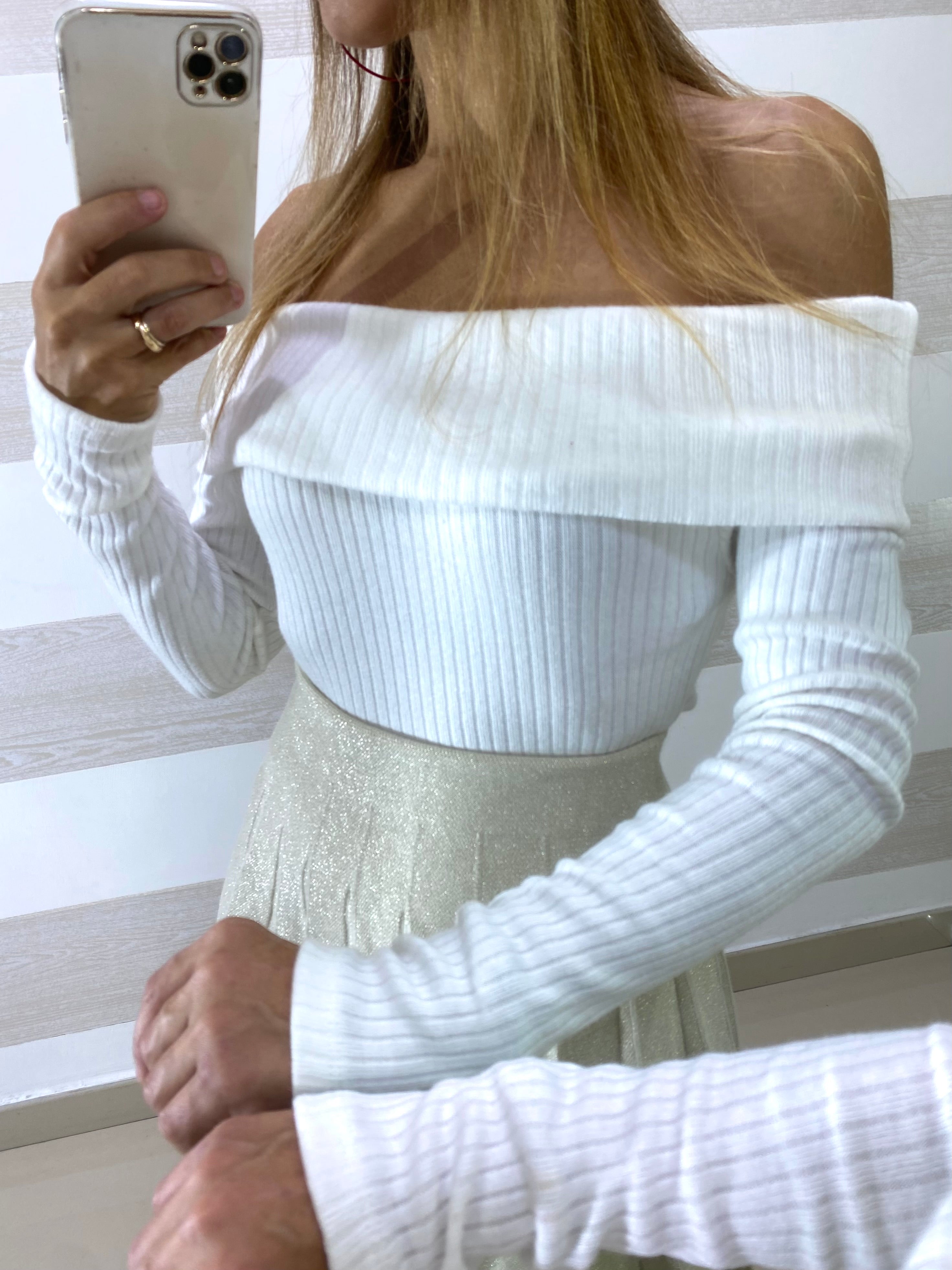 Maglia Breanne a Costine con Scollo a Barca