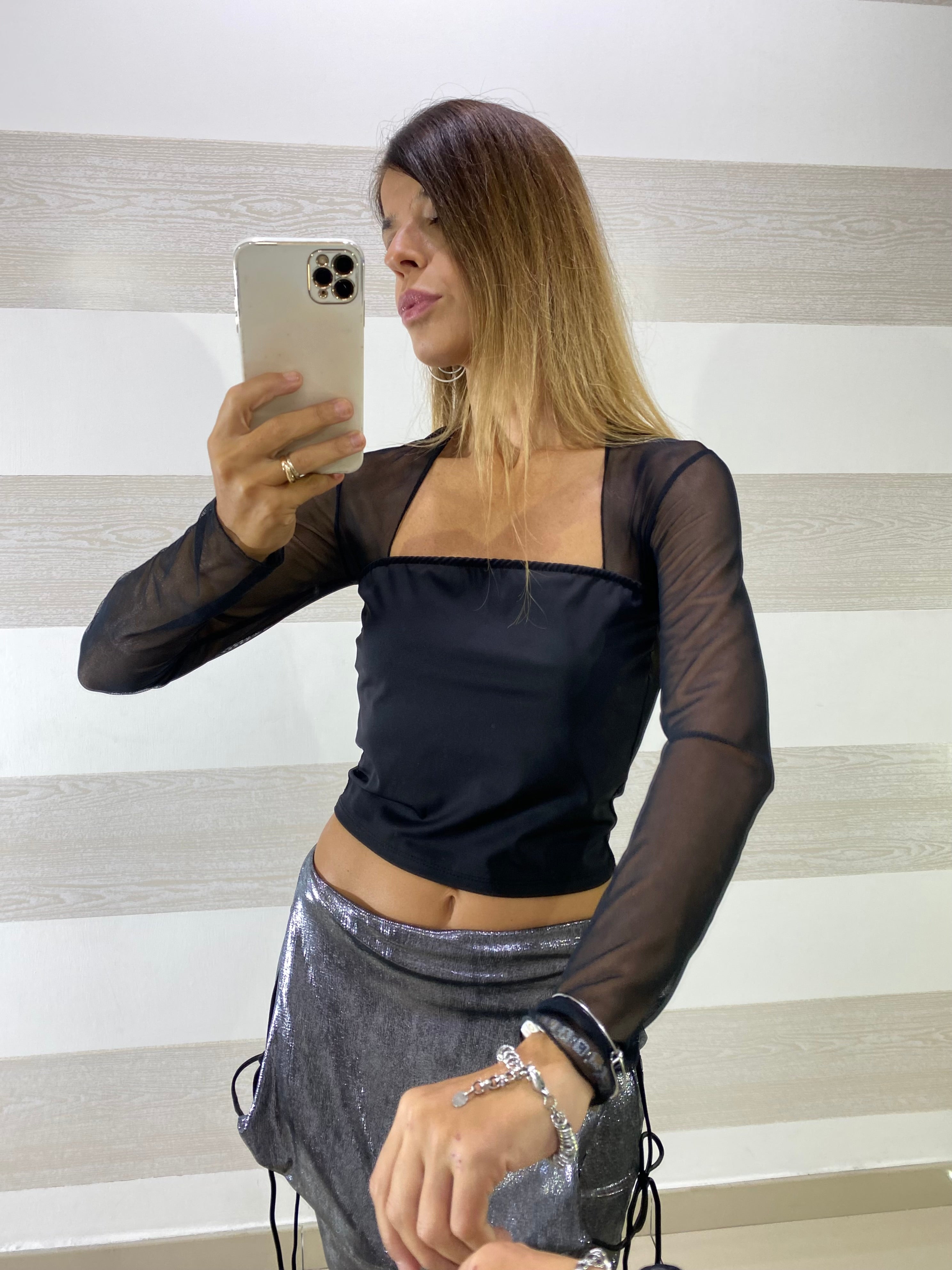 • Particolare la trasparenza in tulle sia alle maniche che dietro