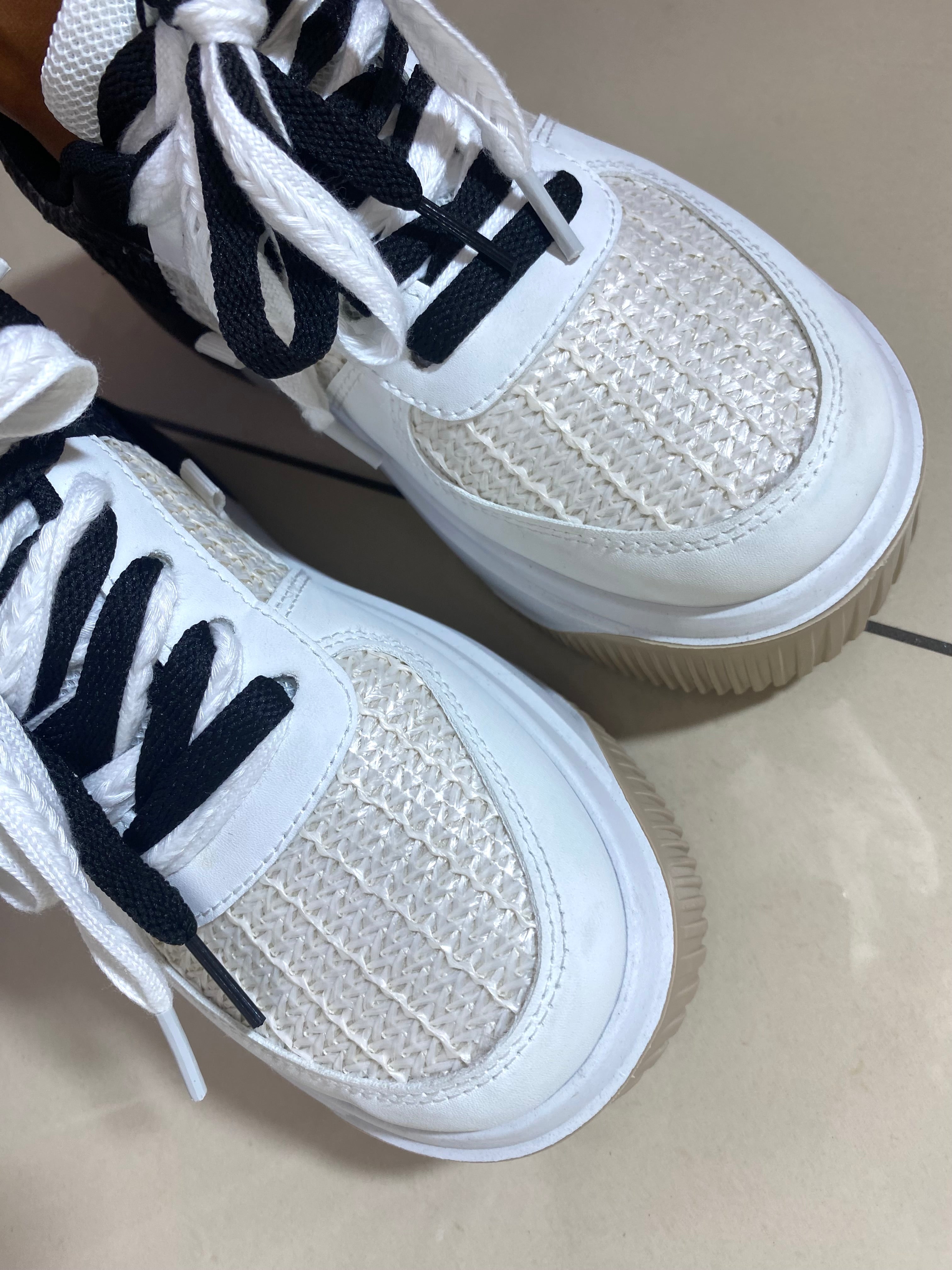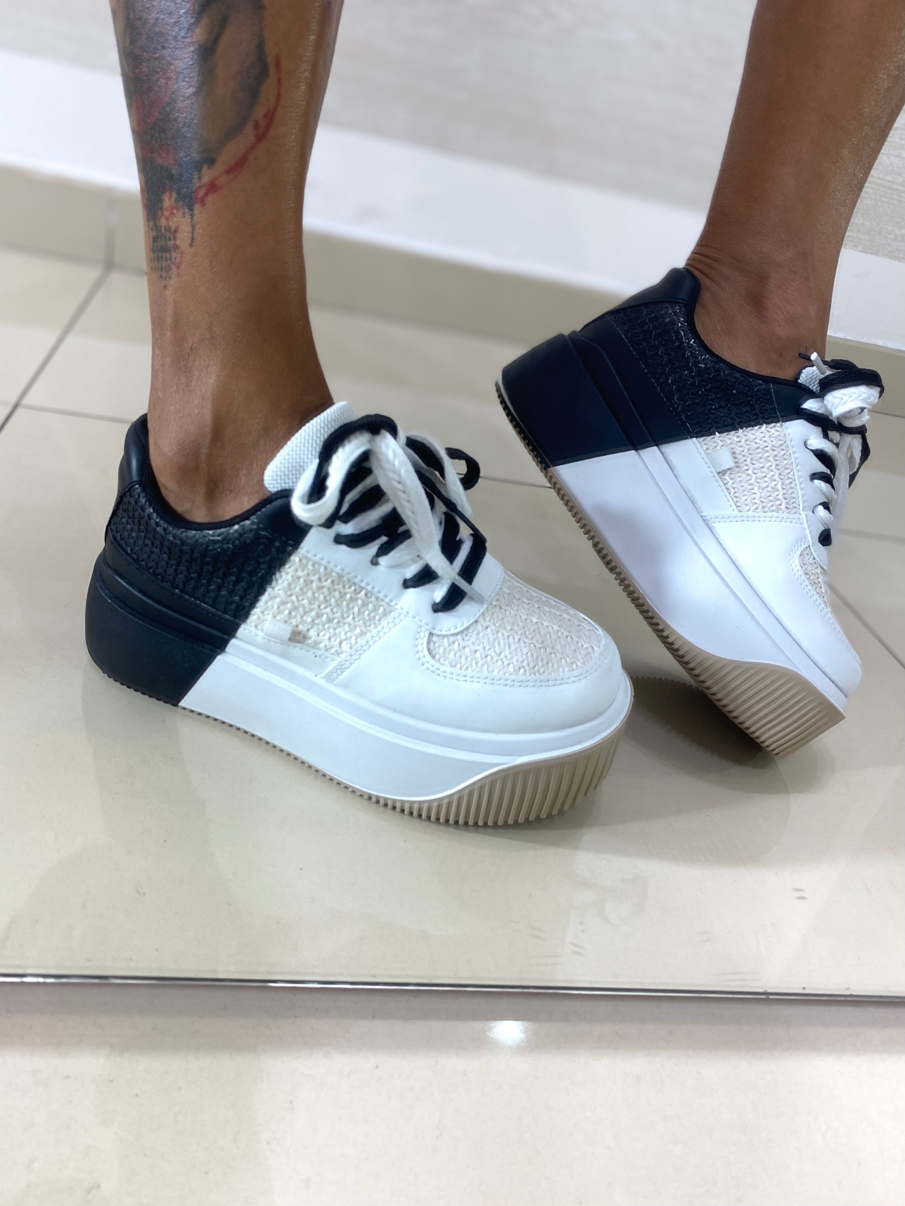 Sneakers Annette Bianche Nere Beige Suola Alta
