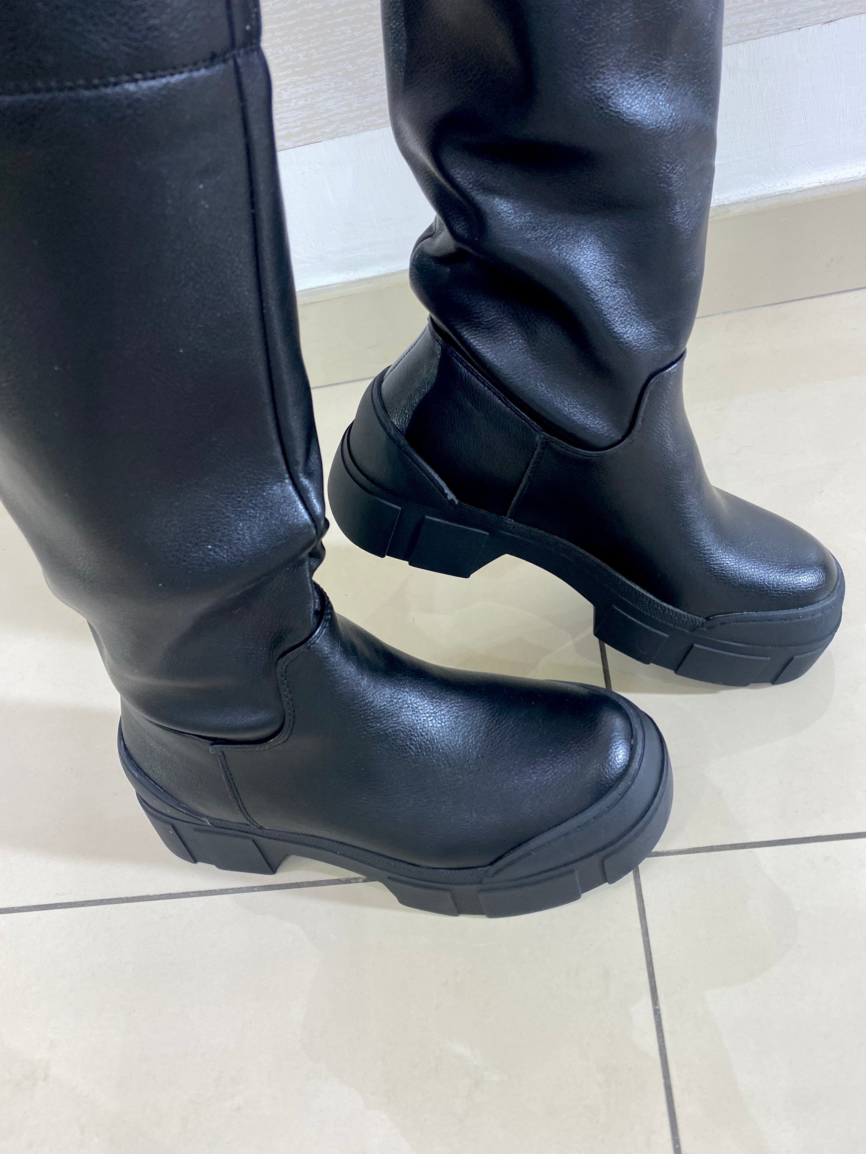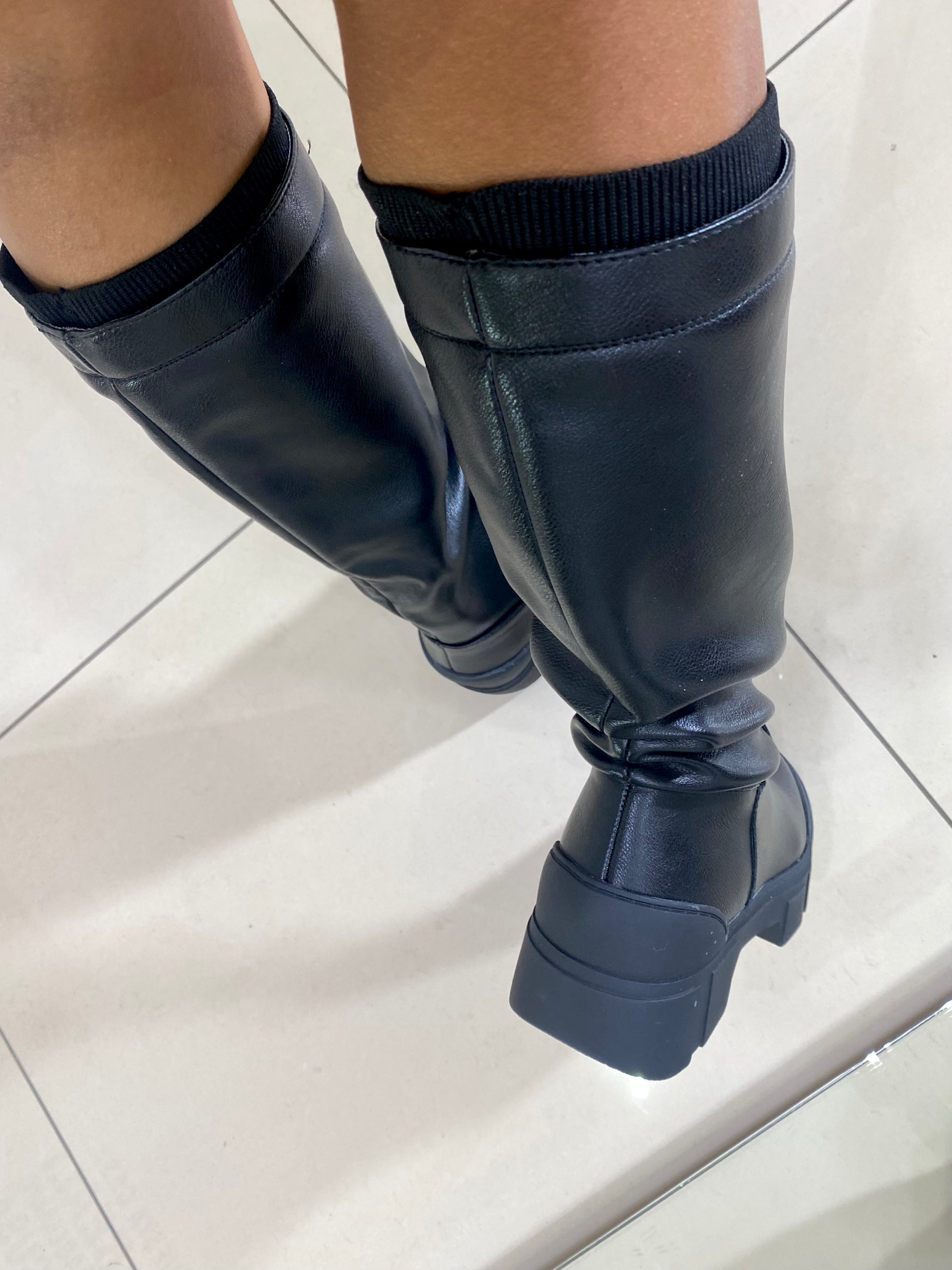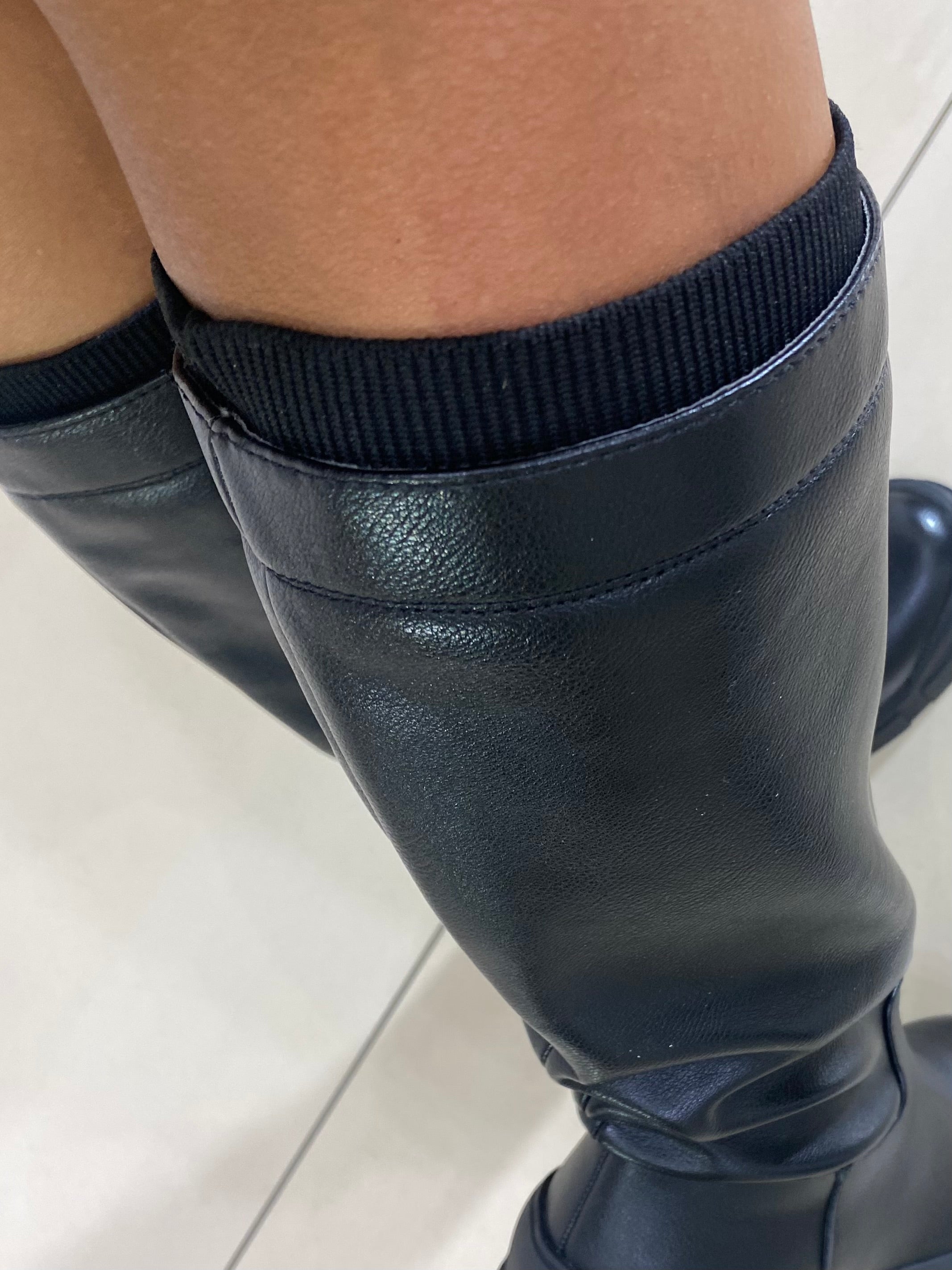 • Gambale in ecopelle e elastico in cima che sembra un calzino