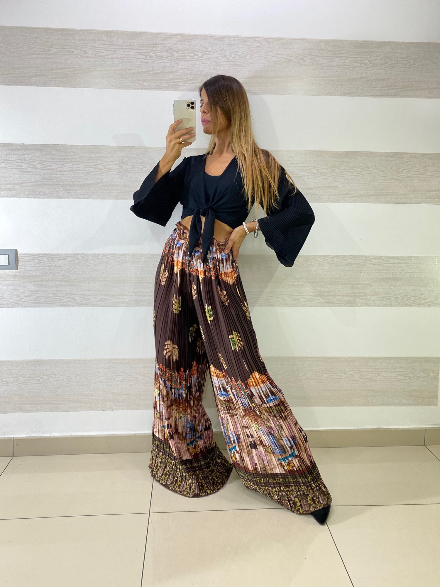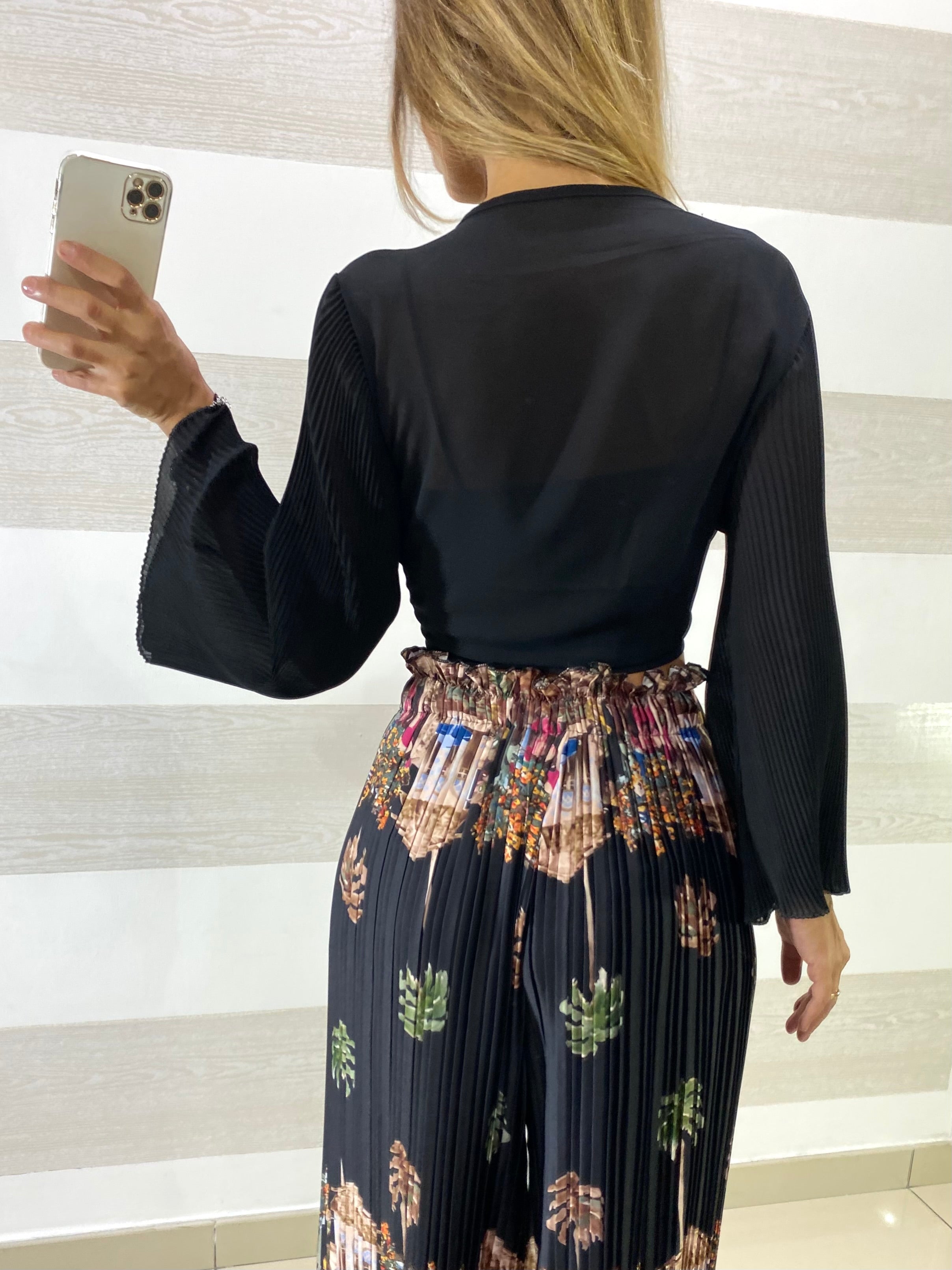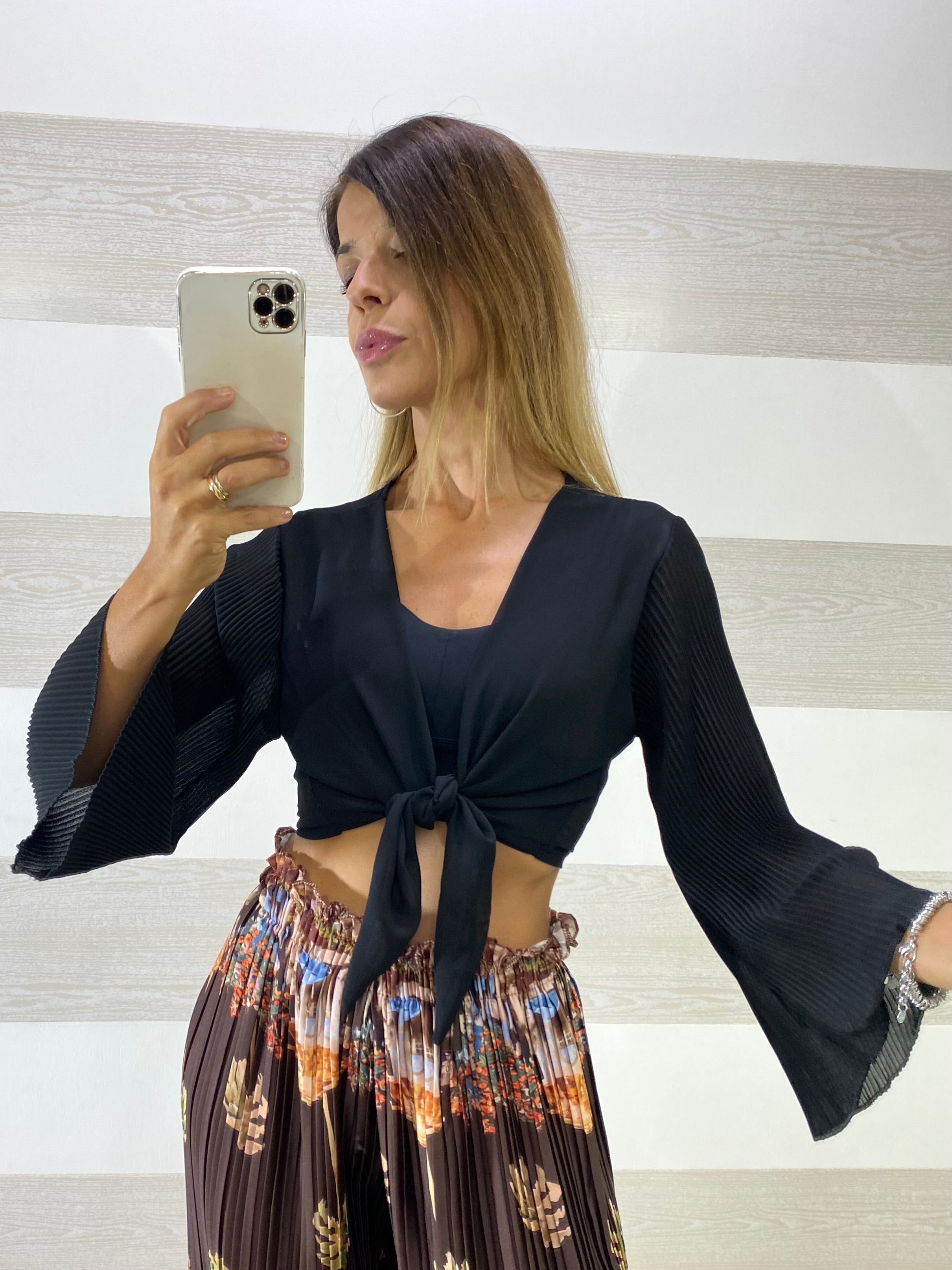 • Maniche lunghe svasate in plissè
