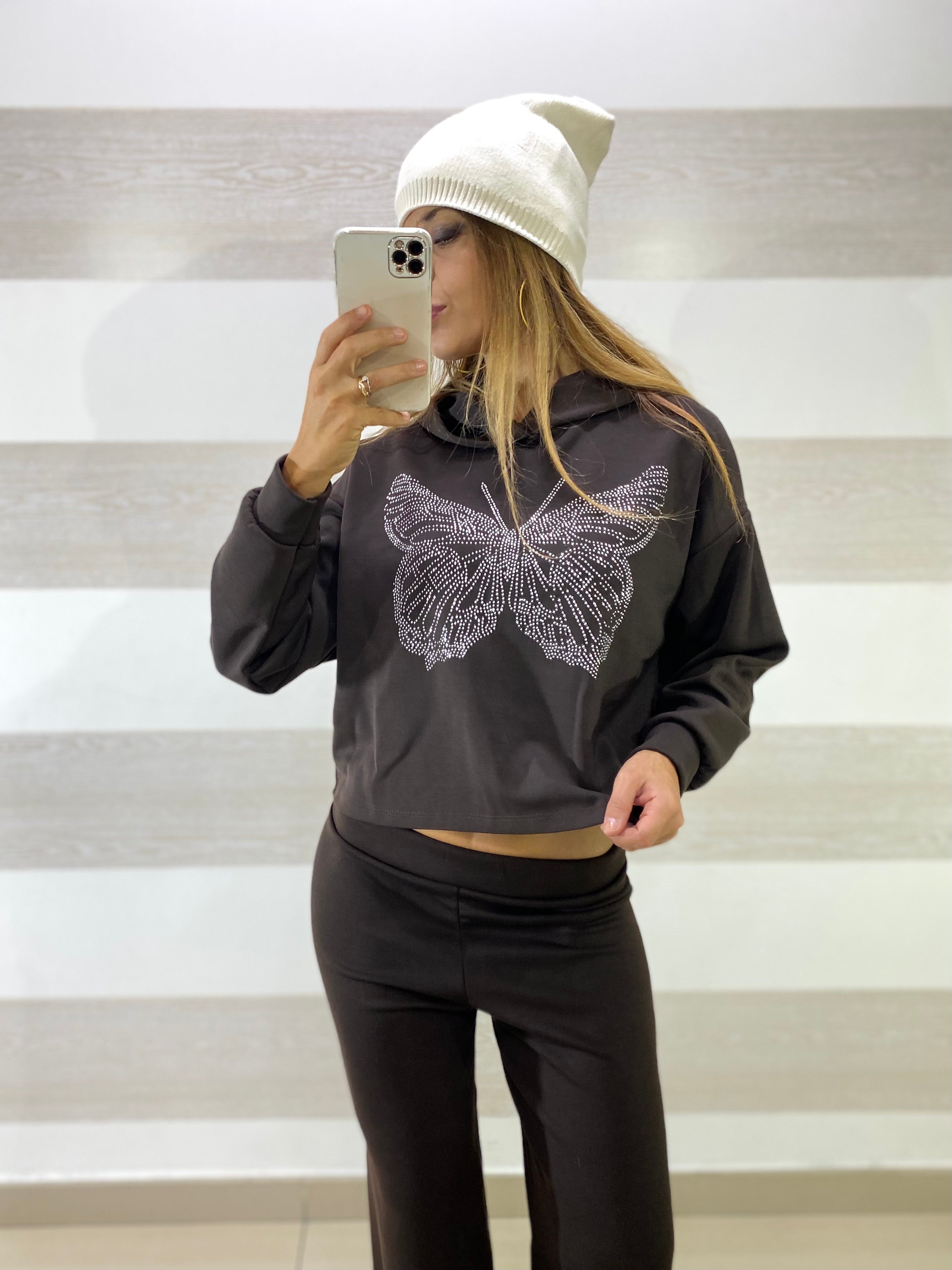 • Particolare per il disegno farfalla composto dalle micro borchiette luminose