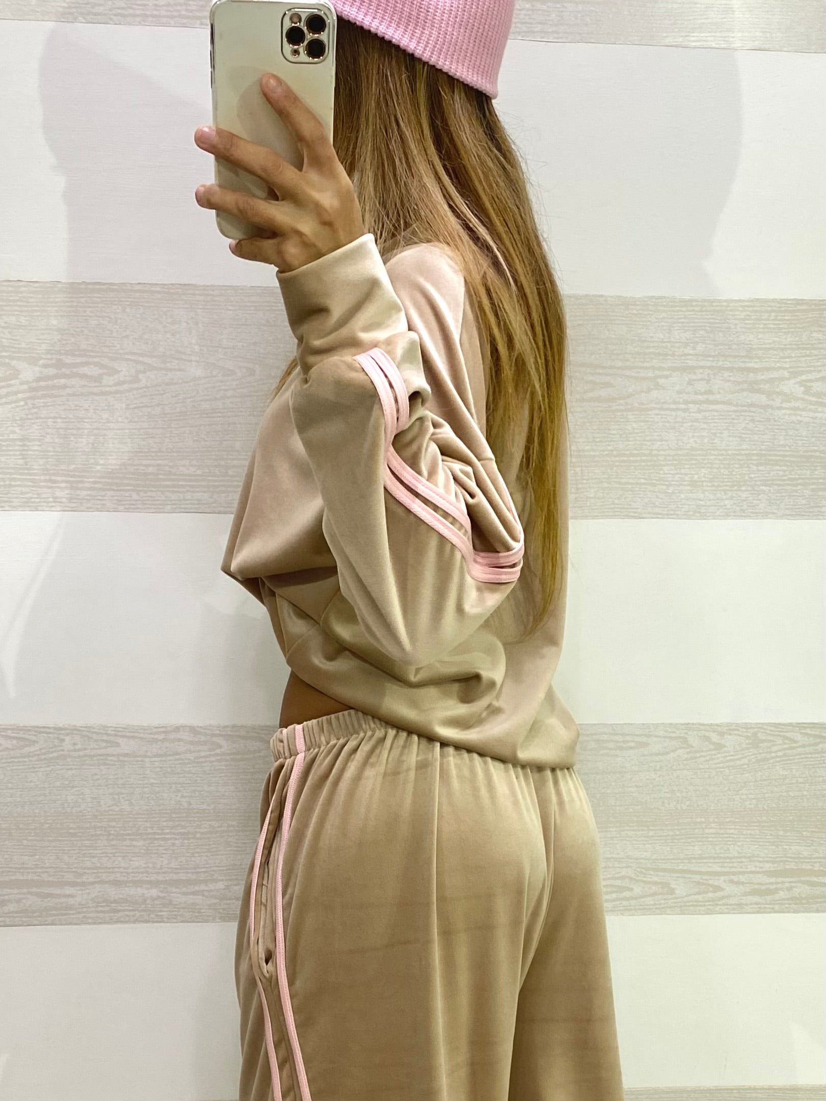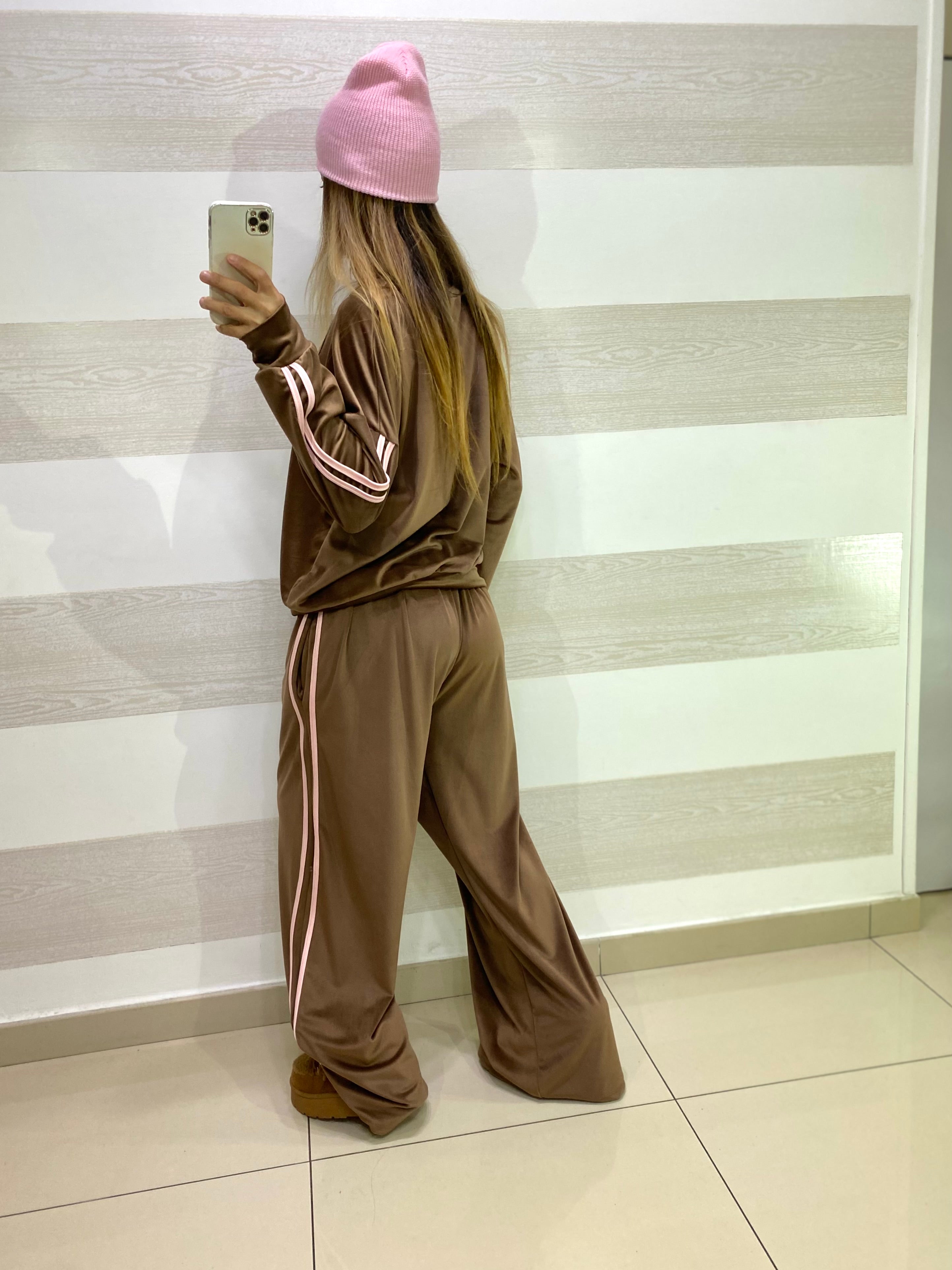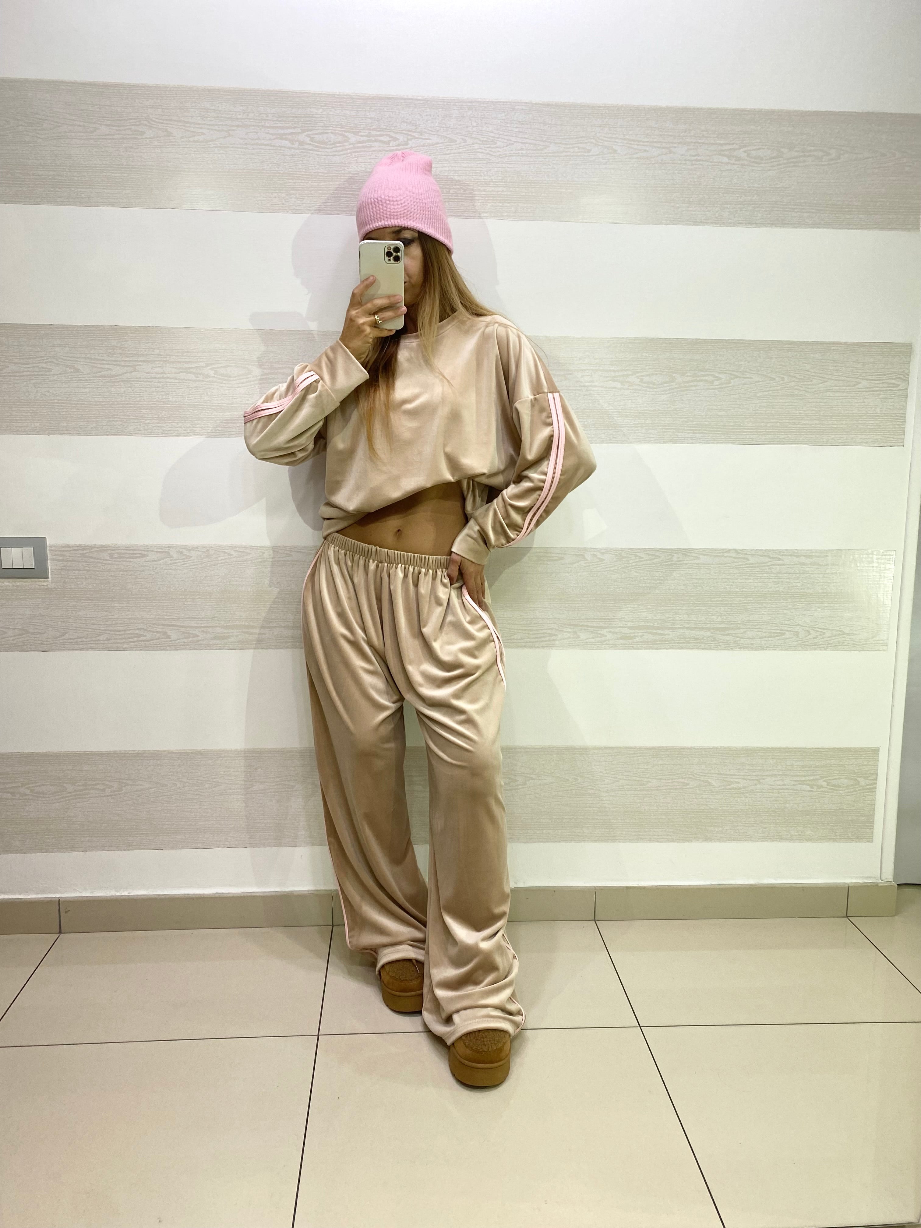 Tuta Callie Vellutino con Bande Laterali Rosa