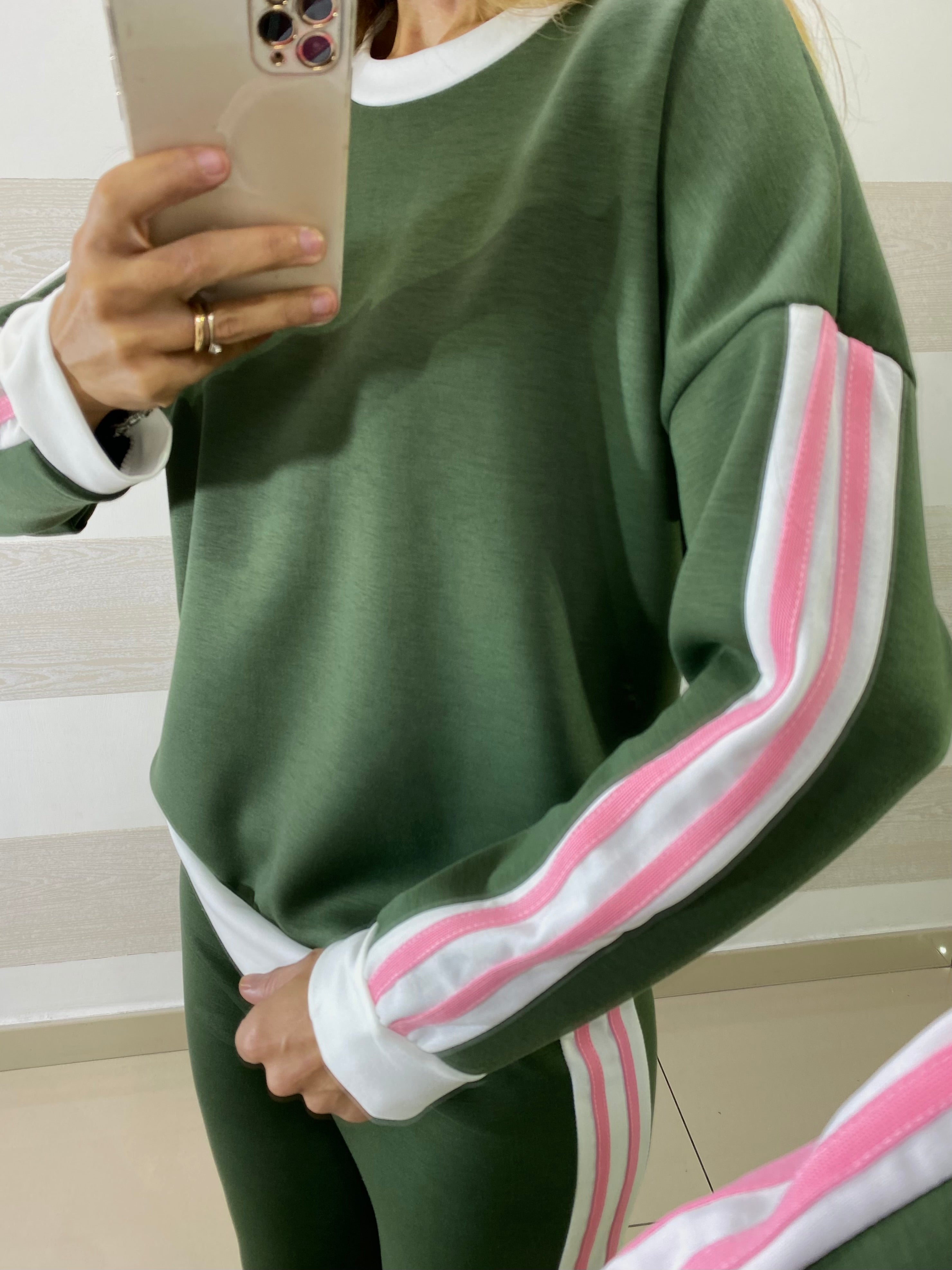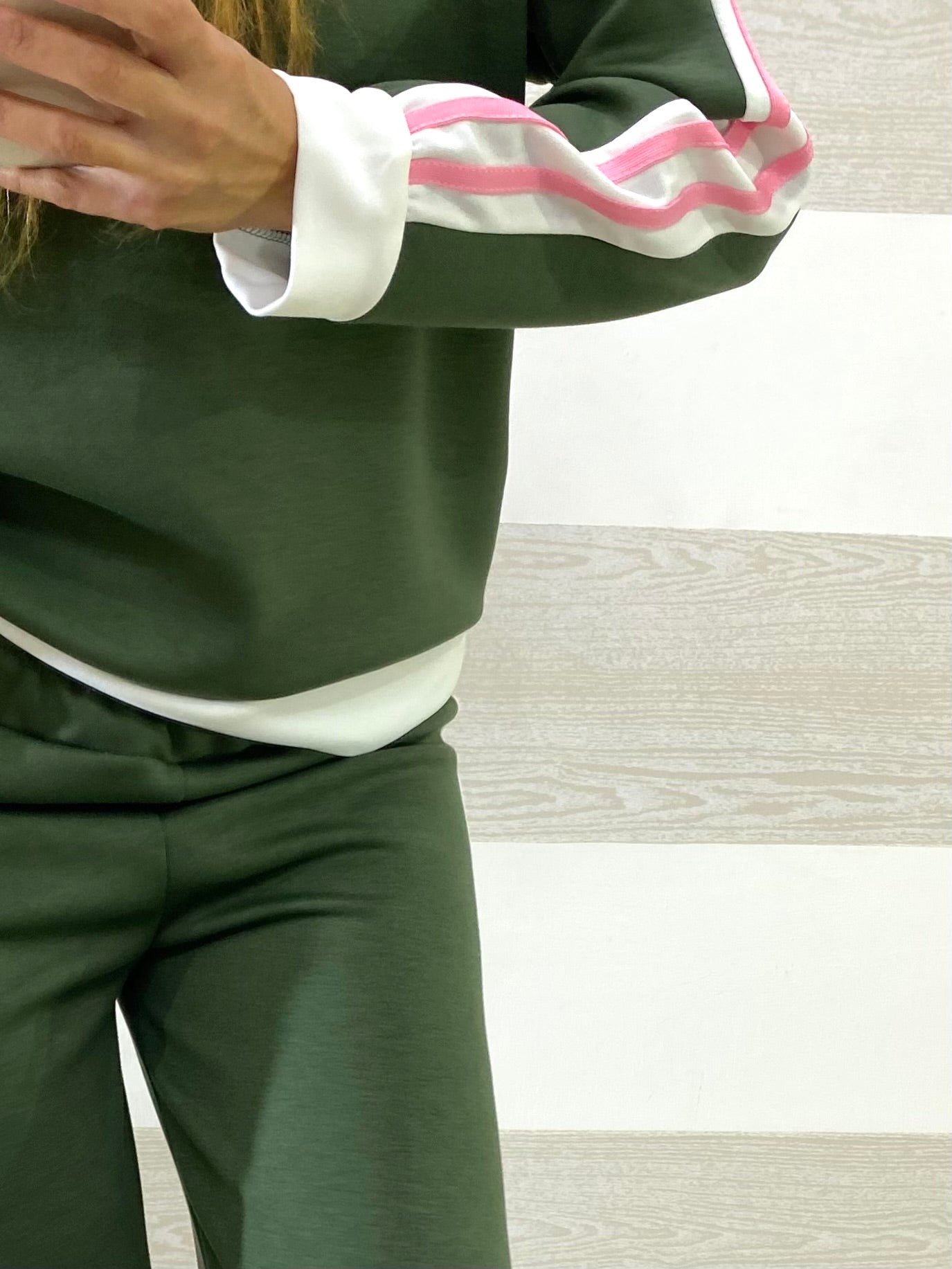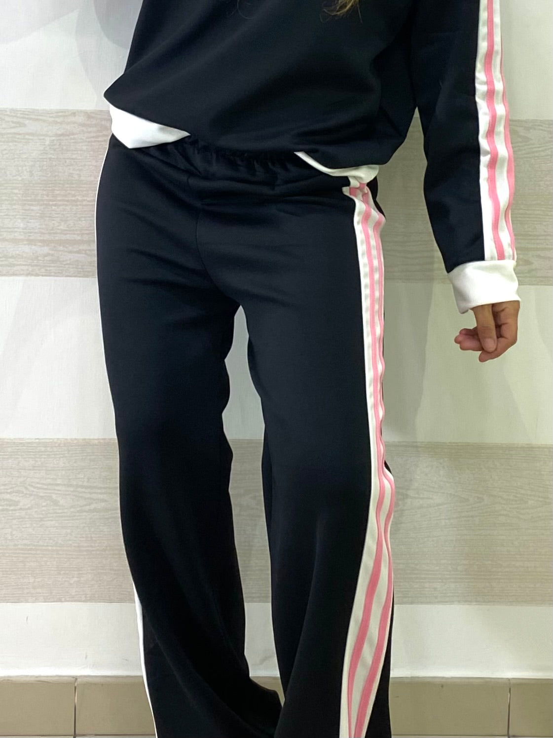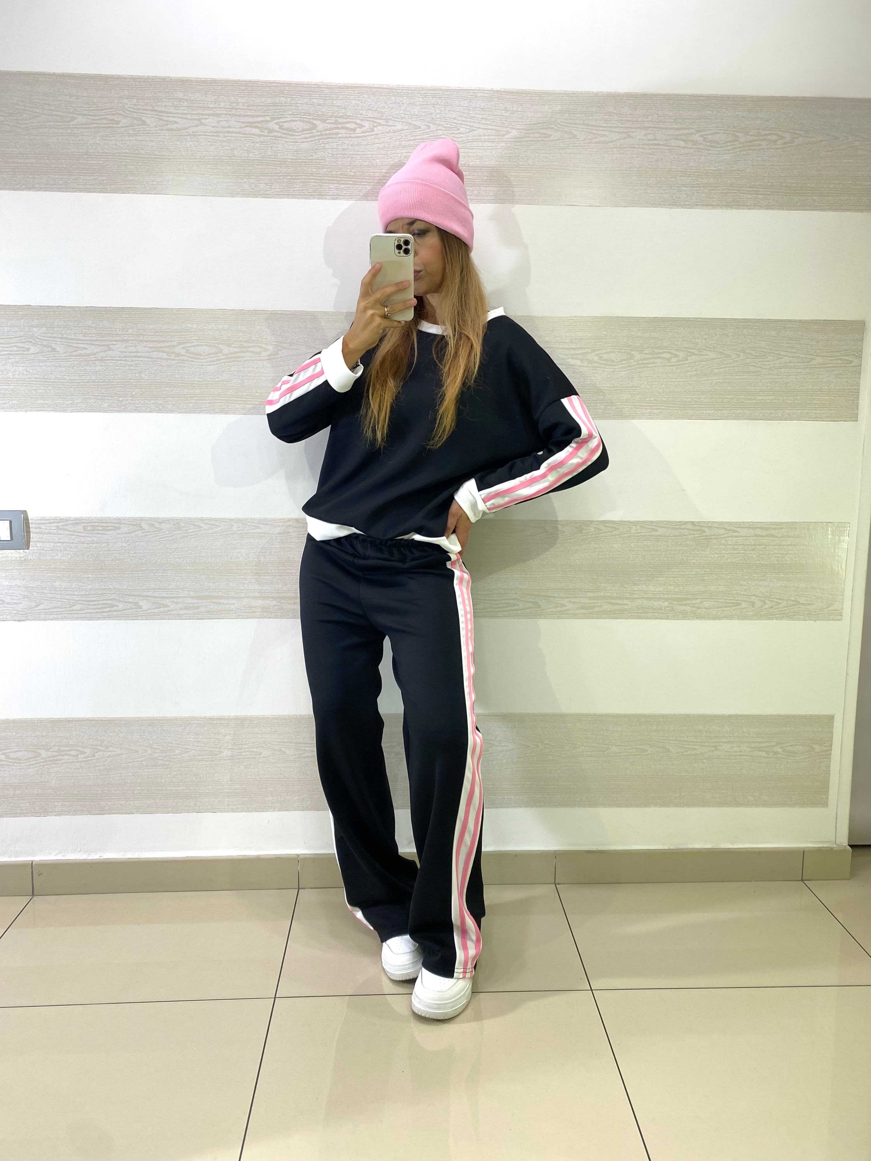 Tuta Caryl con Profili Bianchi e Bande Laterali Rosa